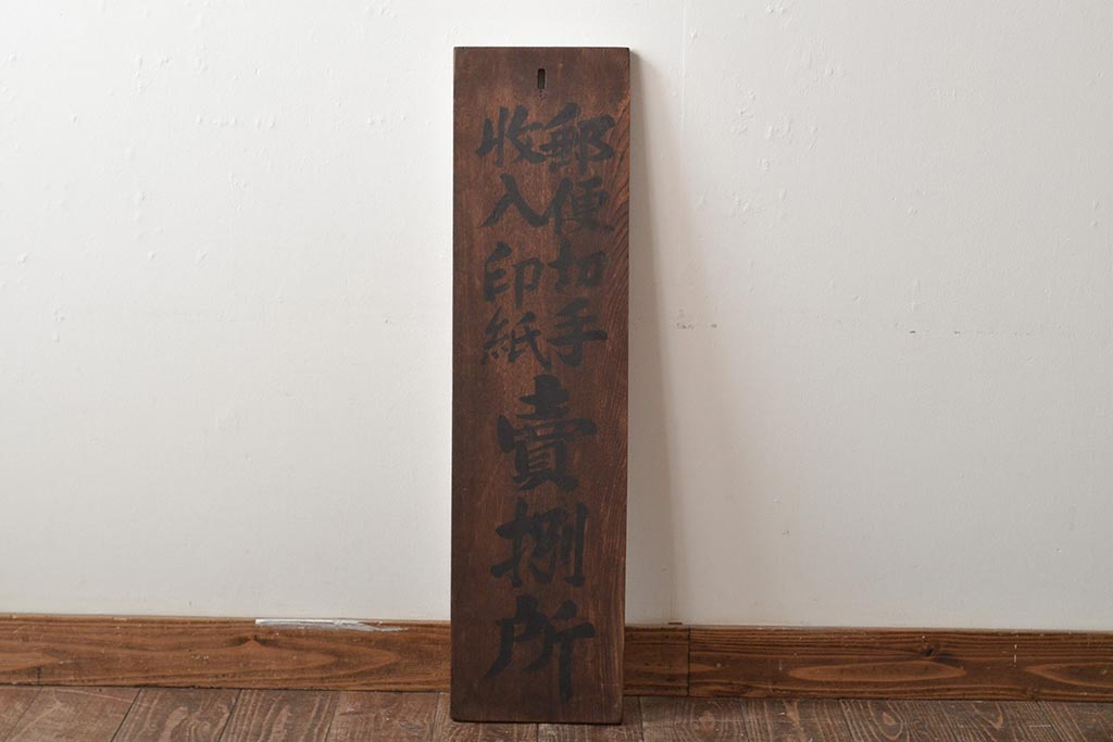 戦前 郵便切手 収入印紙 売捌所 ケヤキ製 木製看板(R-045105)