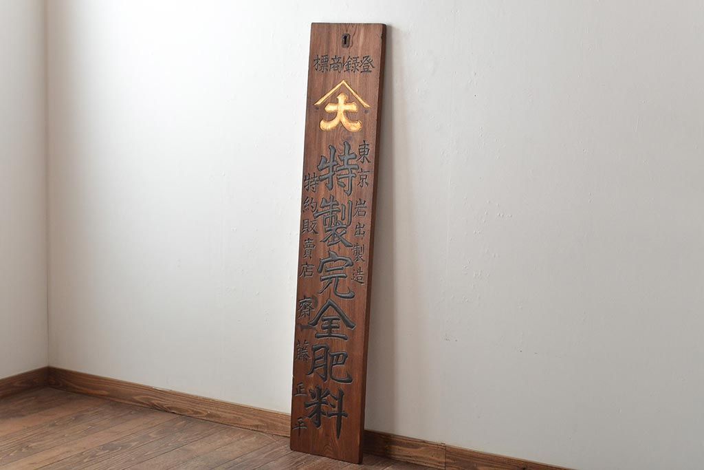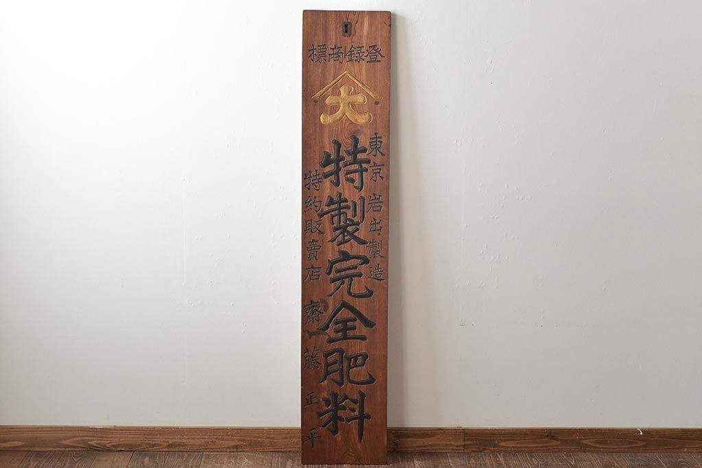 雑貨> 看板 > 戦前 特製完全肥料 木製看板(東京岩出製造、ケヤキ製)(R-045148)