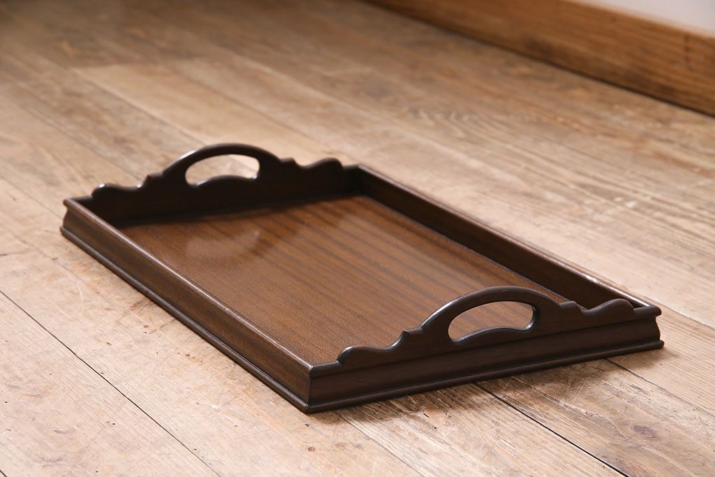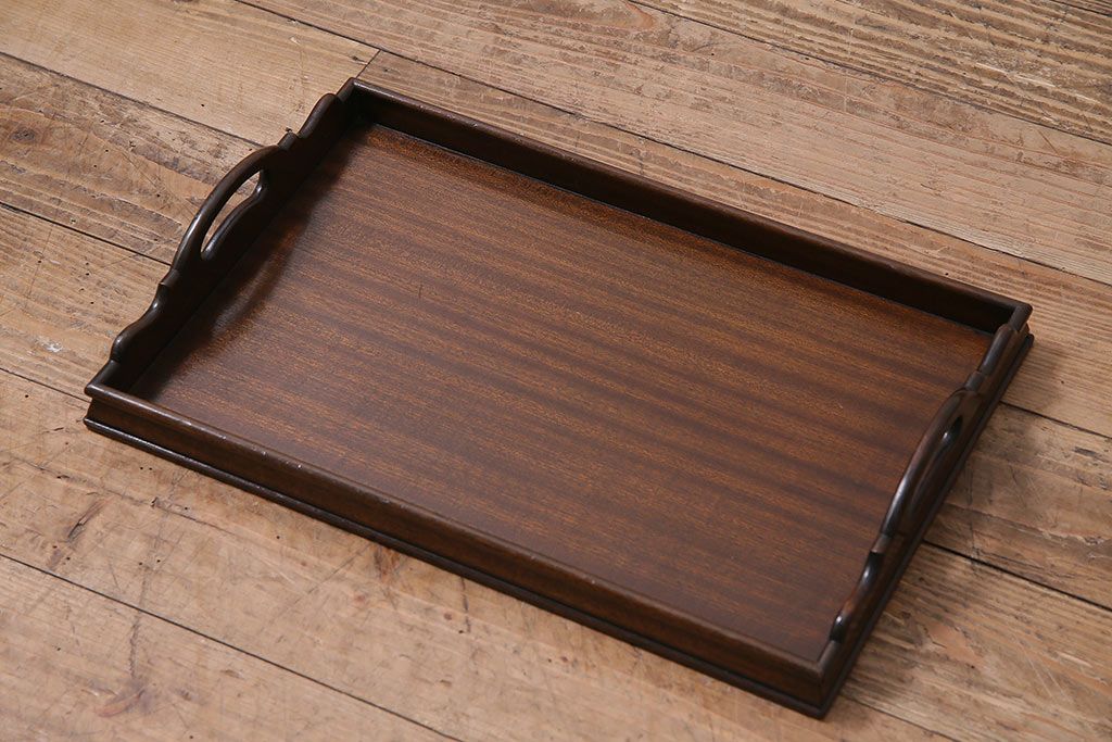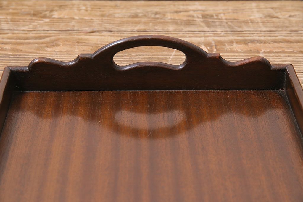 アンティーク雑貨 イギリスアンティーク マホガニー材 気品漂う木製トレー(小)(サービングトレイ、角盆、お盆)(R-045184)
