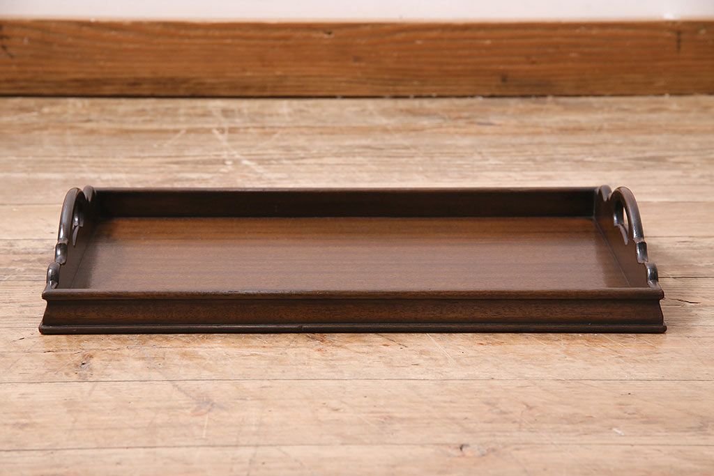 アンティーク雑貨 イギリスアンティーク マホガニー材 気品漂う木製トレー(小)(サービングトレイ、角盆、お盆)(R-045184)です。