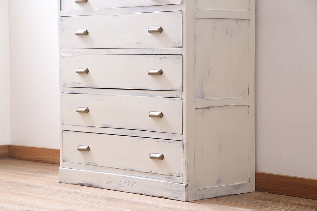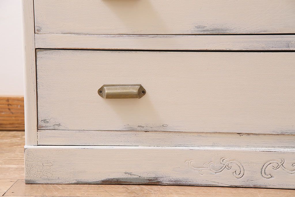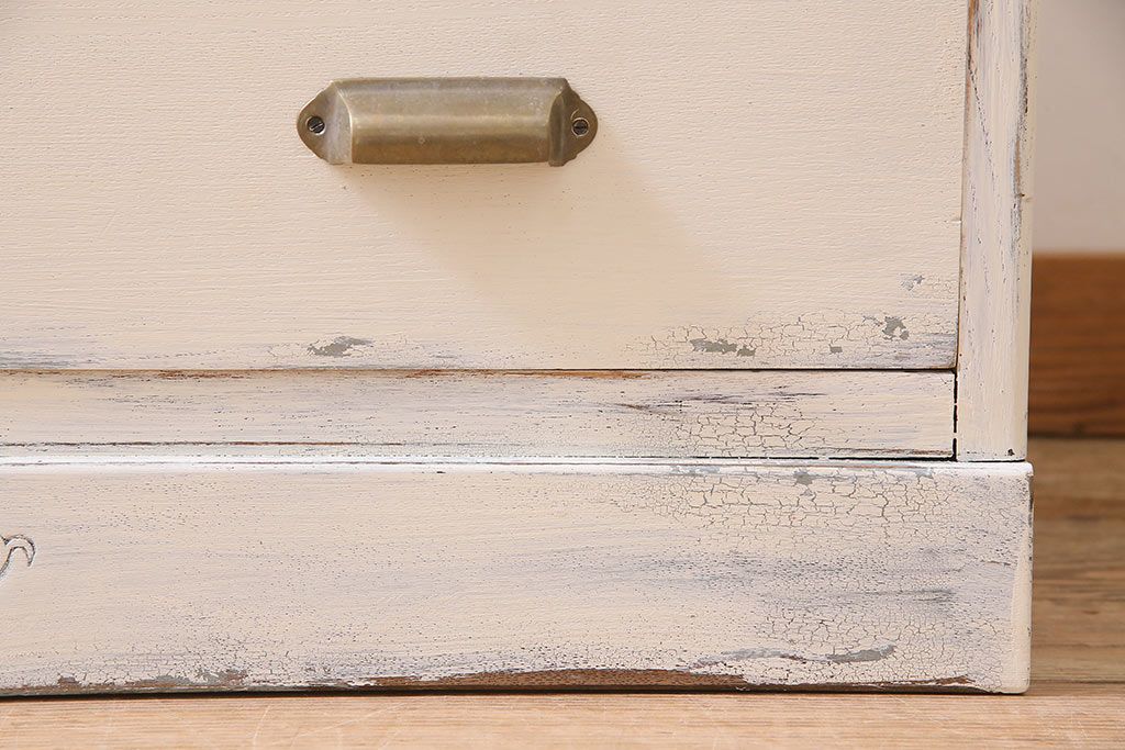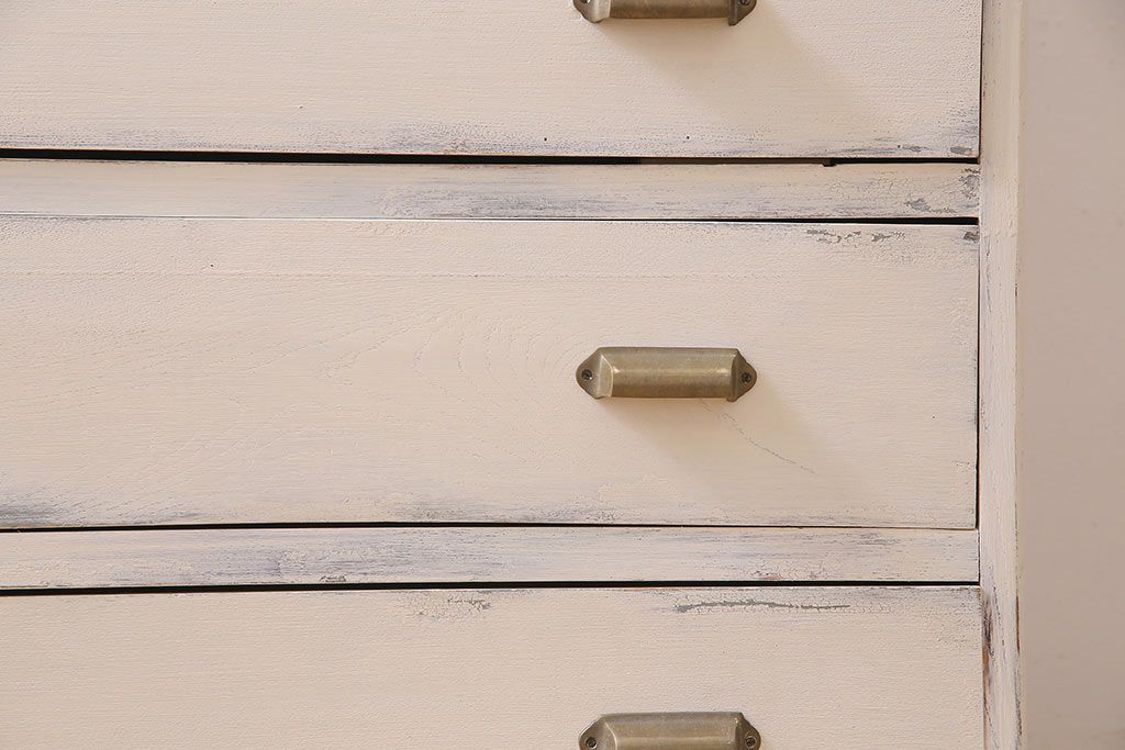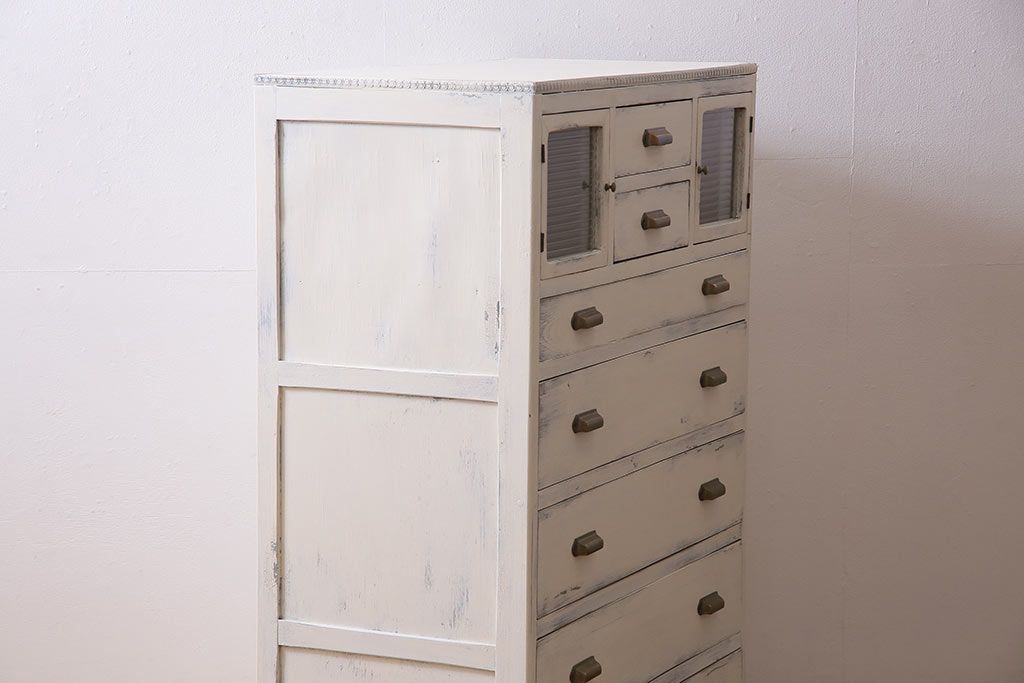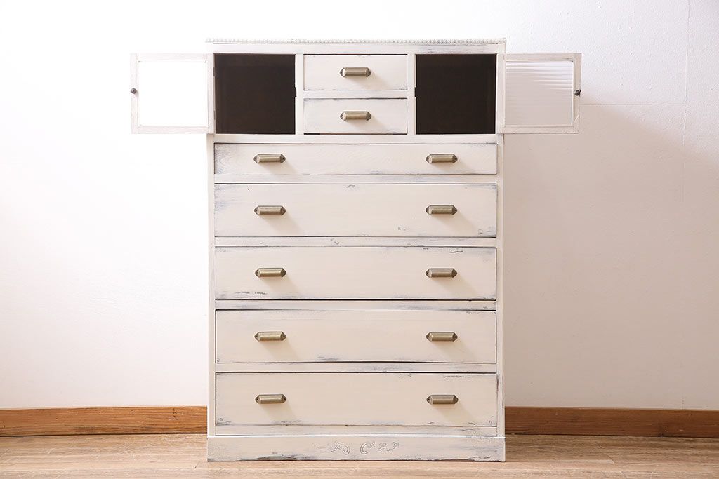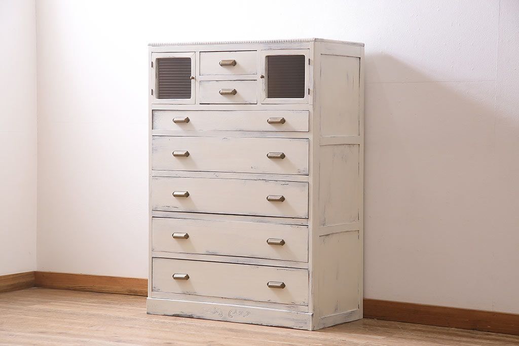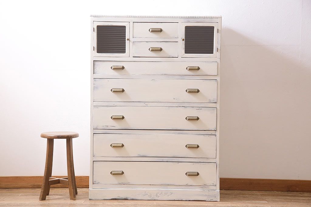 アンティーク家具 昭和中期 モールガラス入り シャビーなペイントがおしゃれなチェスト(引き出し)(R-045278)です。