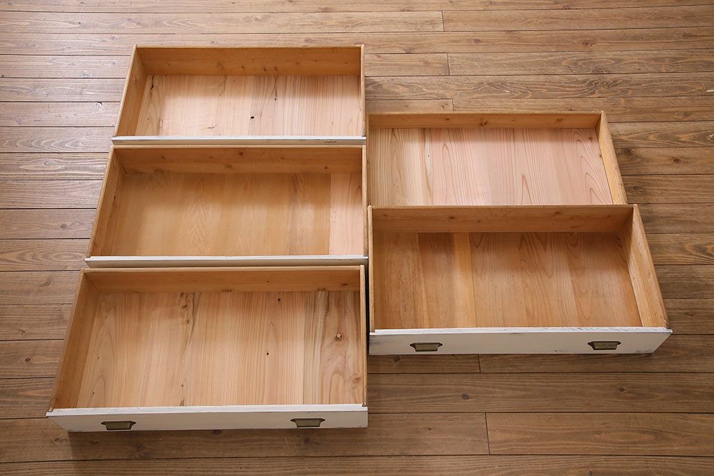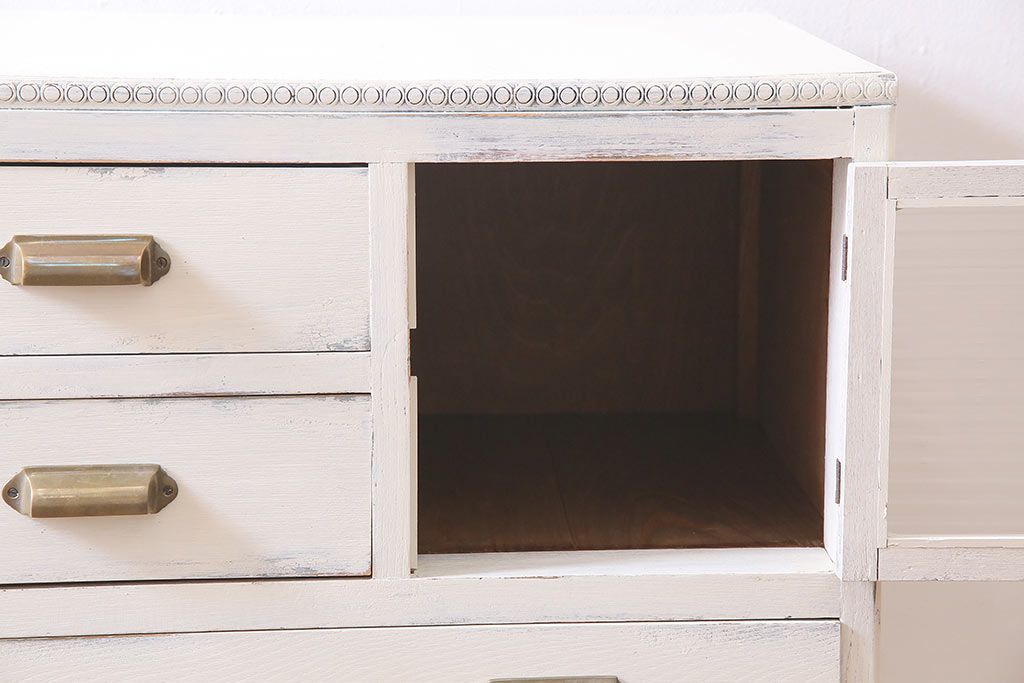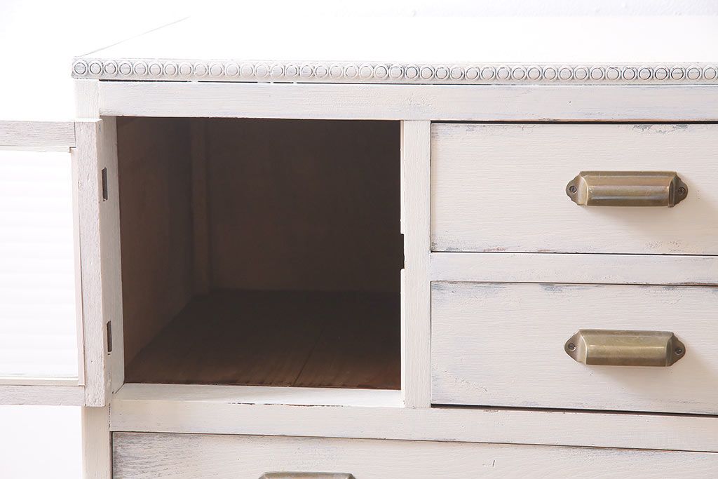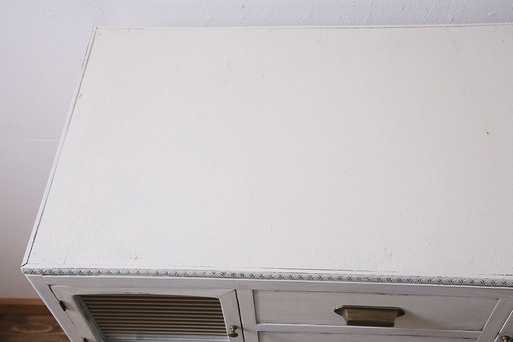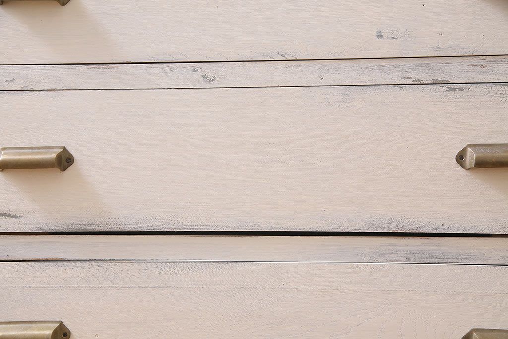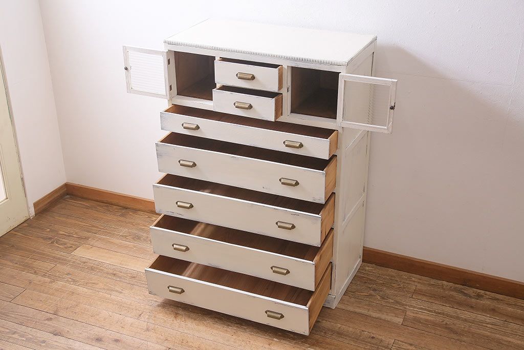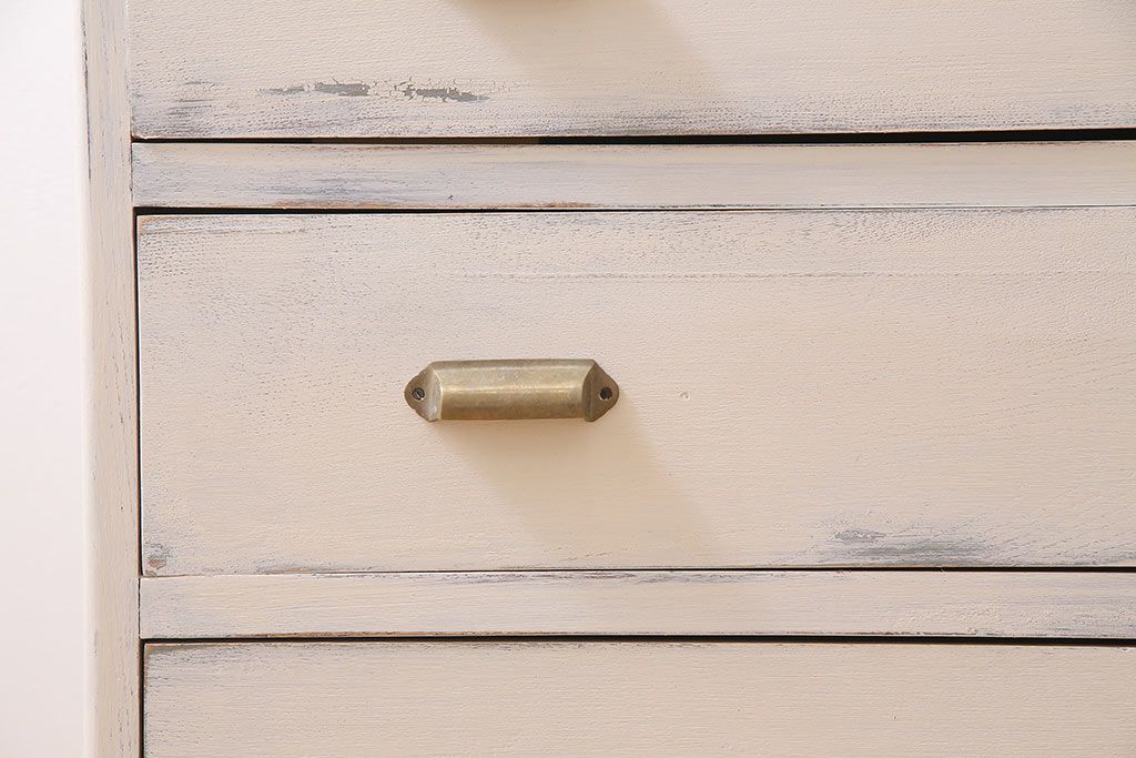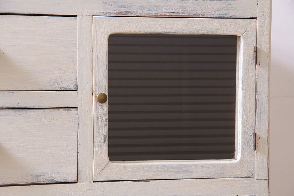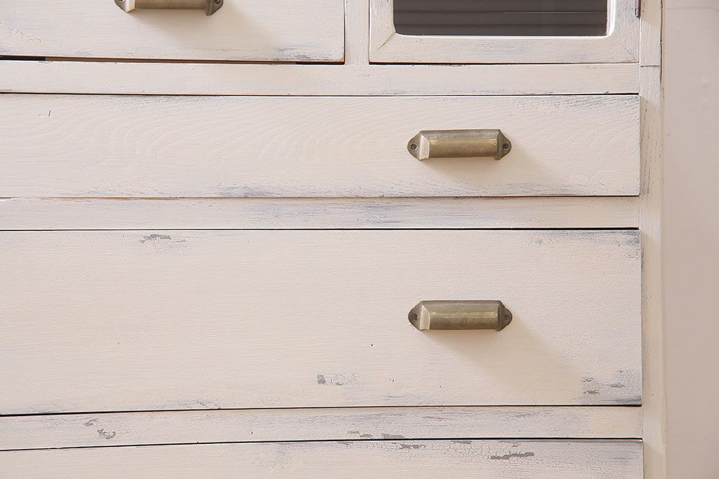 アンティーク家具 昭和中期 モールガラス入り シャビーなペイントがおしゃれなチェスト(引き出し)(R-045278)です。