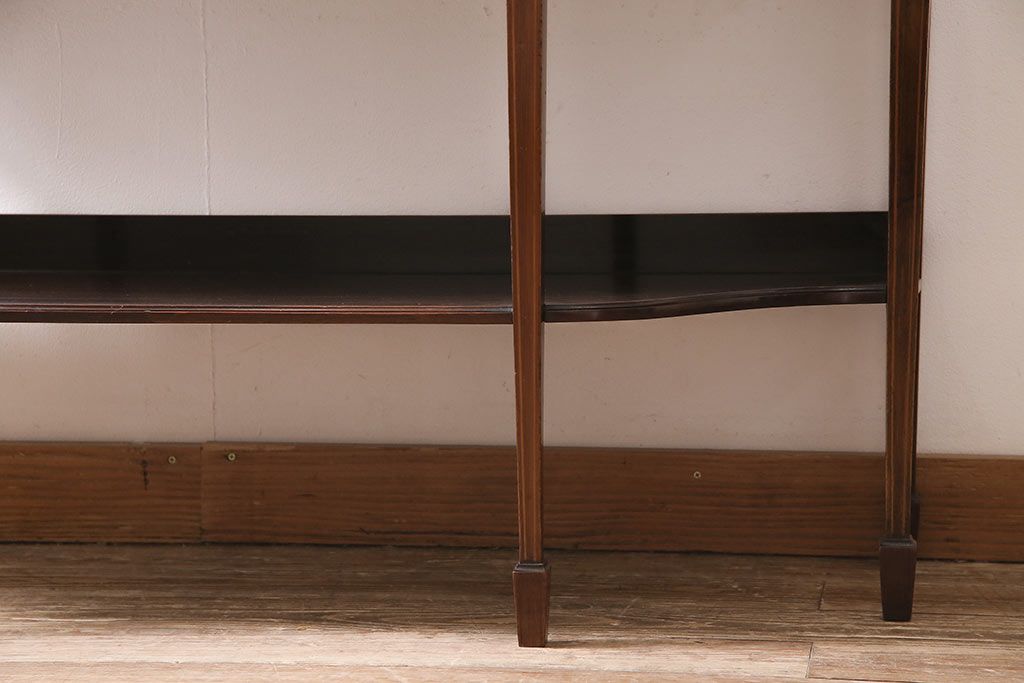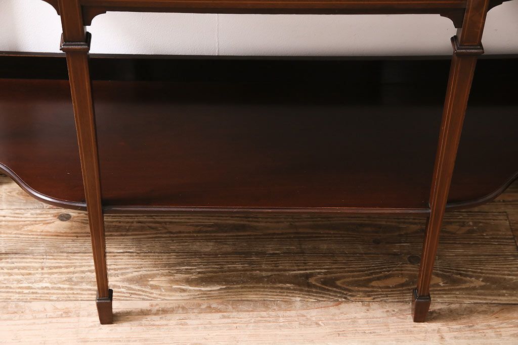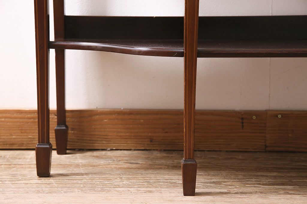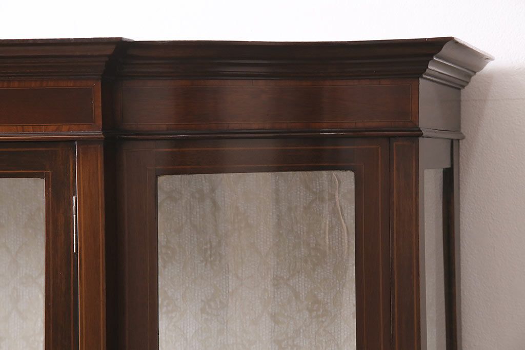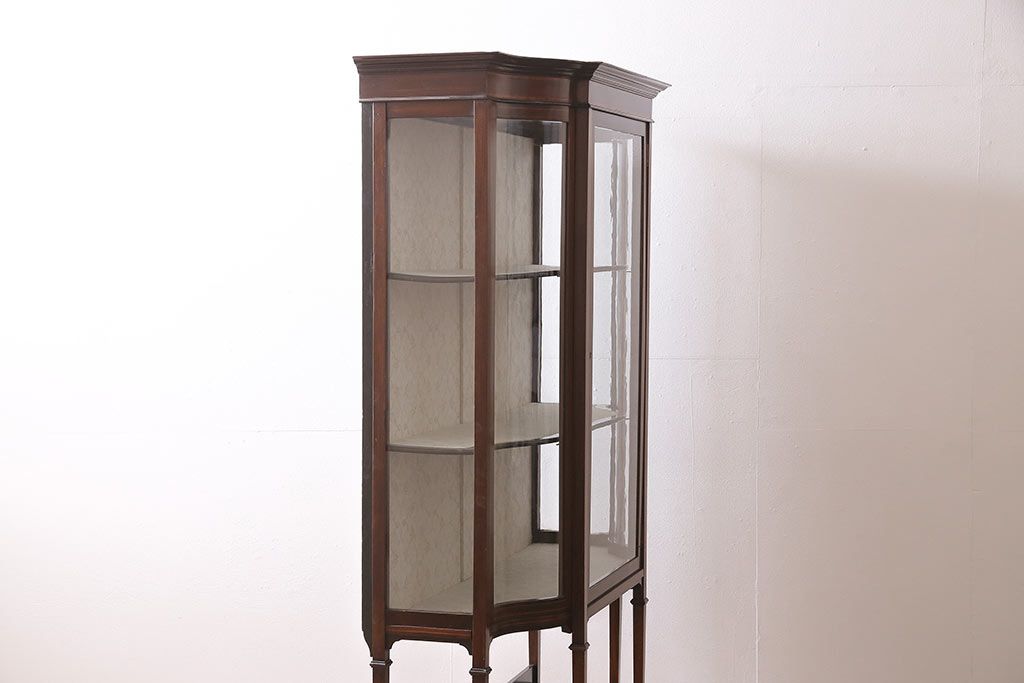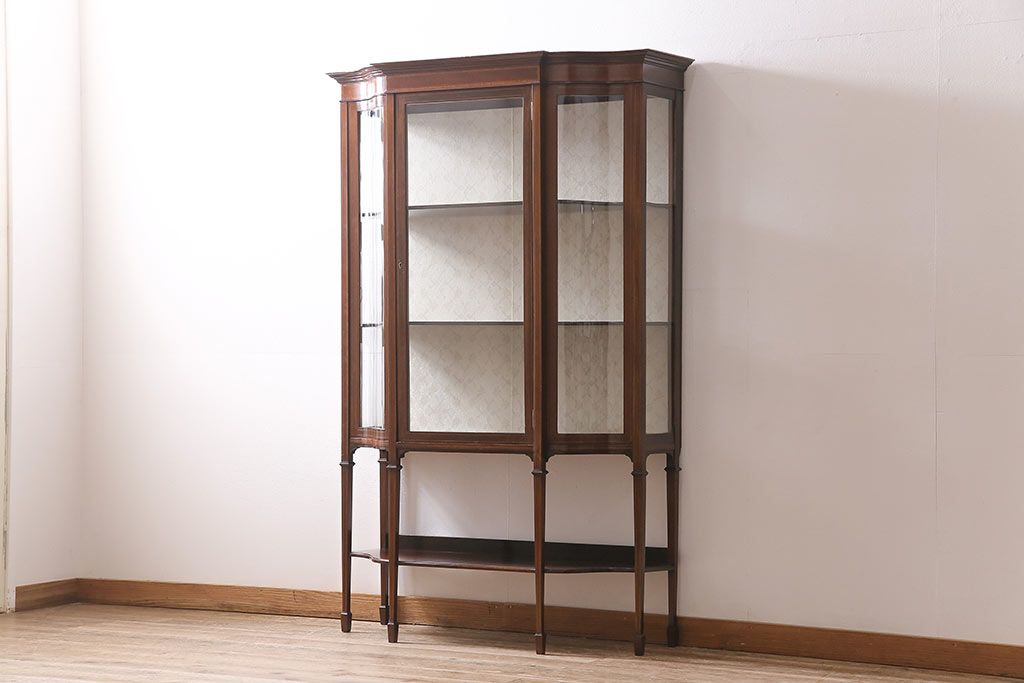 店舗什器 > イギリスアンティーク マホガニー材 象嵌の装飾が高級感を漂わせるガラスキャビネット(チャイナキャビナット、ガラスケース、ショーケース、陳列棚)(R-045352)