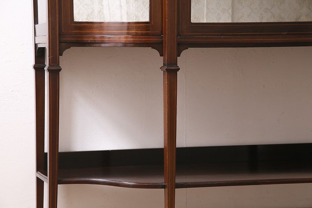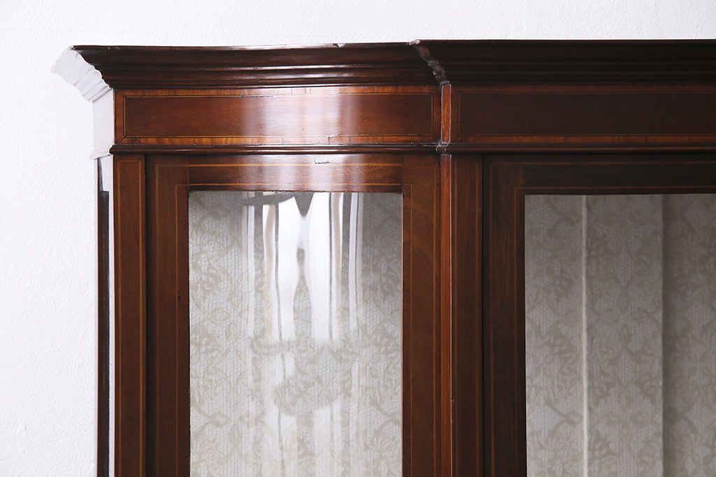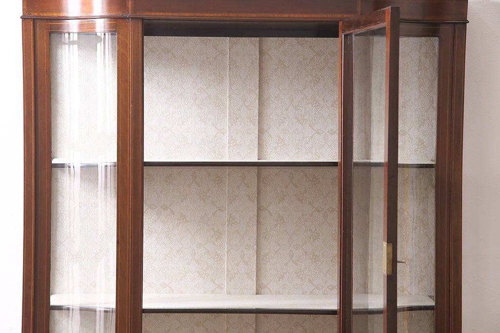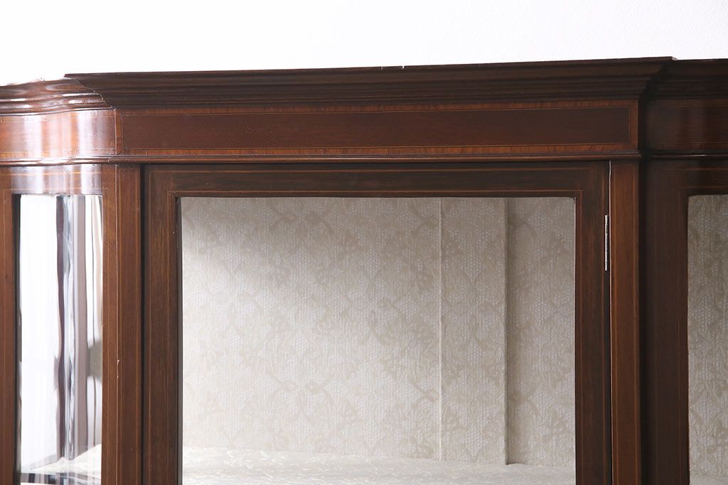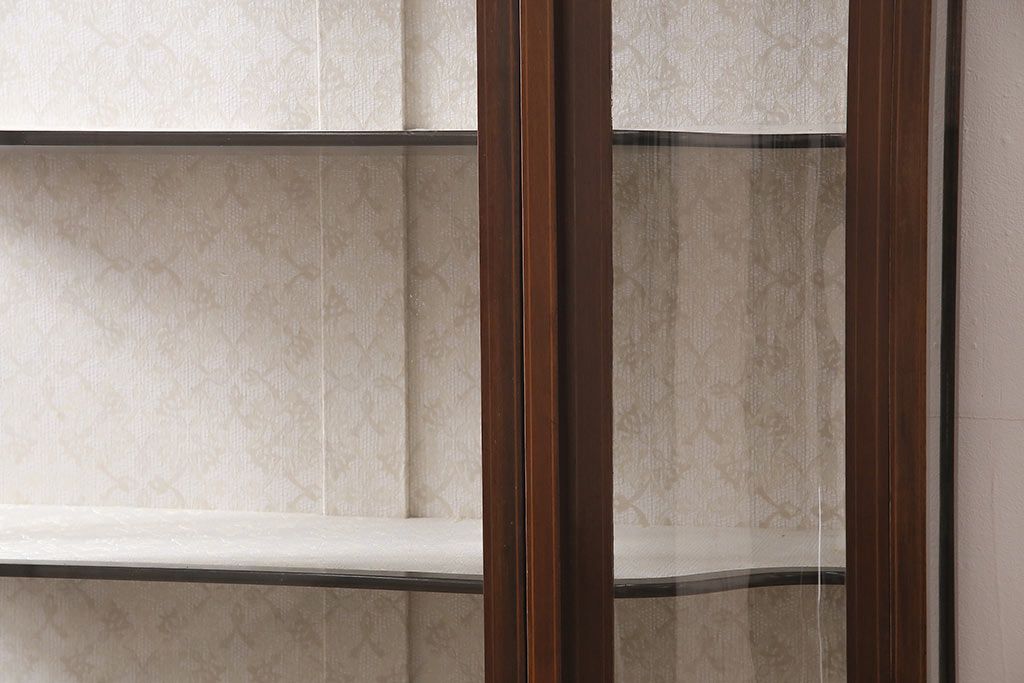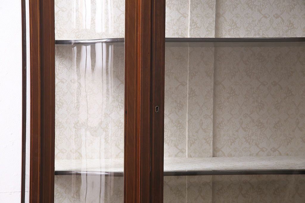 ガラスケース・ショーケース > イギリスアンティーク マホガニー材 象嵌の装飾が高級感を漂わせるガラスキャビネット(チャイナキャビナット、ガラスケース、ショーケース、陳列棚)(R-045352)