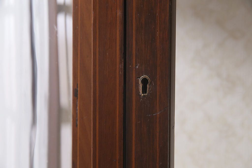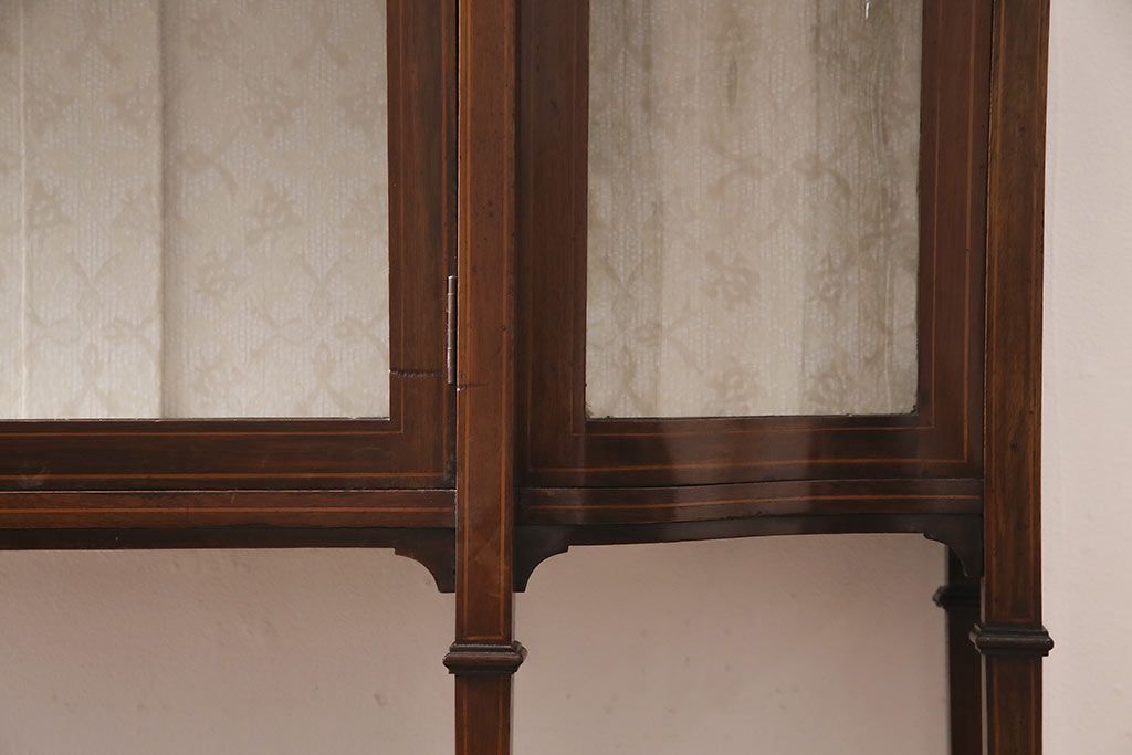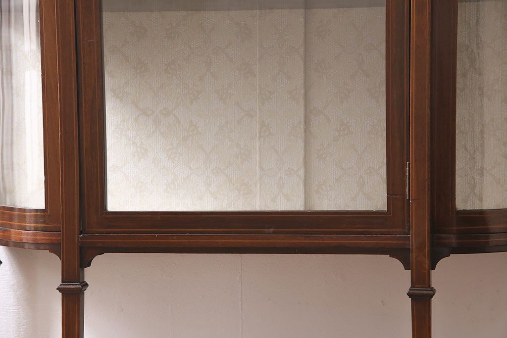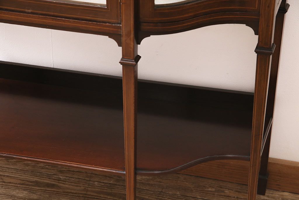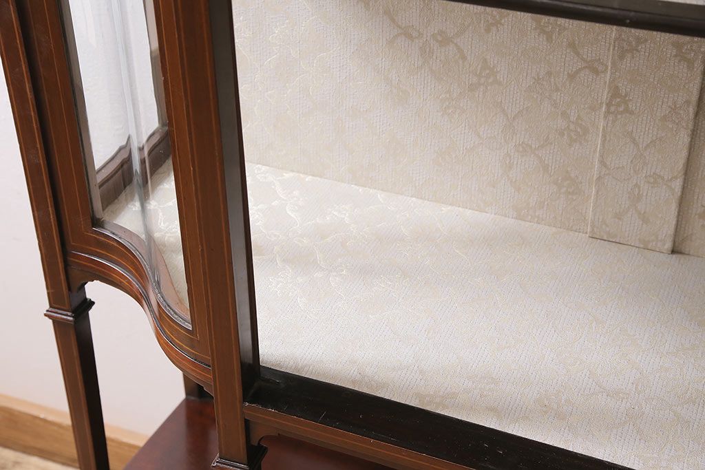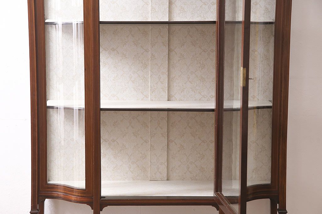 ガラスケース・ショーケース > イギリスアンティーク マホガニー材 象嵌の装飾が高級感を漂わせるガラスキャビネット(チャイナキャビナット、ガラスケース、ショーケース、陳列棚)(R-045352)