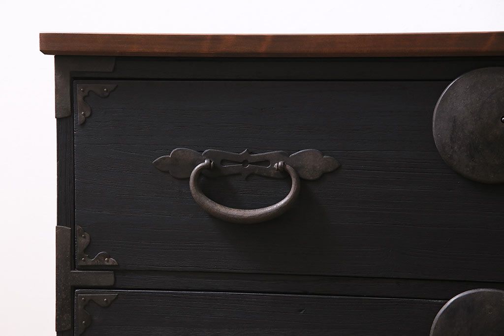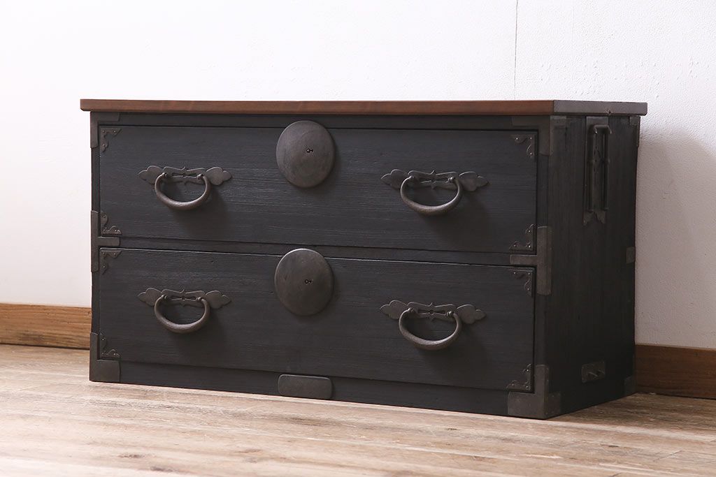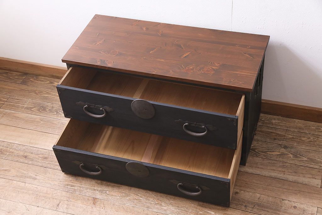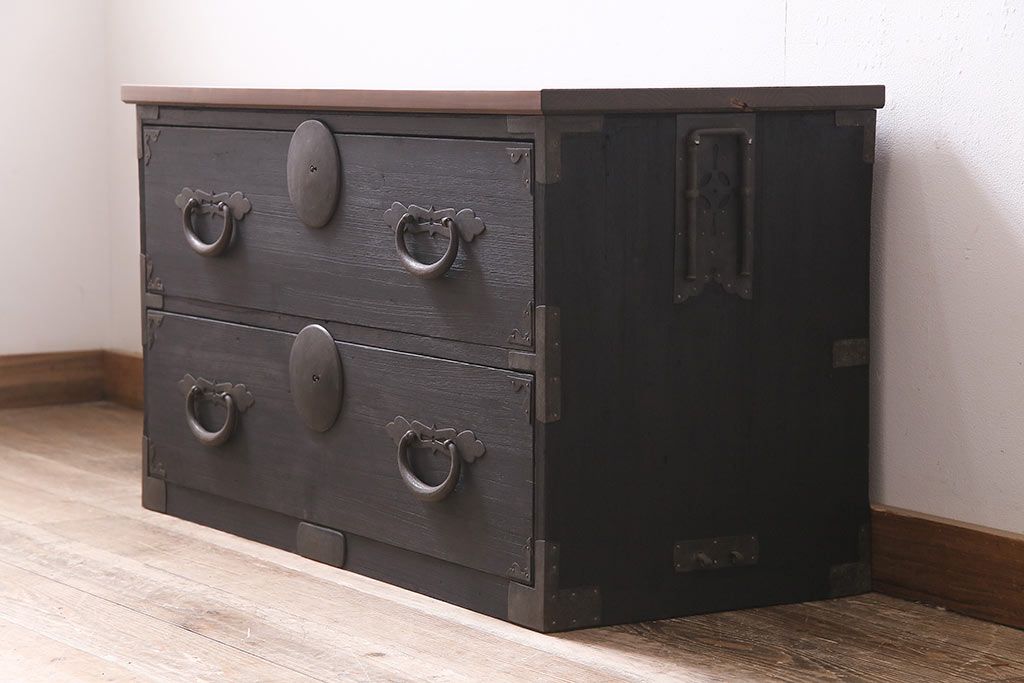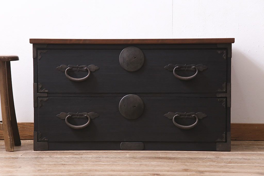 チェスト・引き出し> ローチェスト > アンティーク家具 ペイントリメイク 明治大正期 モダンな雰囲気薫る箪笥ローボード(チェスト、引き出し、和箪笥、衣装タンス)(R-045350)