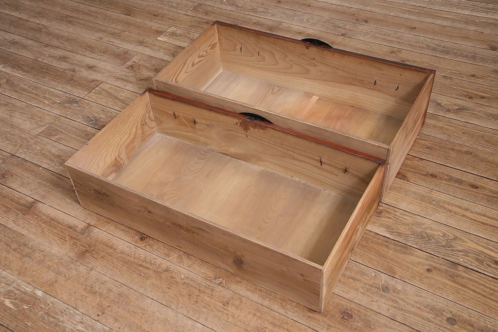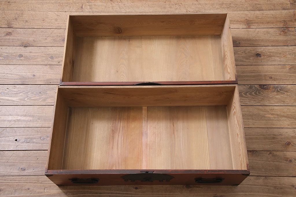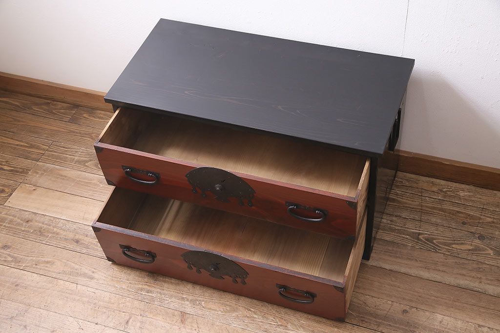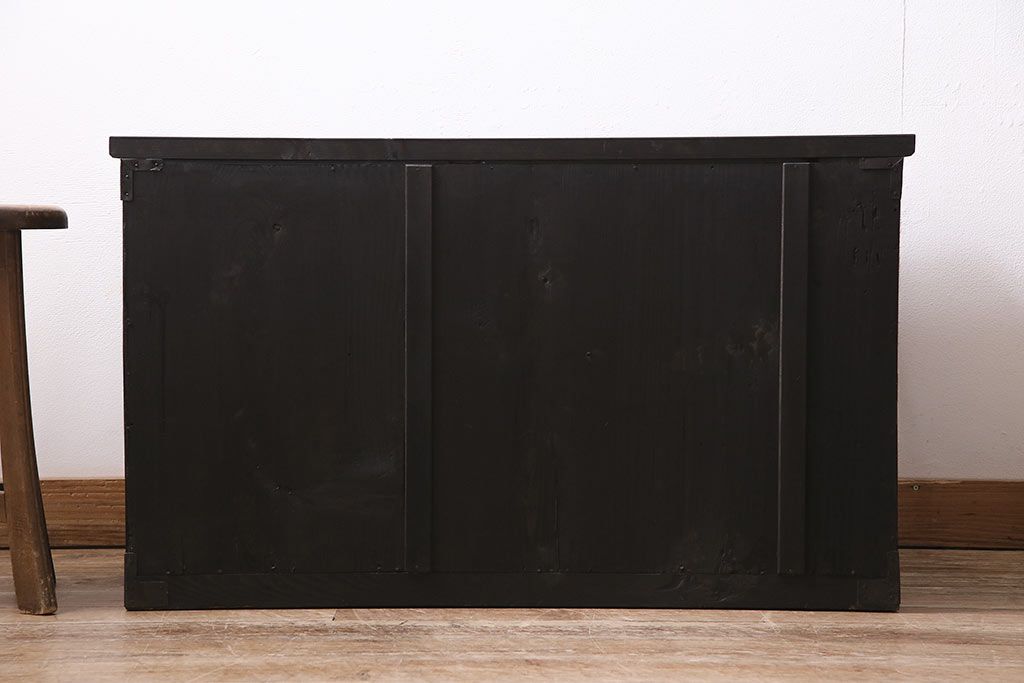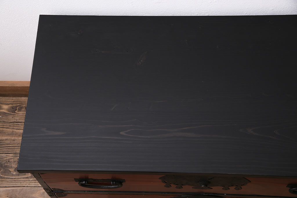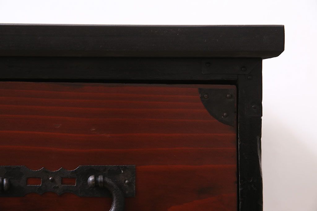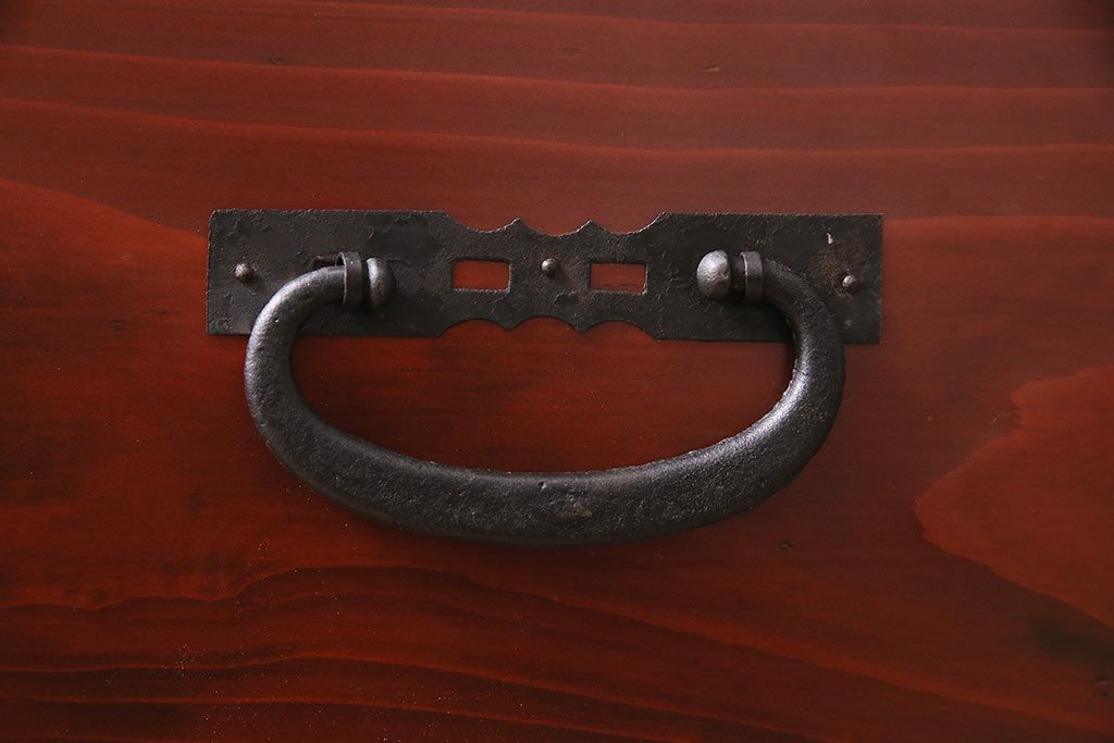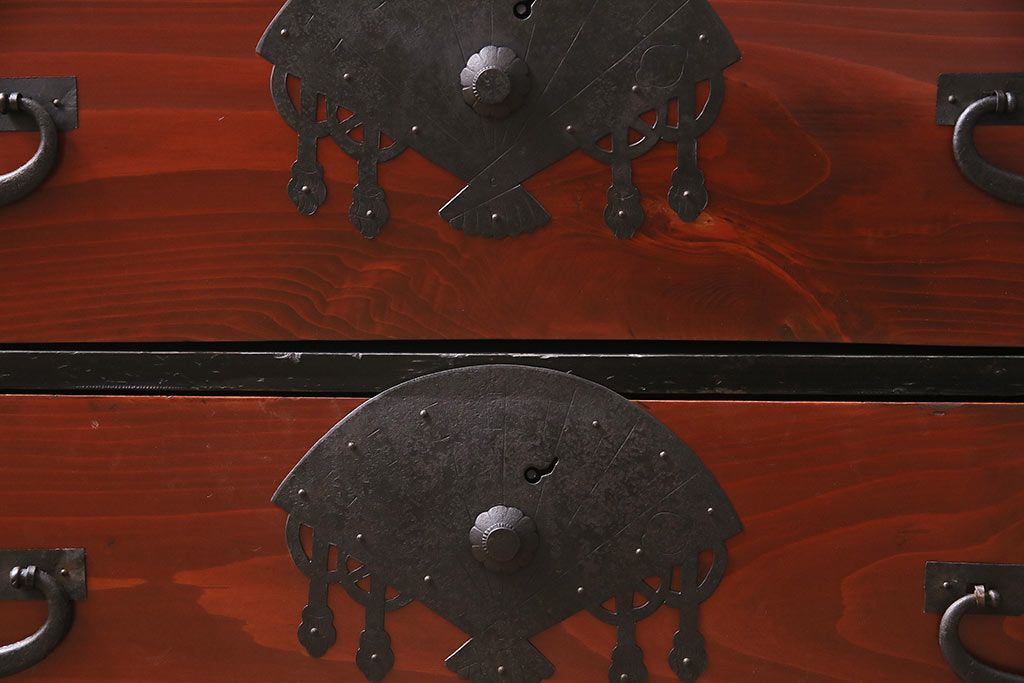 アンティーク家具 明治大正期 扇の飾り金具が存在感を引き立てる箪笥ローボード(衣装箪笥、引き出し)(R-039864)