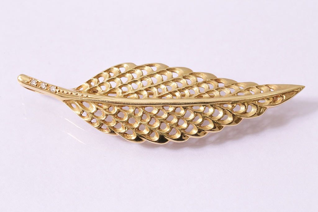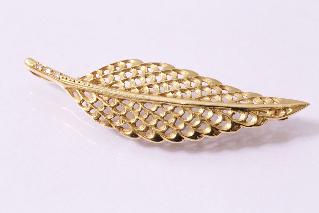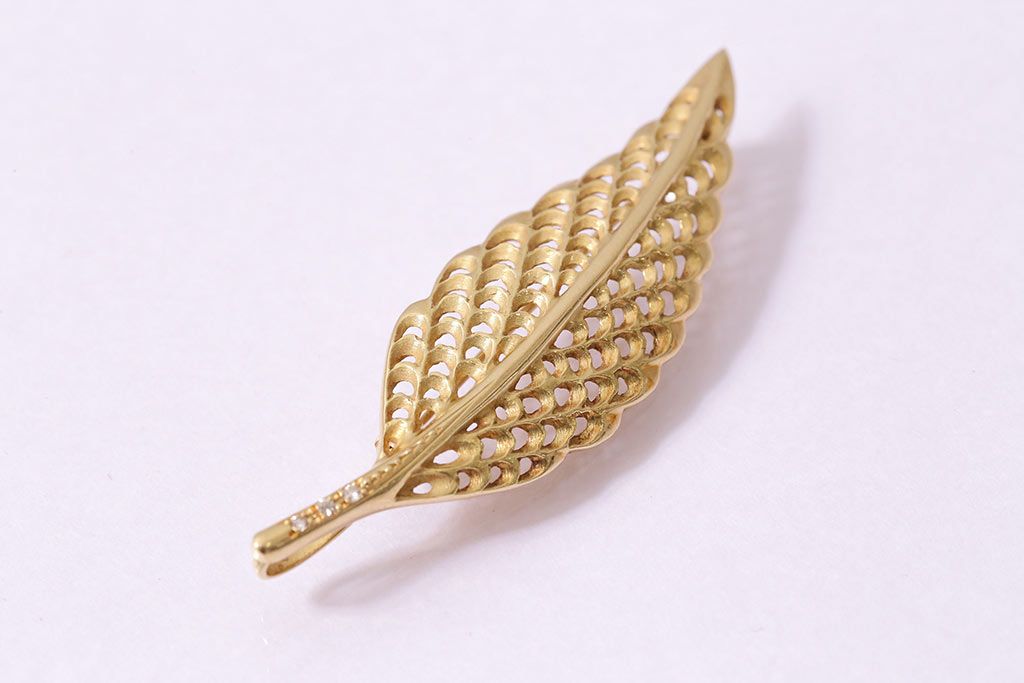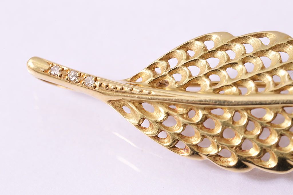 ラフジュ工房> アクセサリー> ブローチ > ヴィンテージアクセサリー K18 透かしリーフモチーフのゴールドブローチ(ビンテージ)(R-045383)