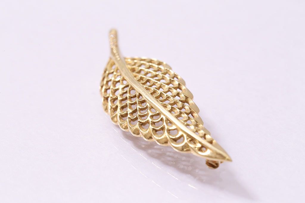 ラフジュ工房> 雑貨 > ヴィンテージアクセサリー K18 透かしリーフモチーフのゴールドブローチ(ビンテージ)(R-045383)