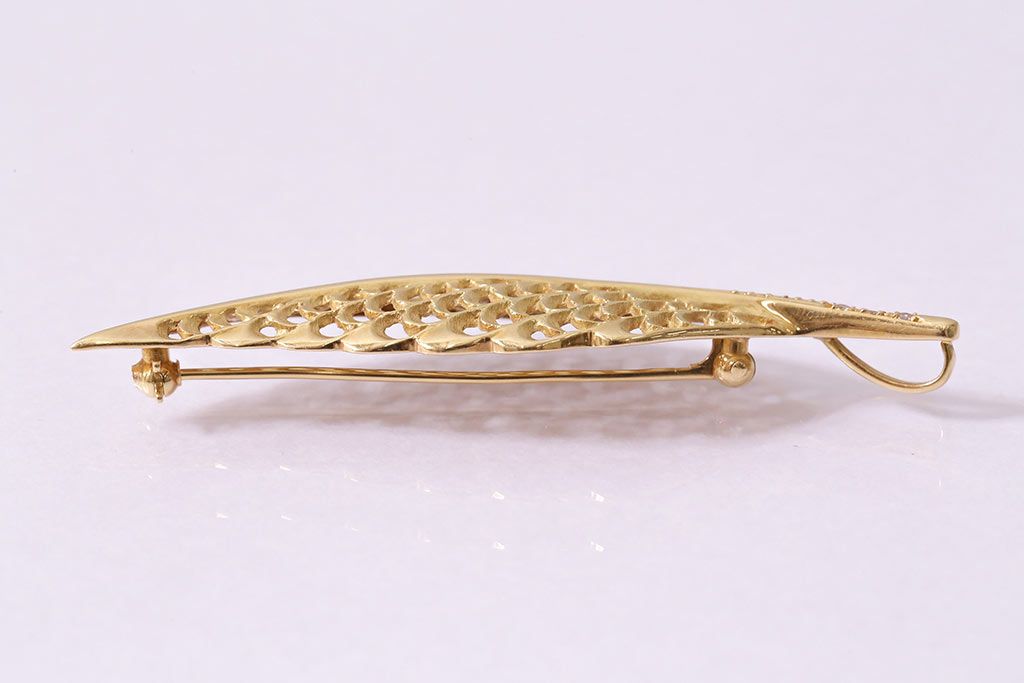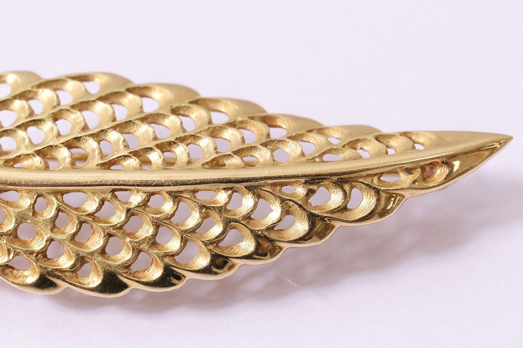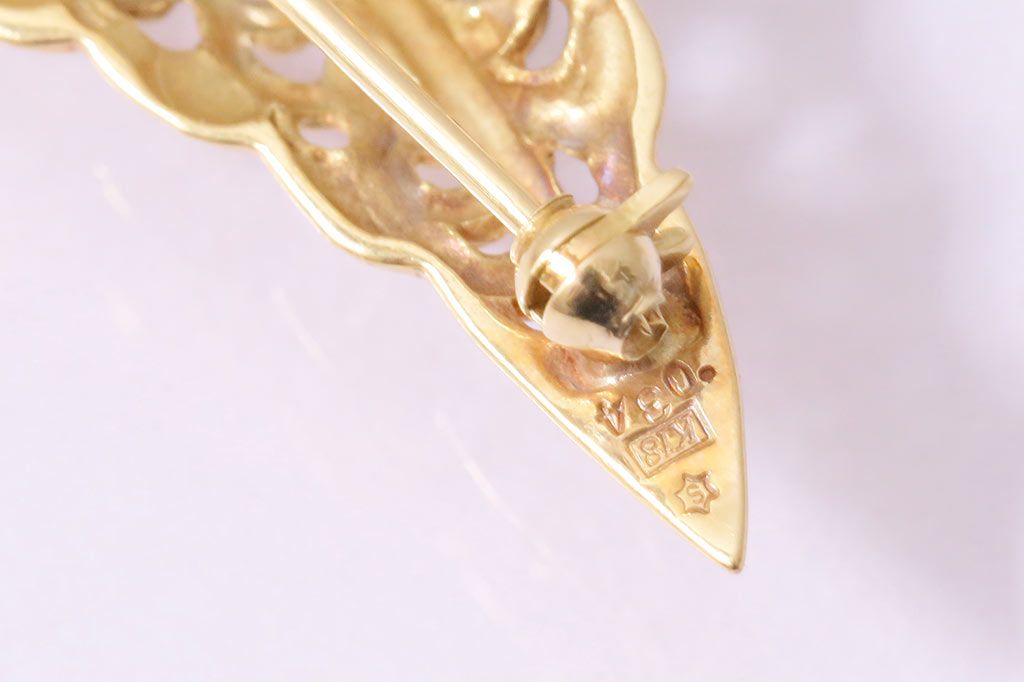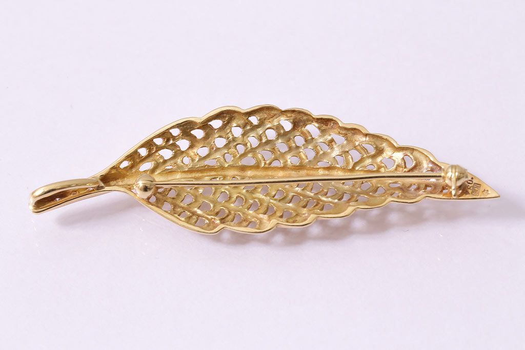 ラフジュ工房> アクセサリー > ヴィンテージアクセサリー K18 透かしリーフモチーフのゴールドブローチ(ビンテージ)(R-045383)