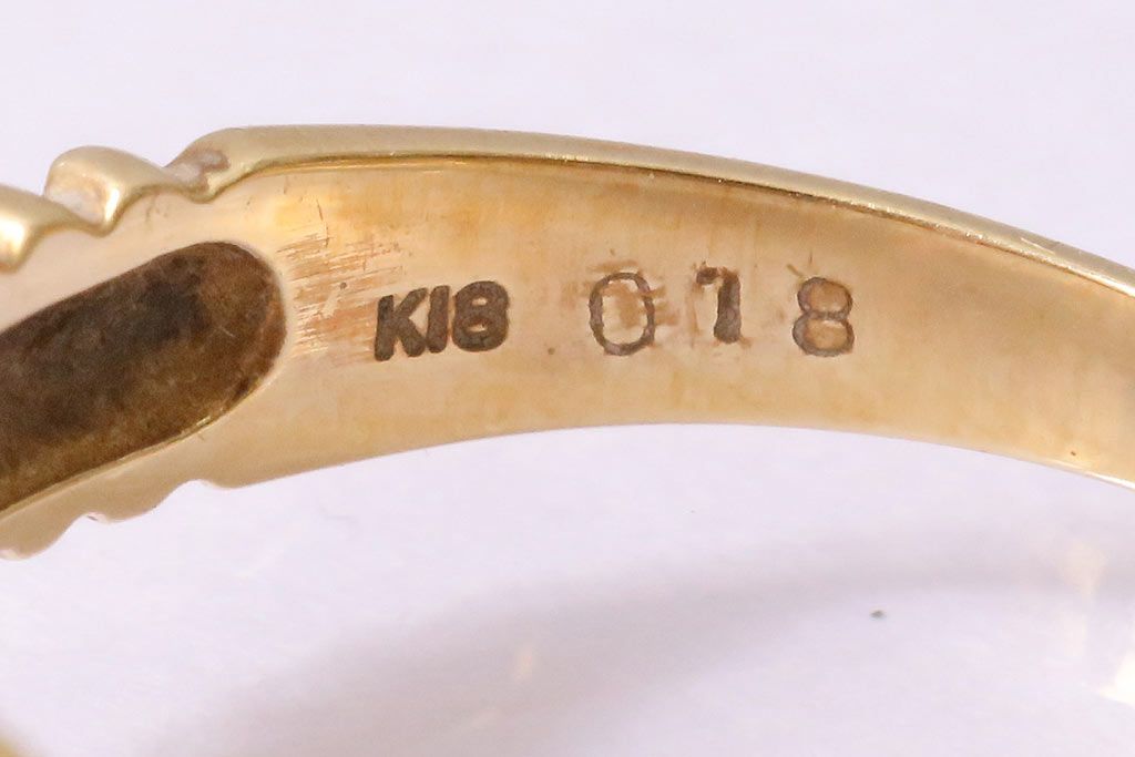 ヴィンテージアクセサリー K18 ゴールド ピンククリスタル風のリング(指輪、ビンテージ)(R-045384)