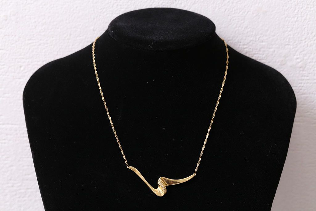 ヴィンテージアクセサリー K18 0.03ct 曲線のモチーフが目を引くビンテージネックレス(ペンダント)(R-045387)