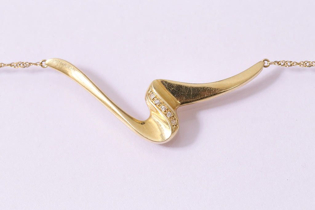 ラフジュ工房> 雑貨 > ヴィンテージアクセサリー K18 0.03ct 曲線のモチーフが目を引くビンテージネックレス(ペンダント)(R-045387)