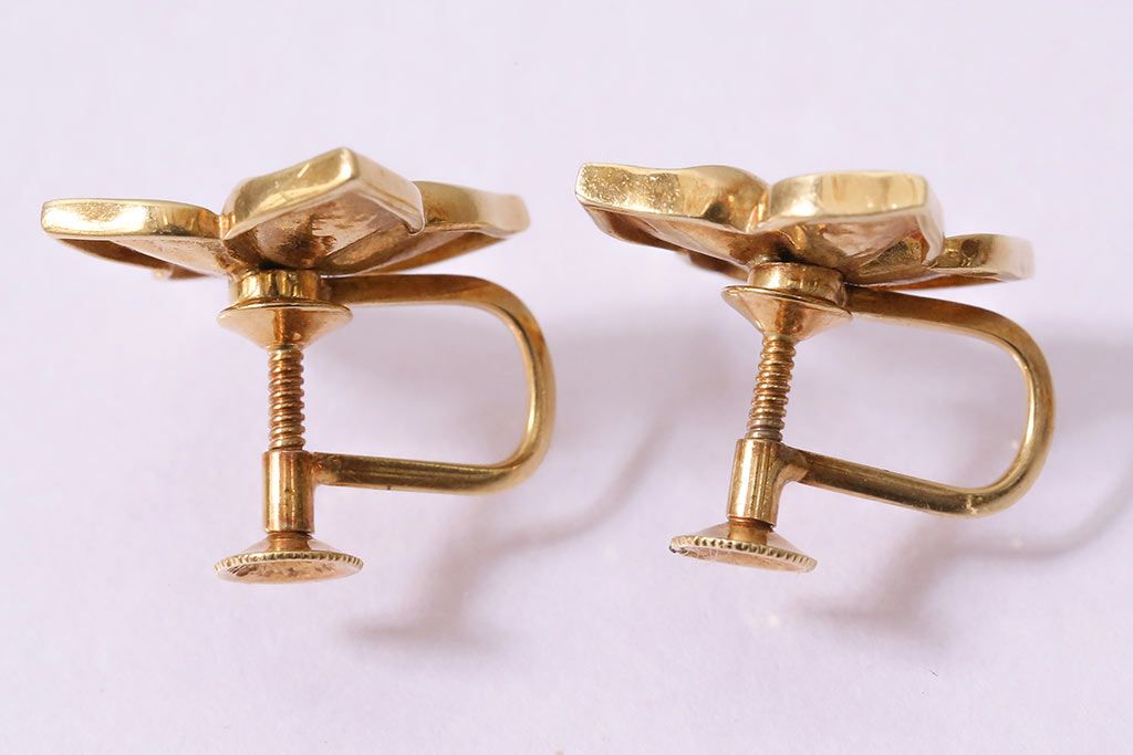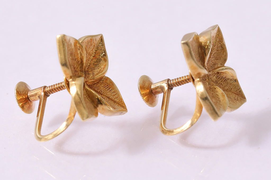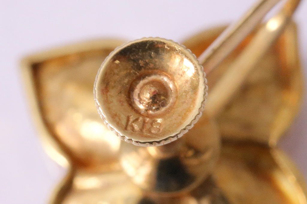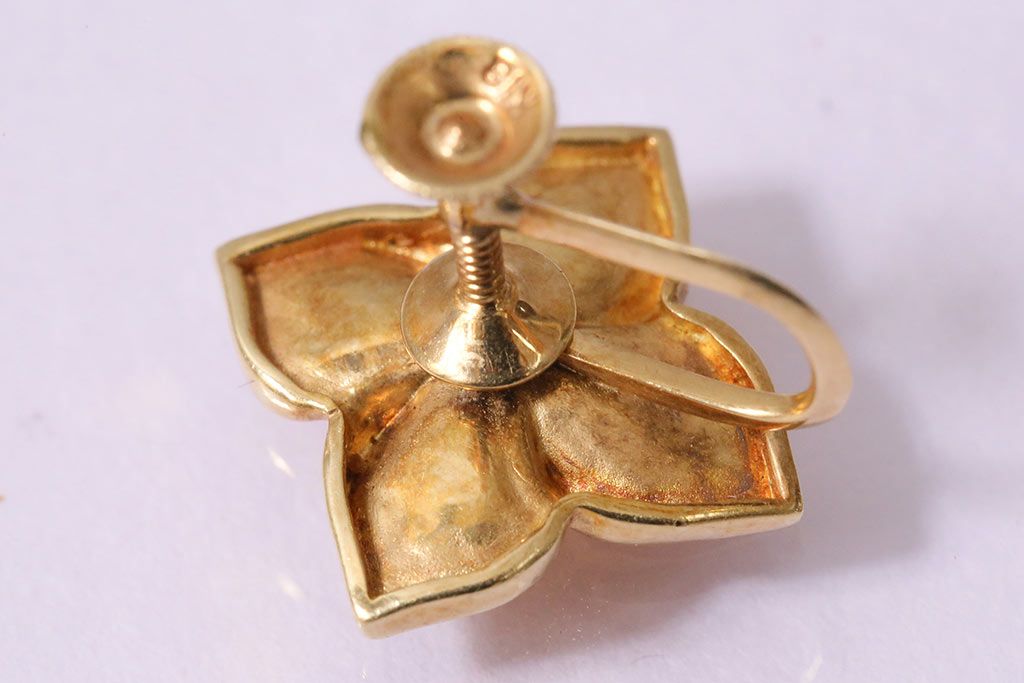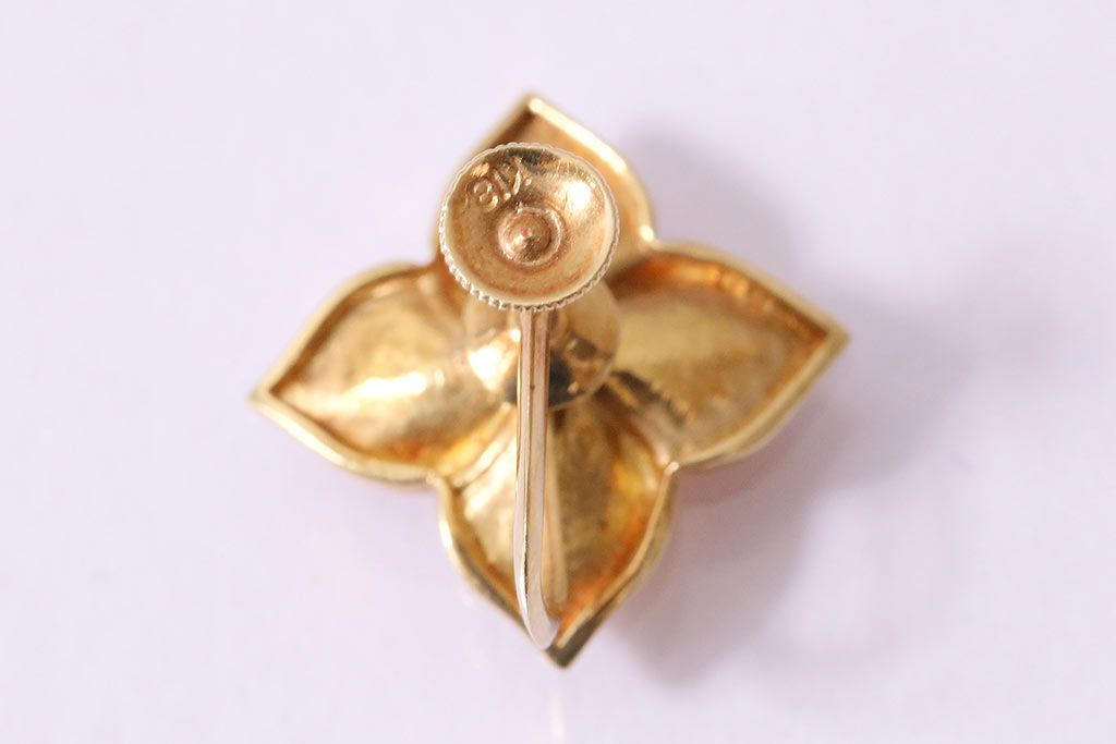 ヴィンテージアクセサリー K18 ゴールド 桔梗のような花のビンテージイヤリング(R-045391)