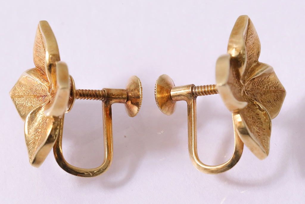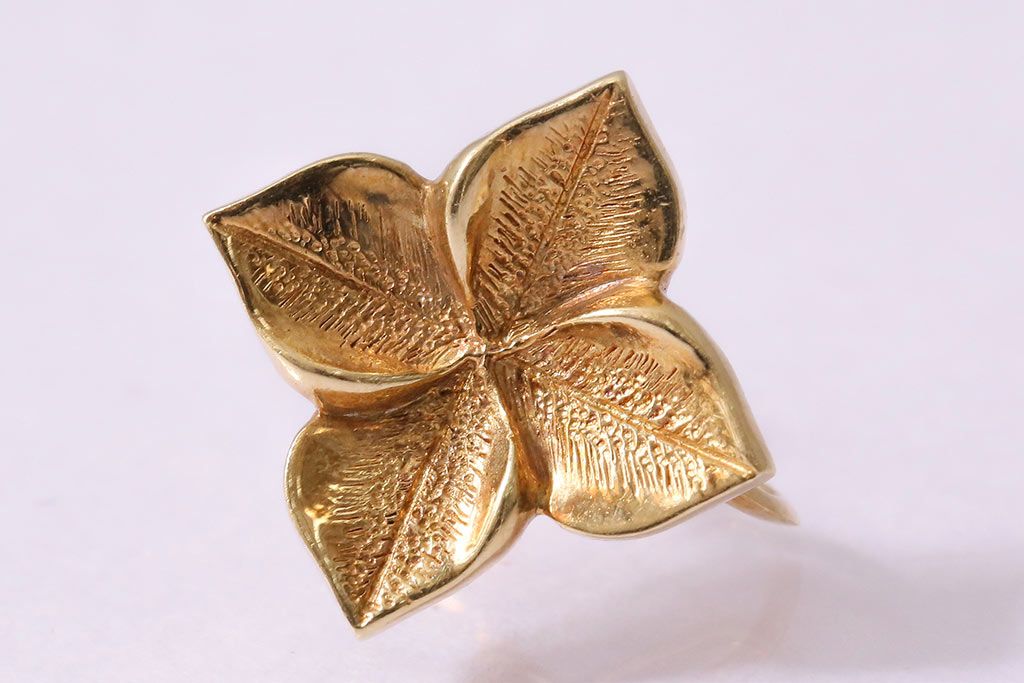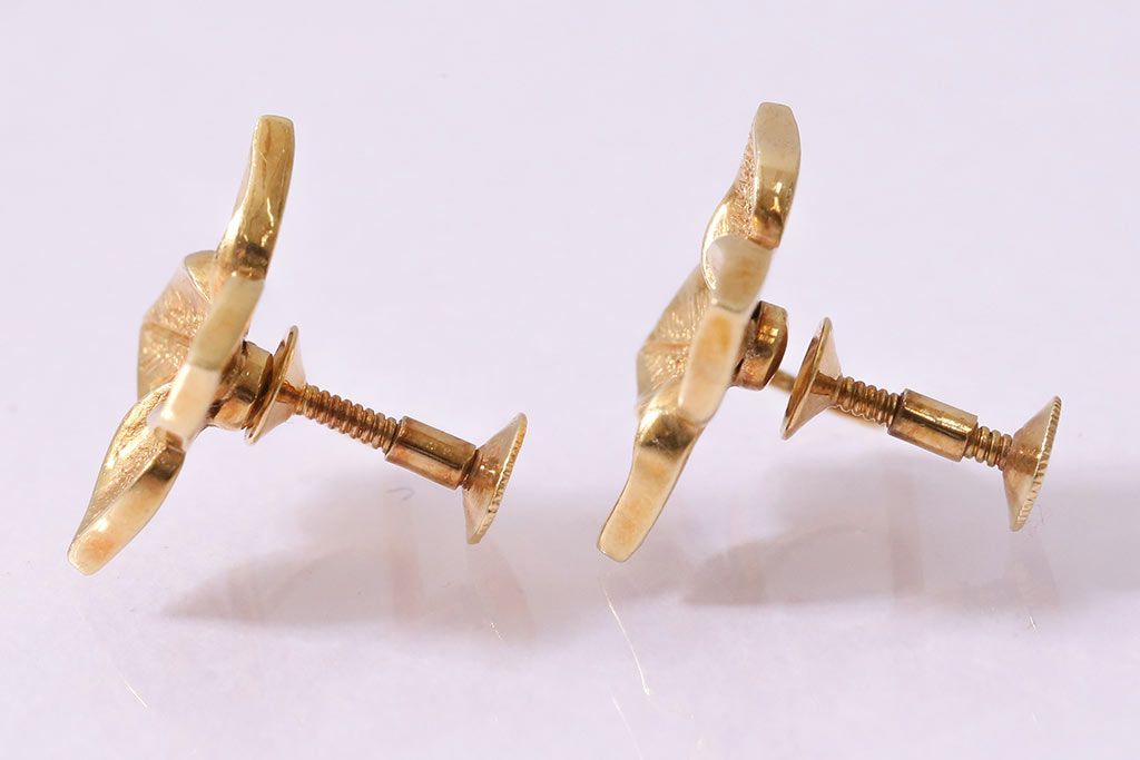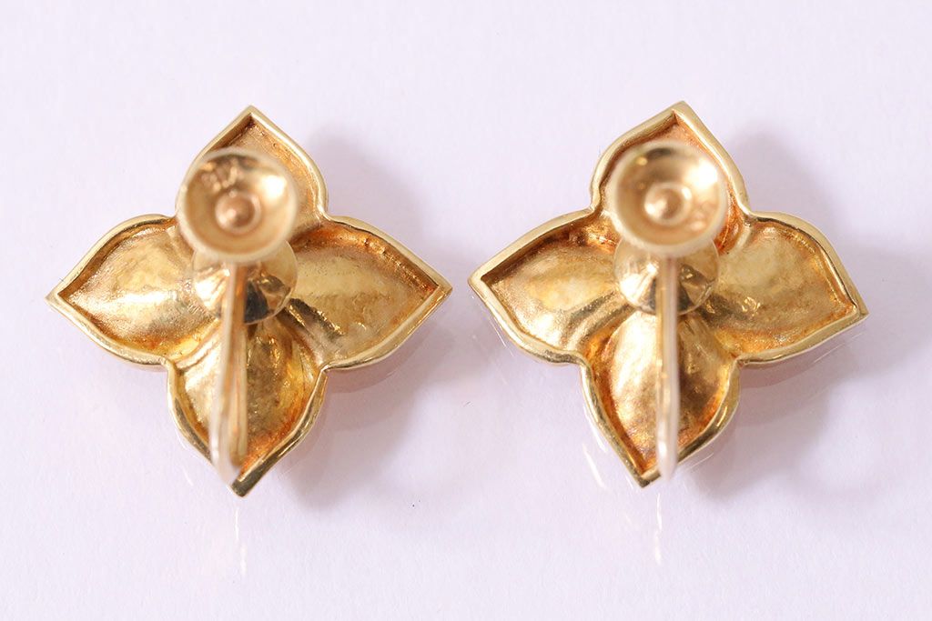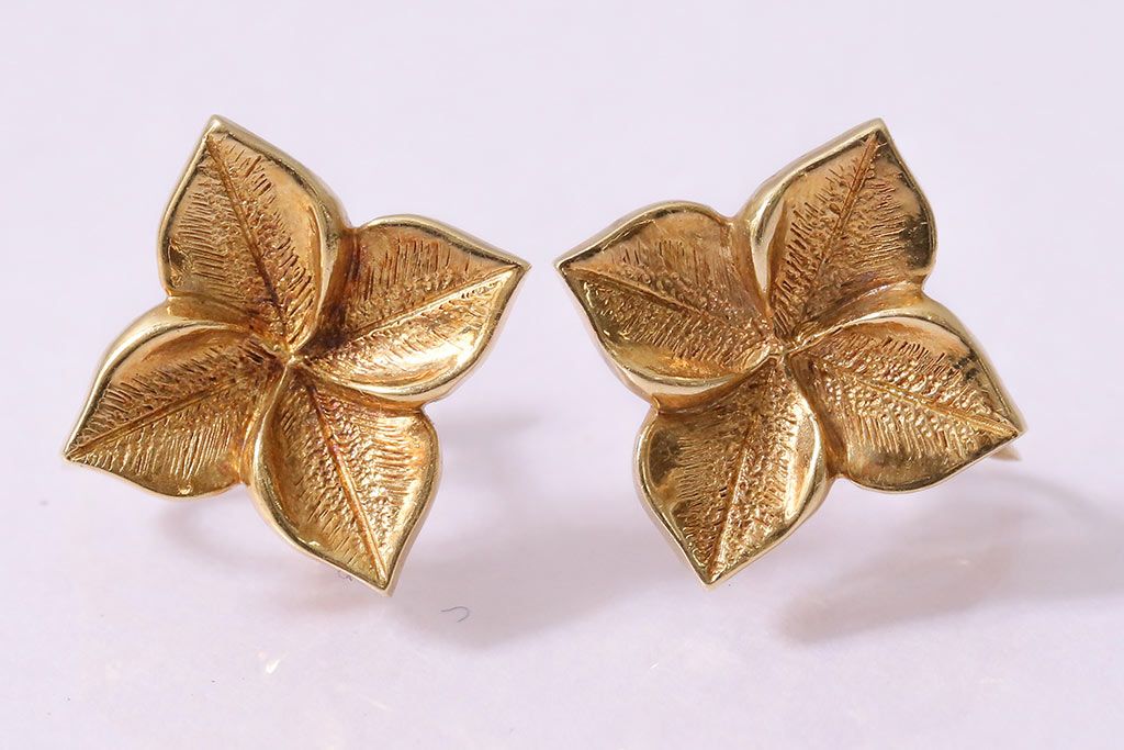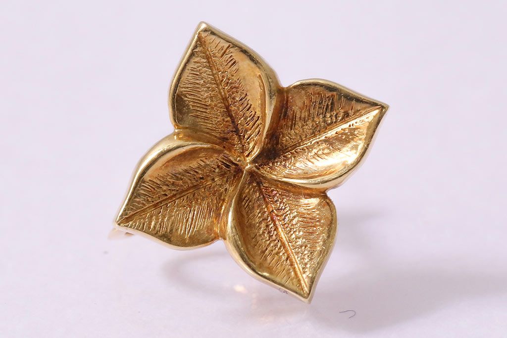 ヴィンテージアクセサリー K18 ゴールド 桔梗のような花のビンテージイヤリング(R-045391)