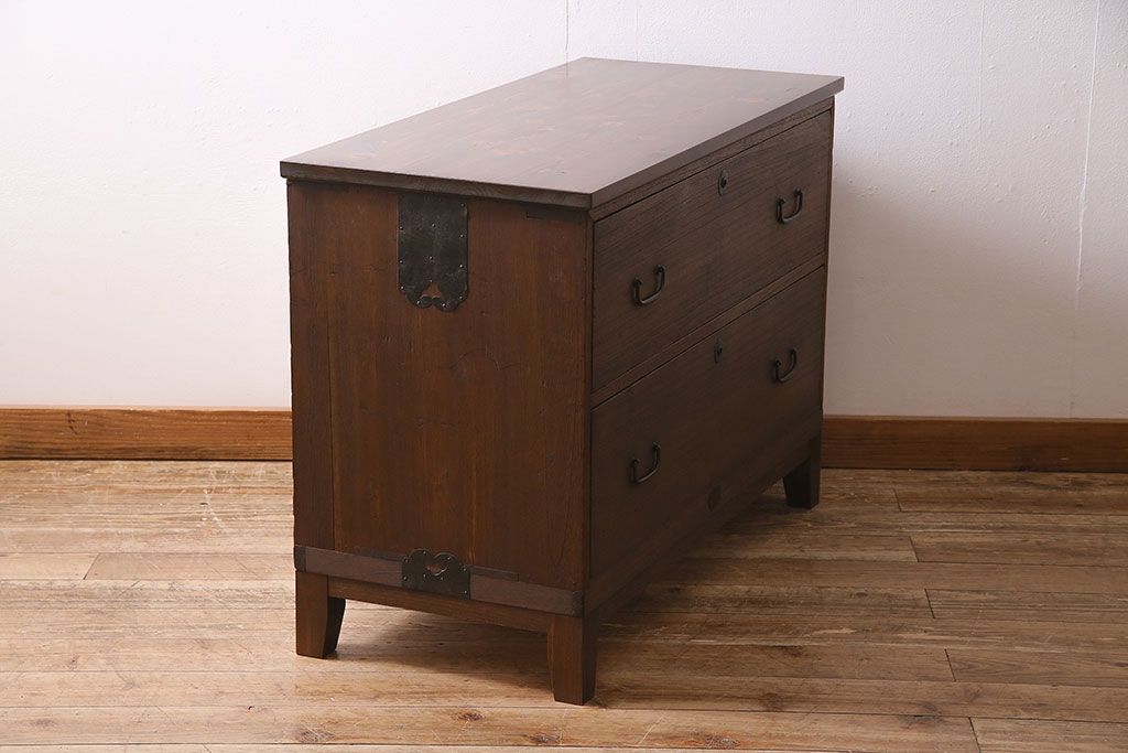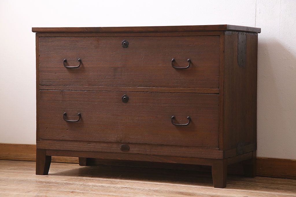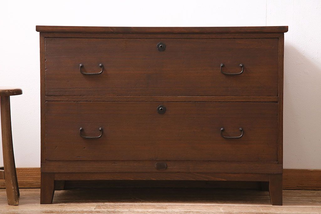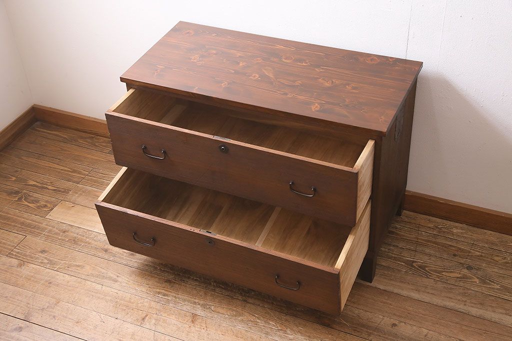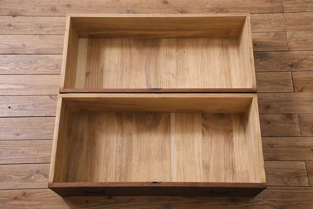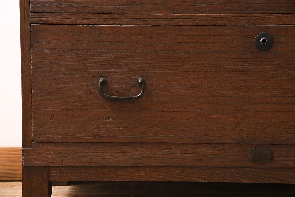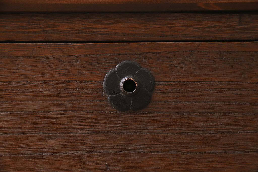 和箪笥> 衣装箪笥 > アンティーク家具 和製 昭和中期 天板リメイク 脚付きリビングボード(ローボード、ローチェスト、テレビ台、衣装箪笥、引き出し)(R-040450)