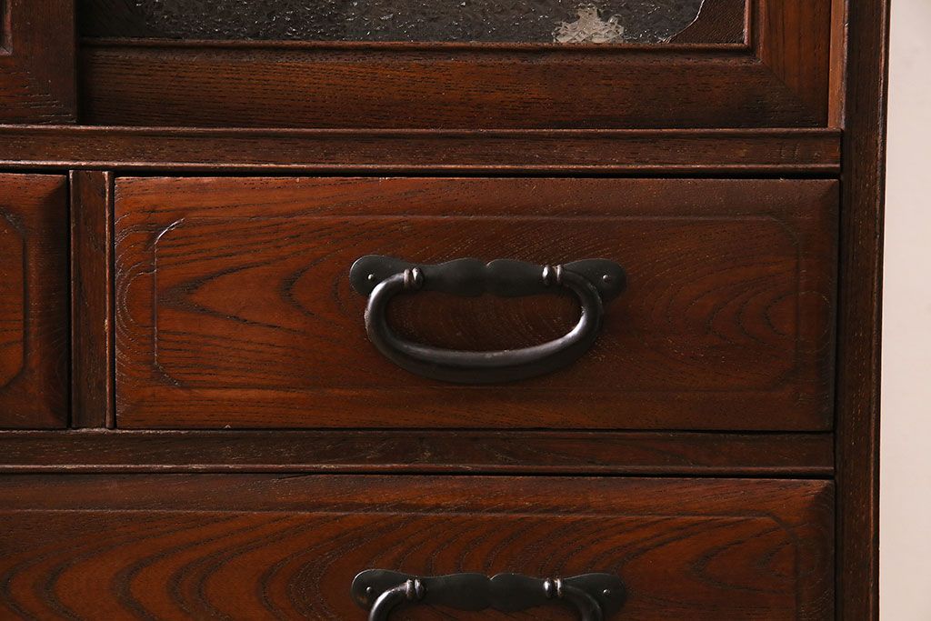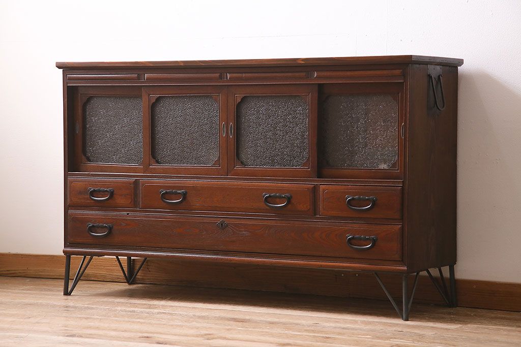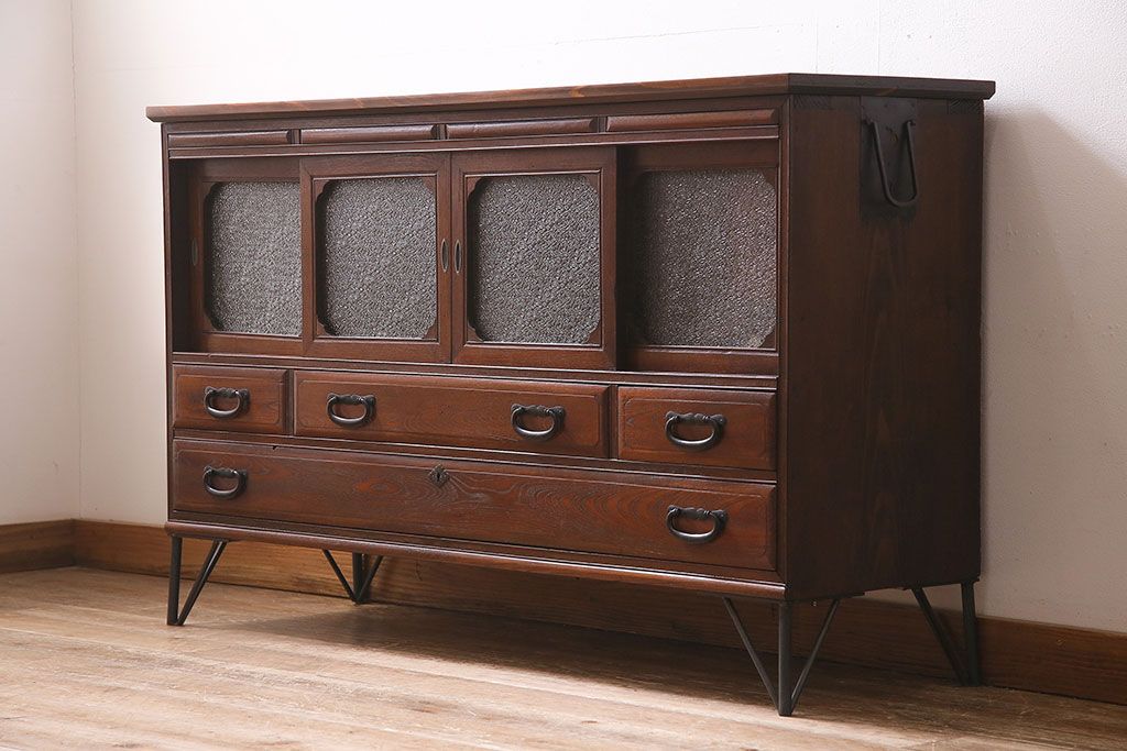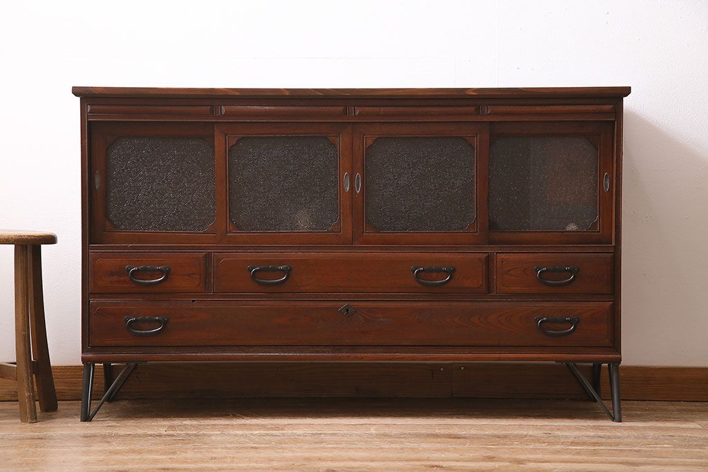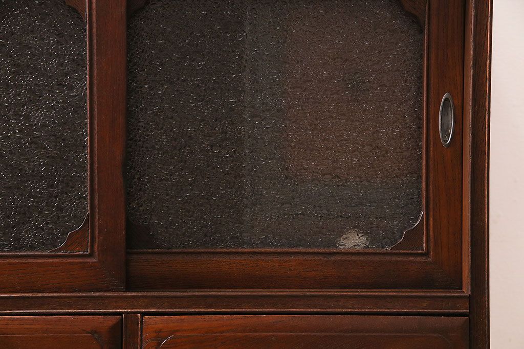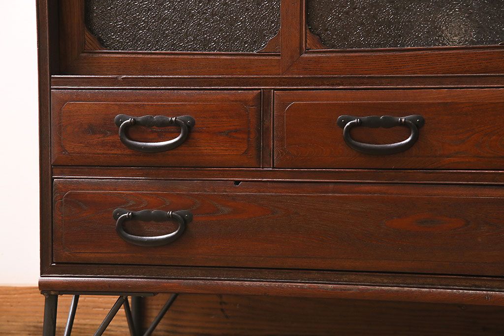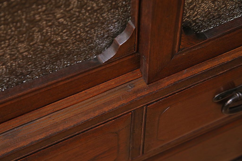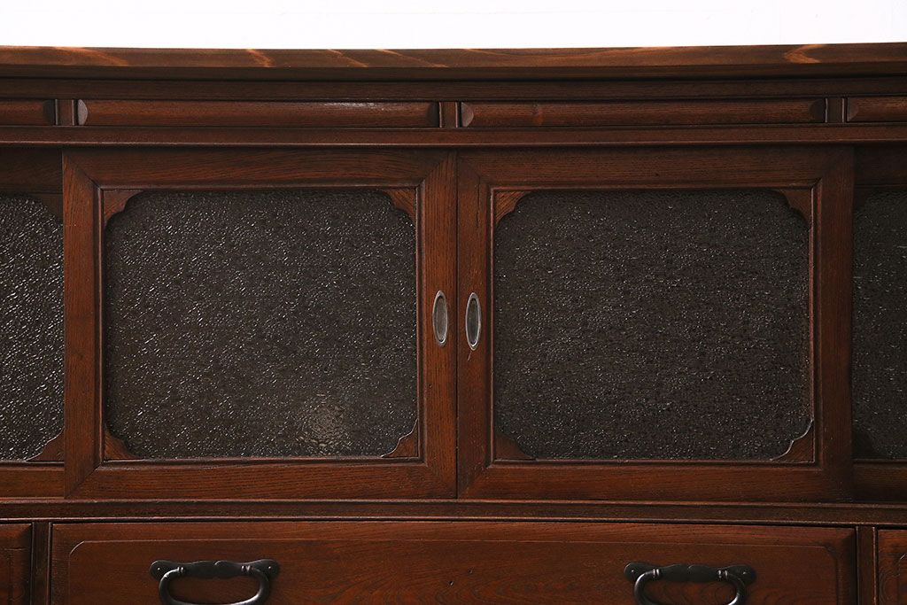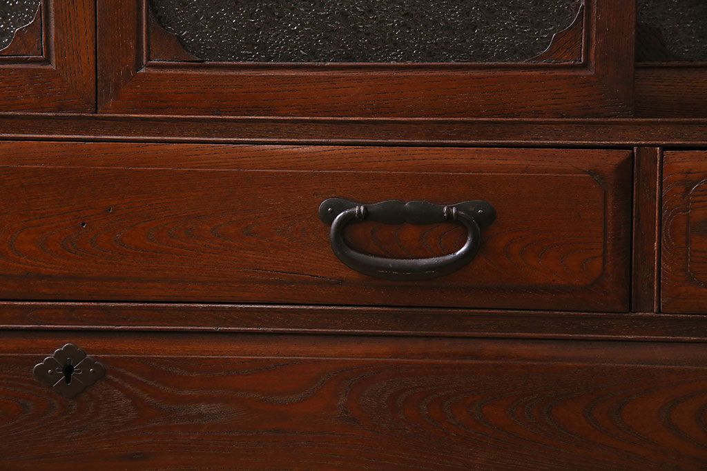 レトロ家具 大正昭和初期 ニレ材 ダイヤガラス 上品な印象のサイドボード(テレビ台、収納棚、戸棚)(R-036908)