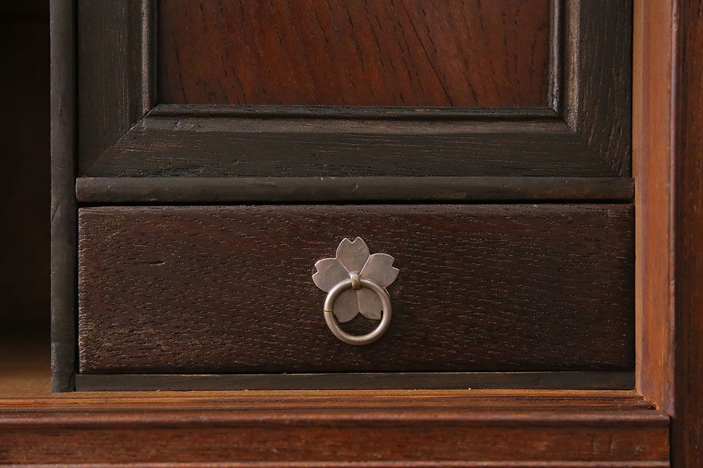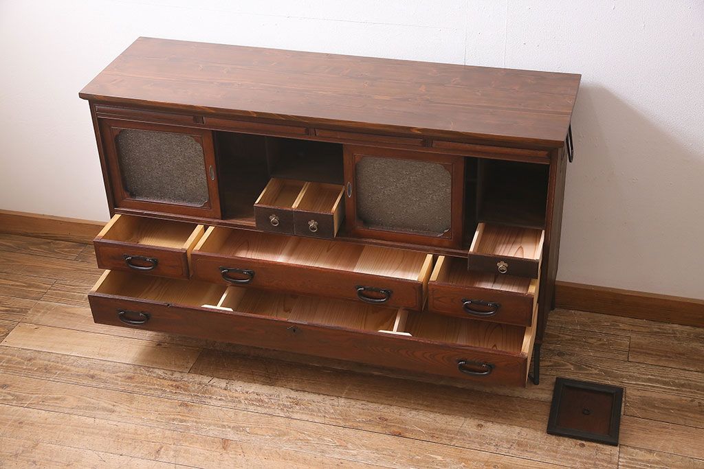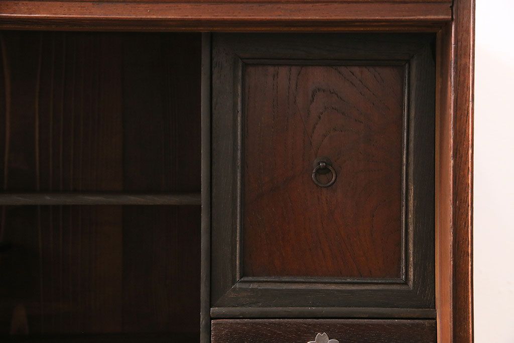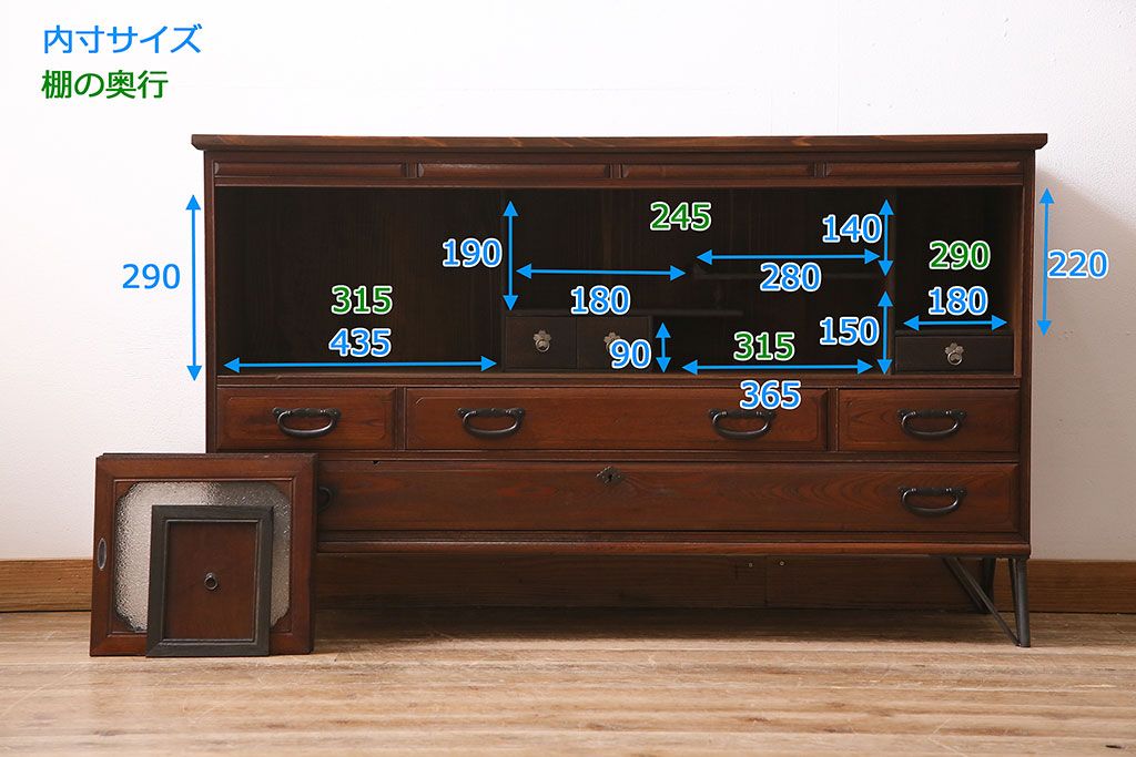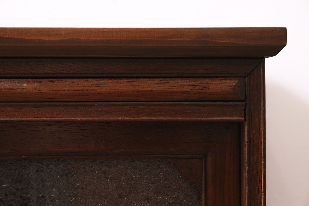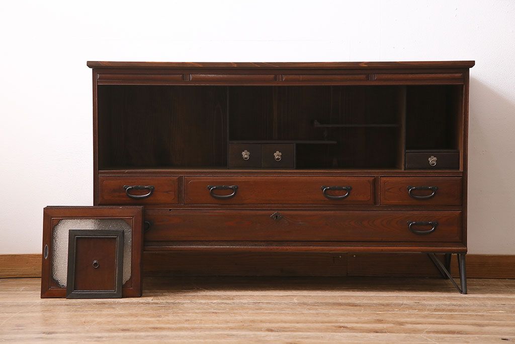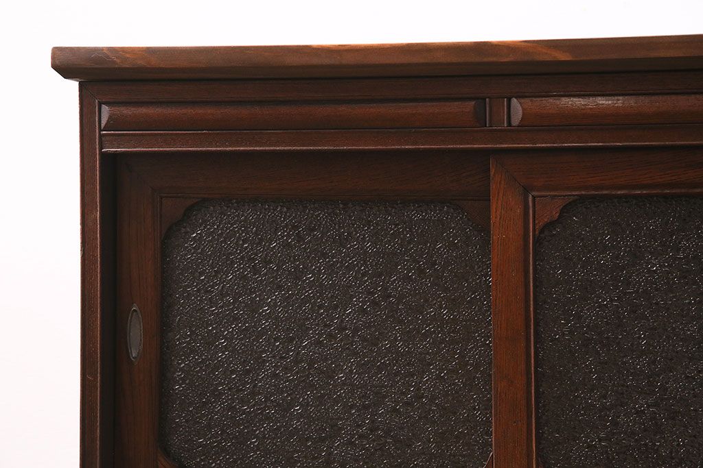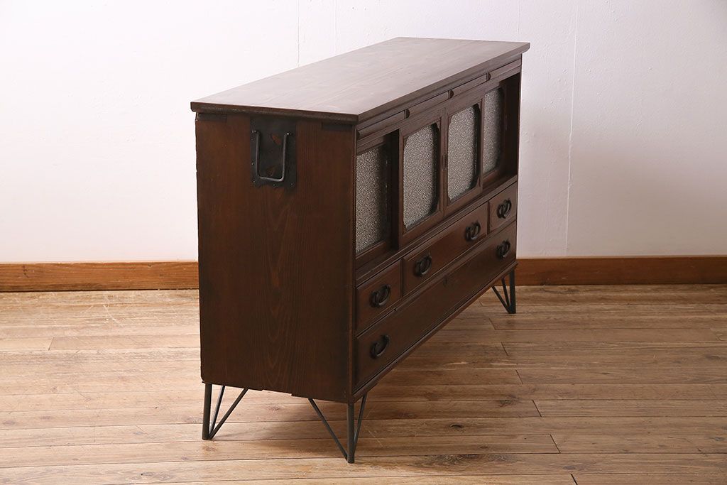 レトロ家具 大正昭和初期 ニレ材 ダイヤガラス 上品な印象のサイドボード(テレビ台、収納棚、戸棚)(R-036908)