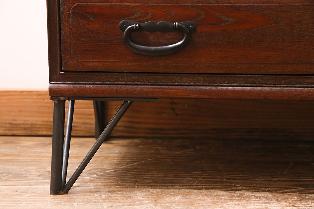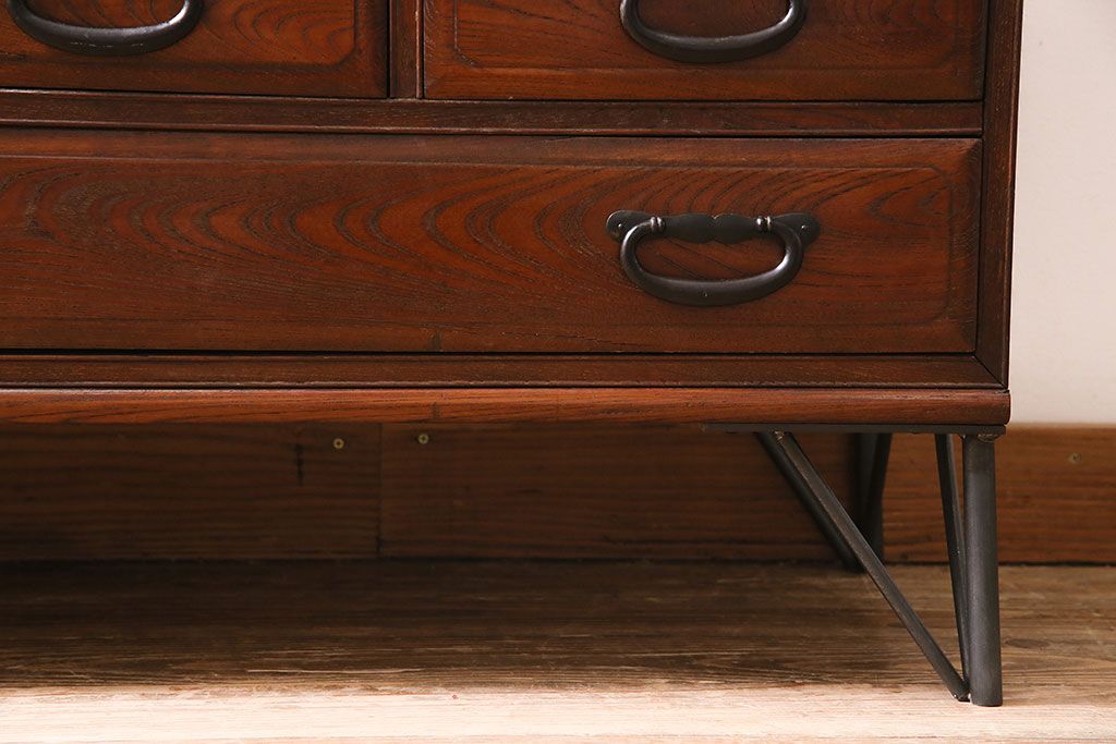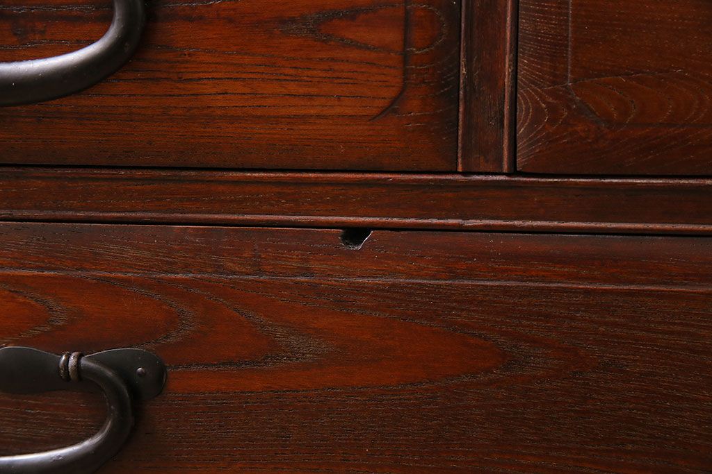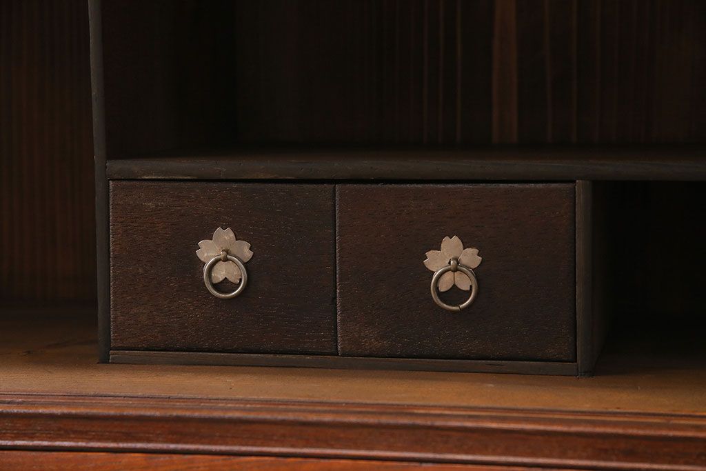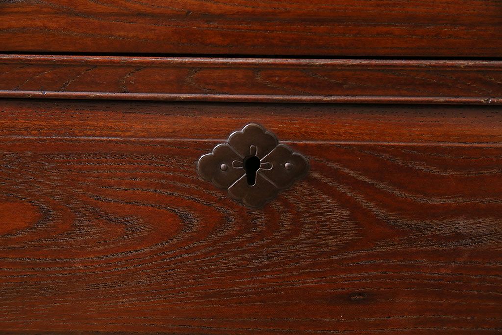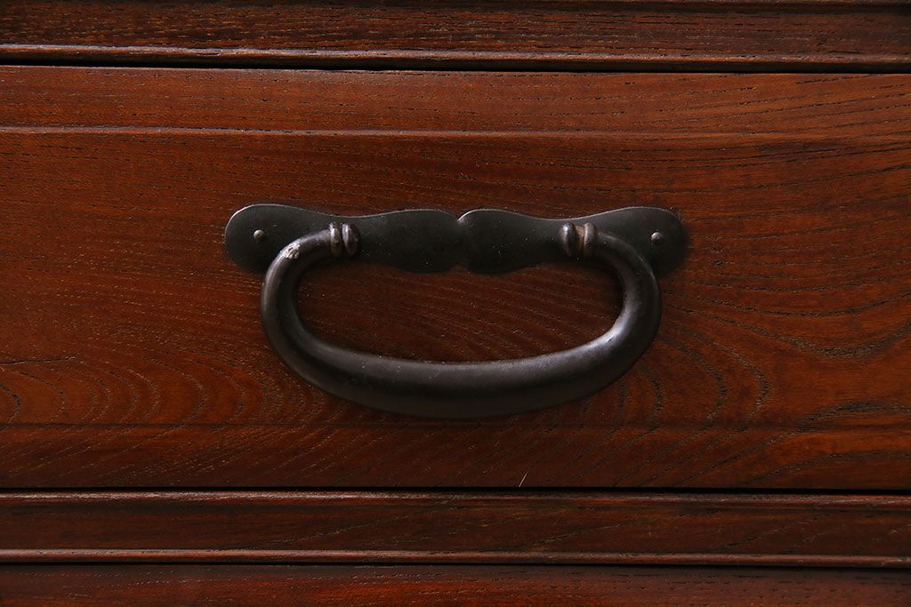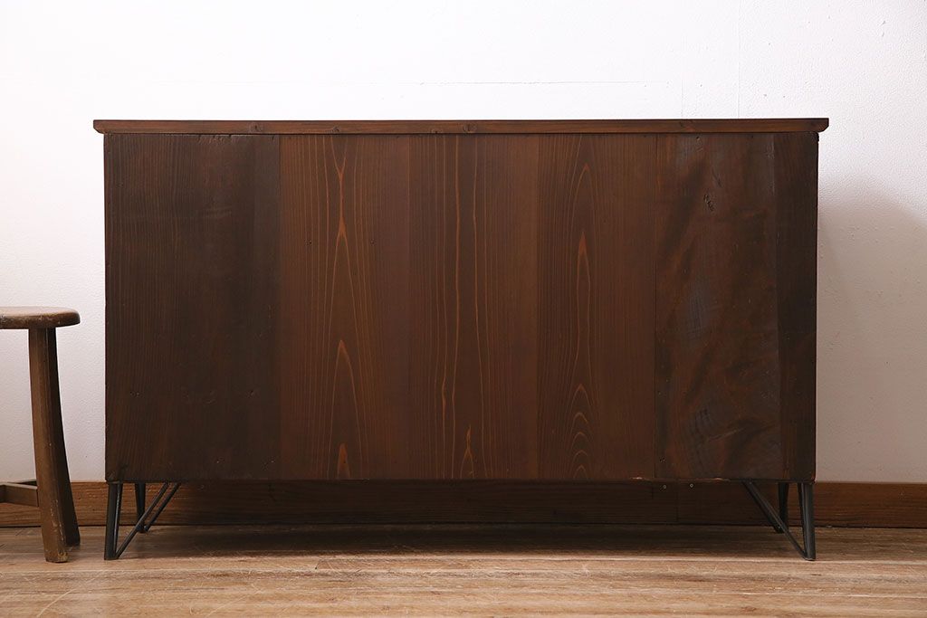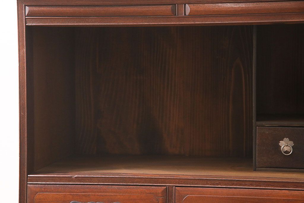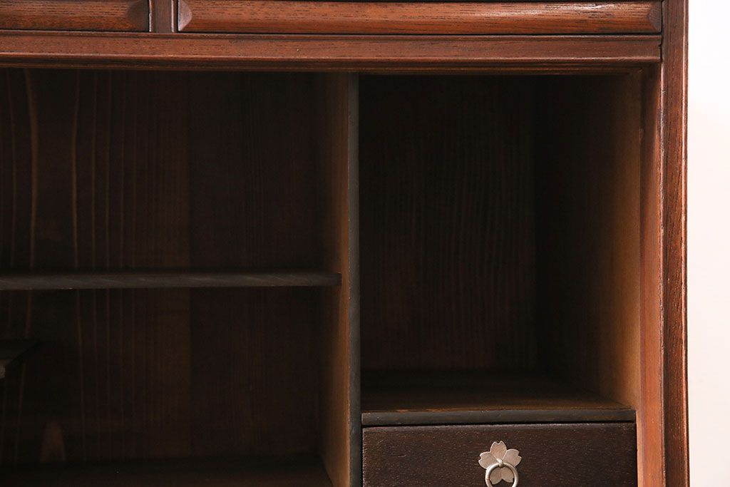 レトロ家具 大正昭和初期 ニレ材 ダイヤガラス 上品な印象のサイドボード(テレビ台、収納棚、戸棚)(R-036908)