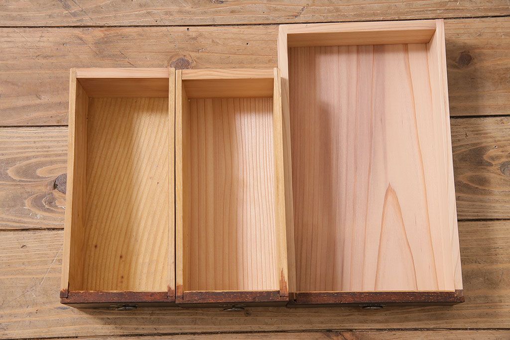 ■戸棚内引き出しの内寸(小) 各深さ75mm/幅95mm/奥行220mm