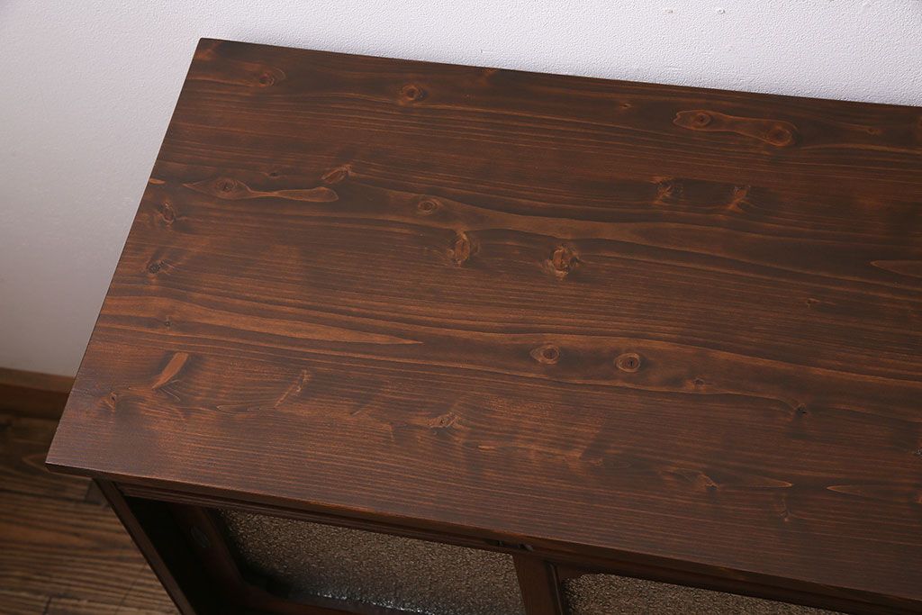 レトロ家具 大正昭和初期 ニレ材 ダイヤガラス 上品な印象のサイドボード(テレビ台、収納棚、戸棚)(R-036908)です。