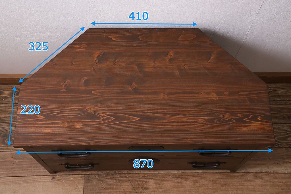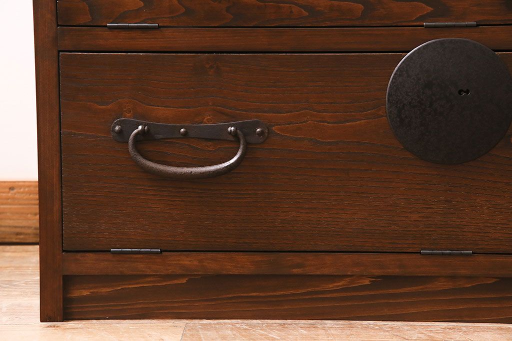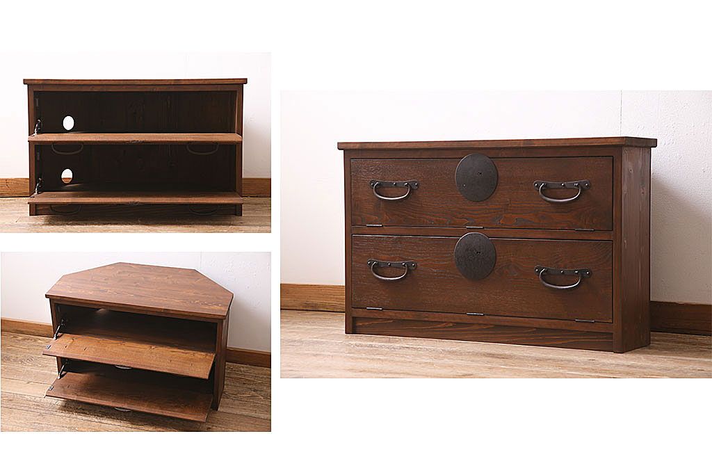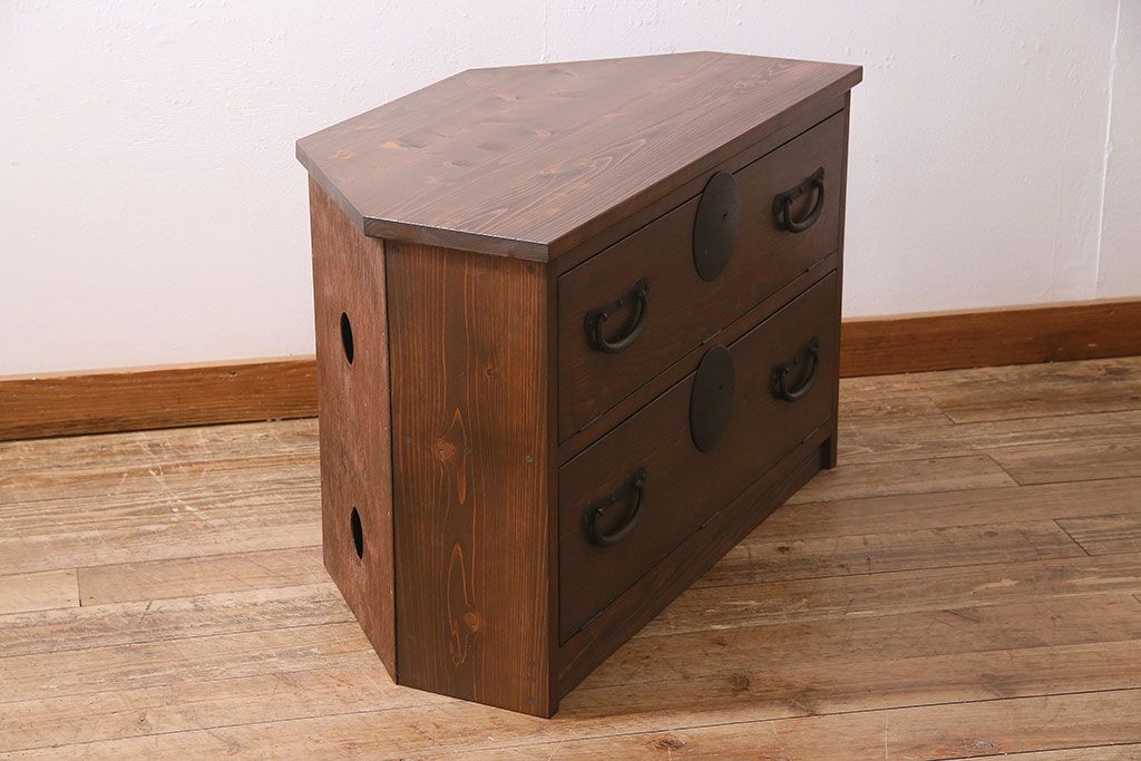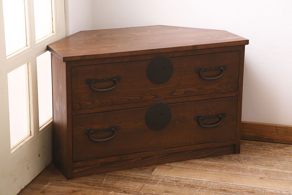和箪笥 > ラフジュ工房オリジナル 和製アンティーク 古金具取っ手リメイク フラップダウン扉!テレビ周りに和の趣を添えるコーナーボード(テレビ台、キャビネット、収納棚)(R-045421)