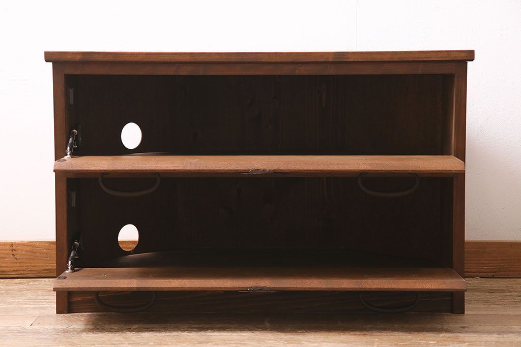 キャビネット・戸棚> テレビ台・ローボード > ラフジュ工房オリジナル 和製アンティーク 古金具取っ手リメイク フラップダウン扉!テレビ周りに和の趣を添えるコーナーボード(テレビ台、キャビネット、収納棚)(R-045421)