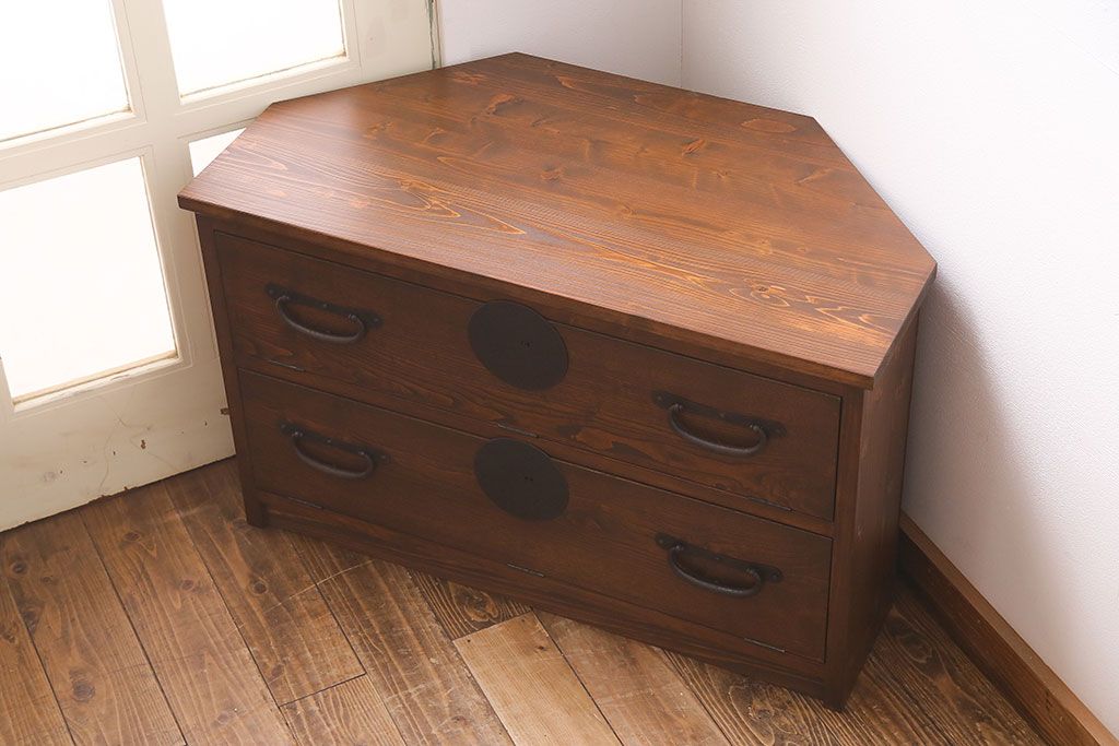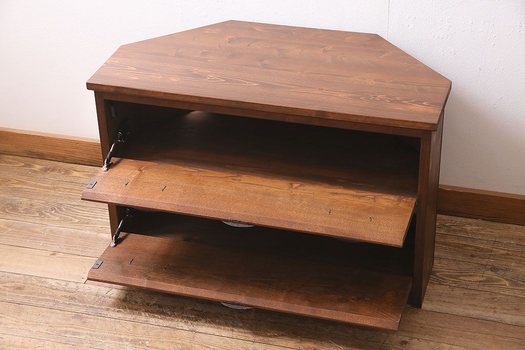 キャビネット・戸棚> コーナーキャビネット > ラフジュ工房オリジナル 和製アンティーク 古金具取っ手リメイク フラップダウン扉!テレビ周りに和の趣を添えるコーナーボード(テレビ台、キャビネット、収納棚)(R-045421)