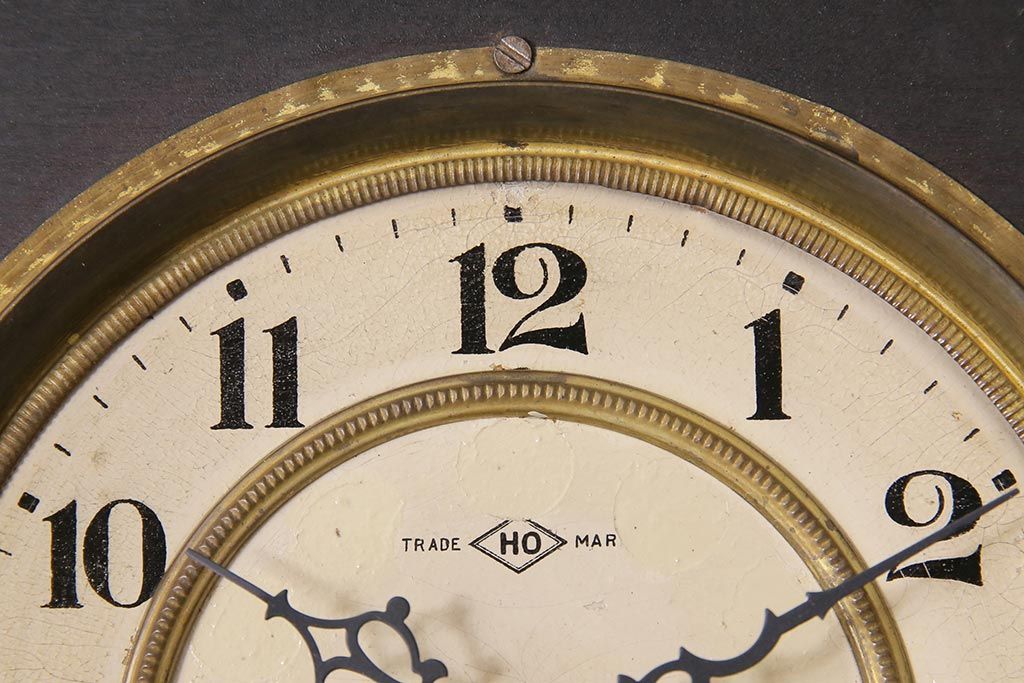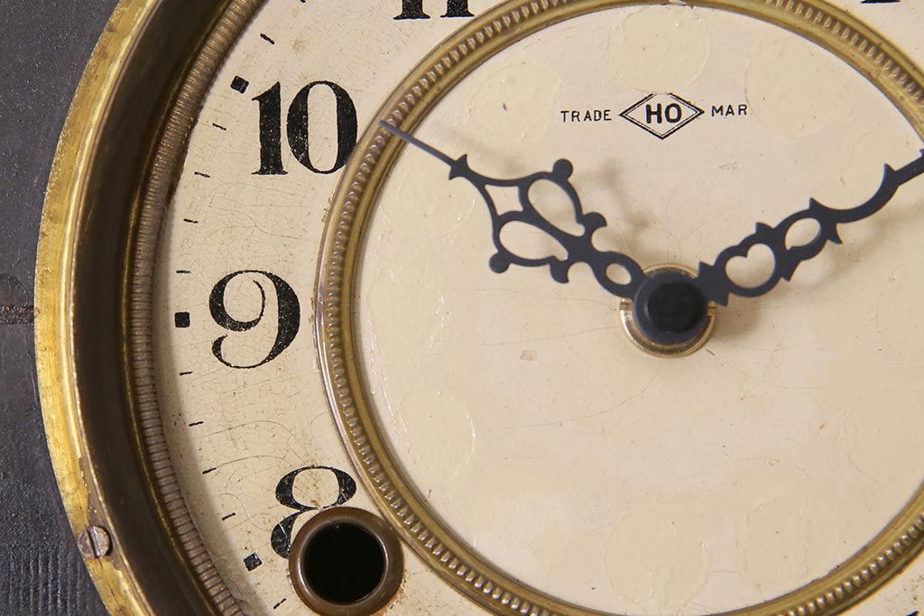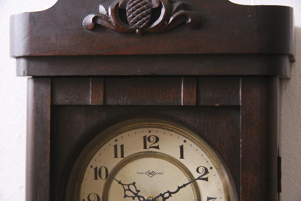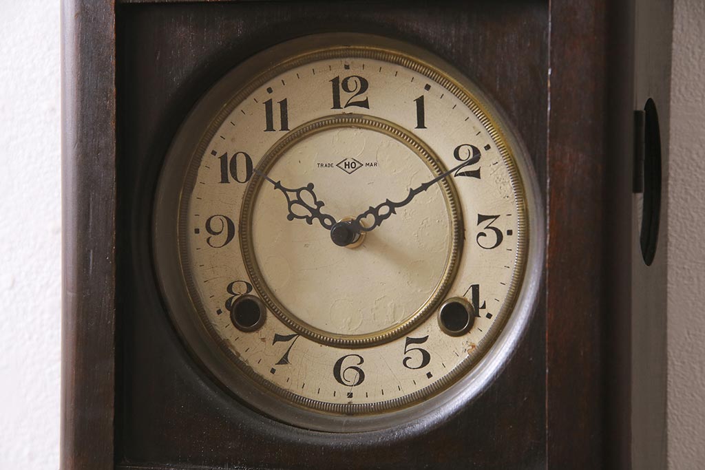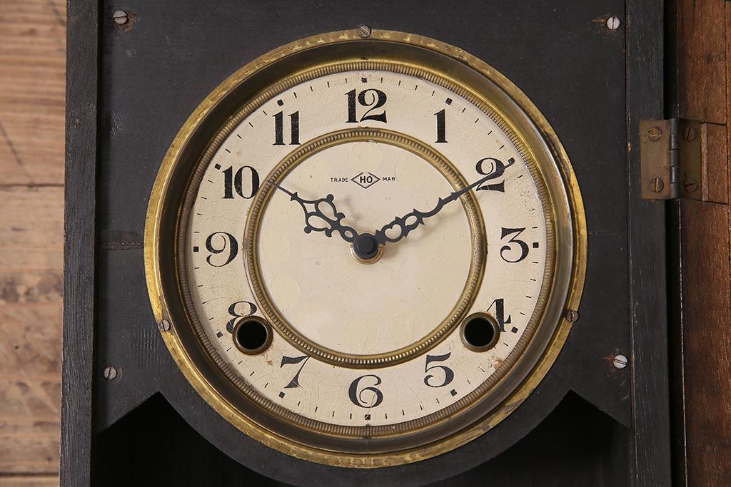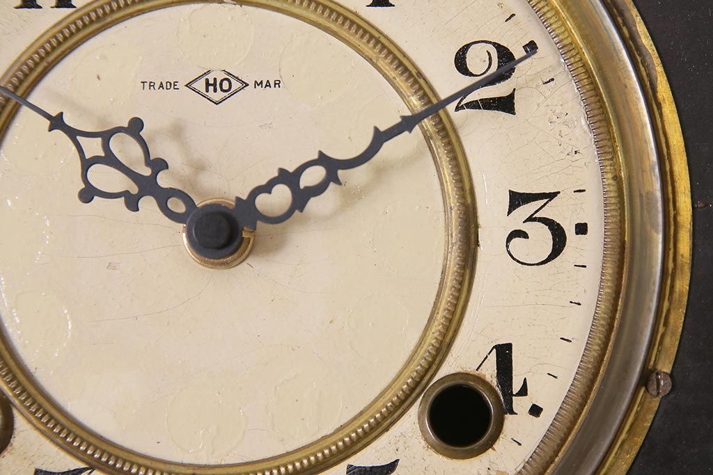 アンティーク時計 昭和初期 堀田時計店 トレードマークHO 電池式 大正ロマン香る掛け時計(柱時計、古時計)(R-045480)