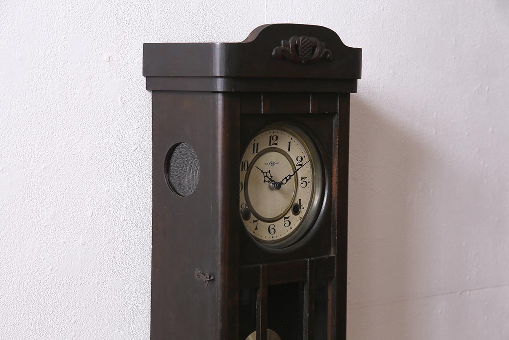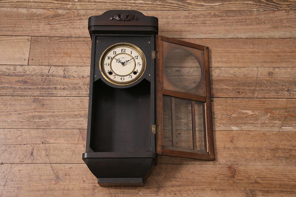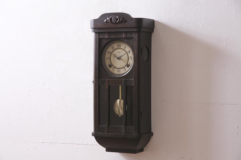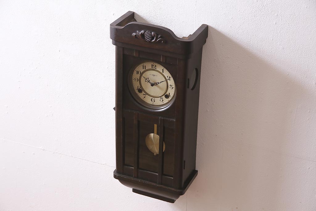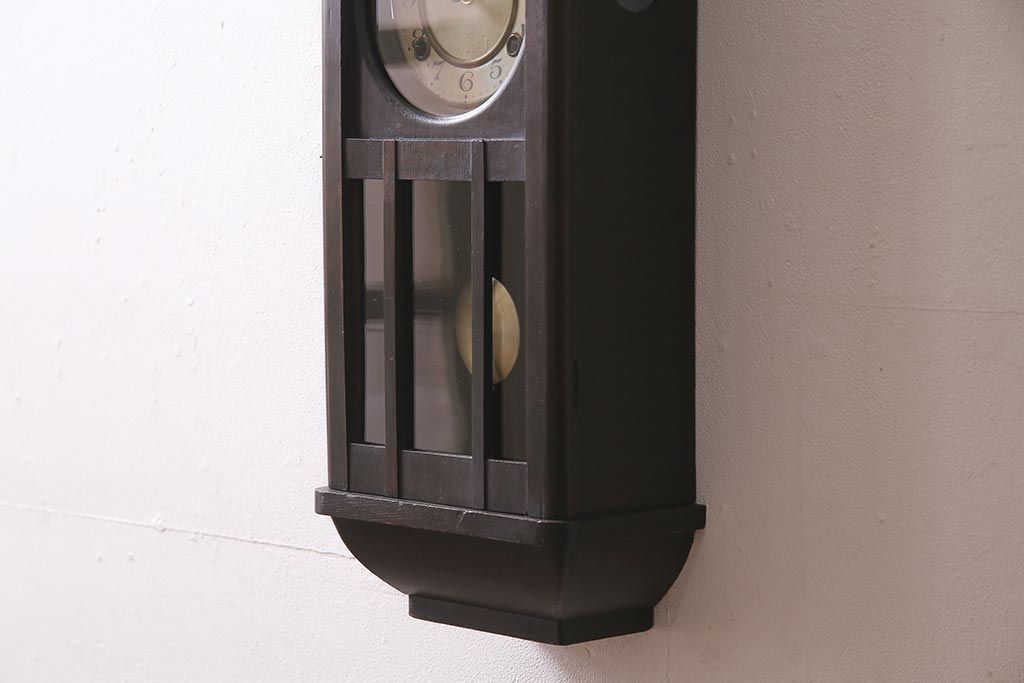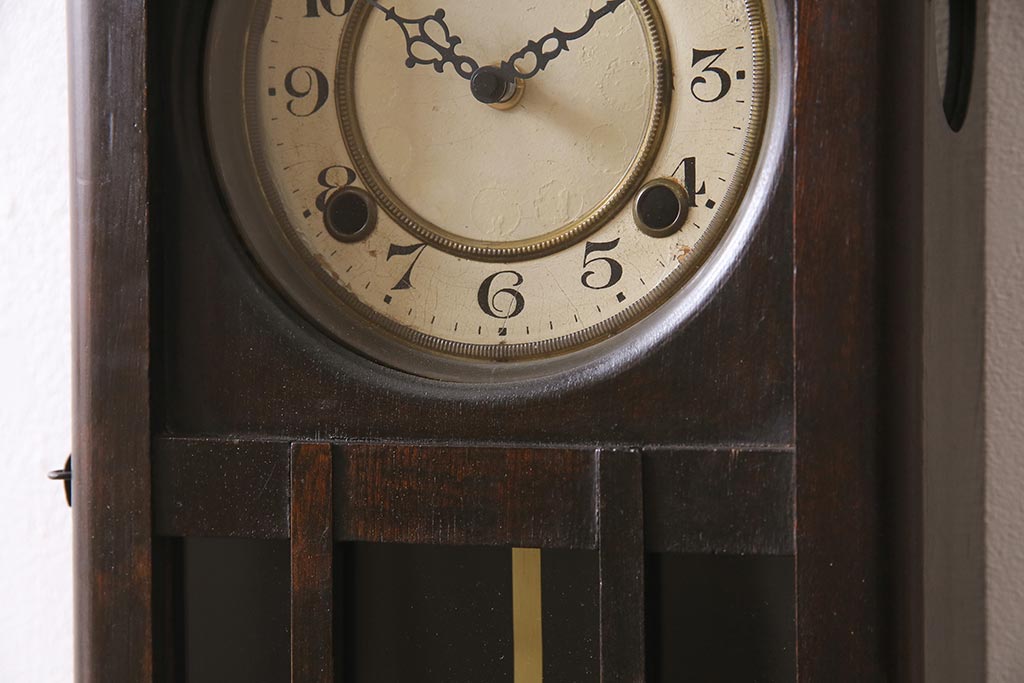 アンティーク時計 昭和初期 堀田時計店 トレードマークHO 電池式 大正ロマン香る掛け時計(柱時計、古時計)(R-045480)