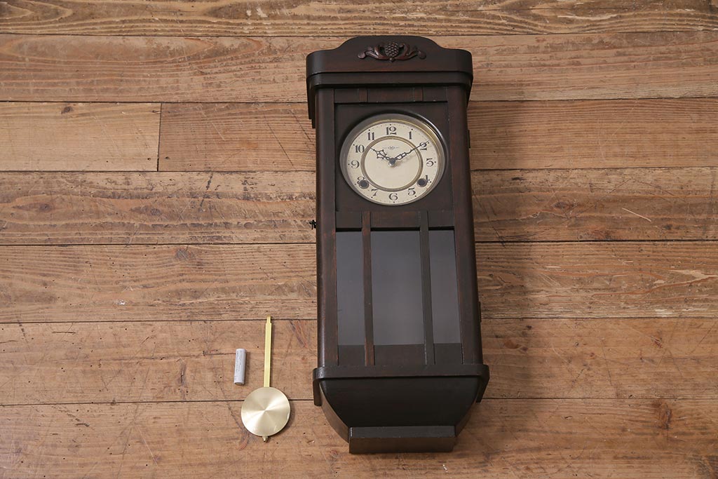 時計> 掛け時計 > アンティーク時計 昭和初期 堀田時計店 トレードマークHO 電池式 大正ロマン香る掛け時計(柱時計、古時計)(R-045480)