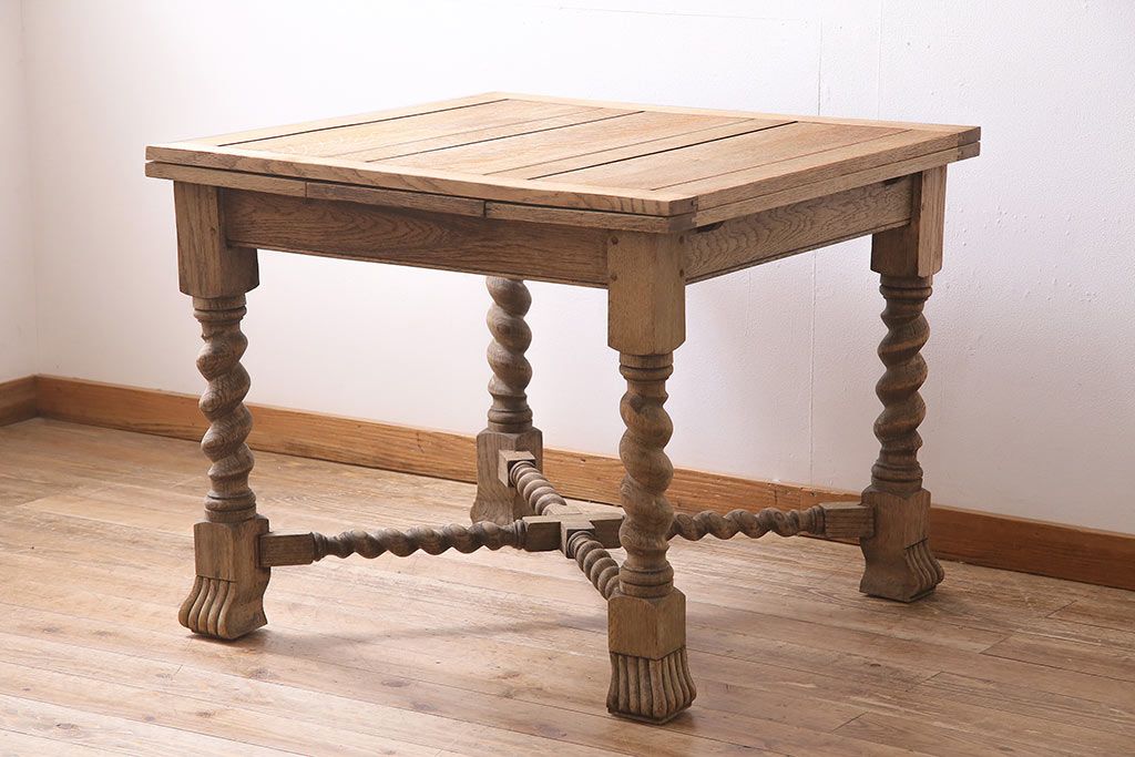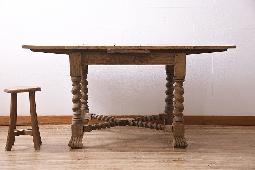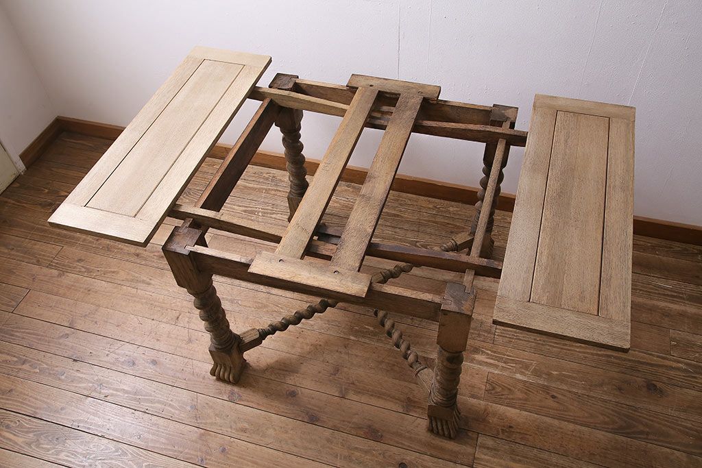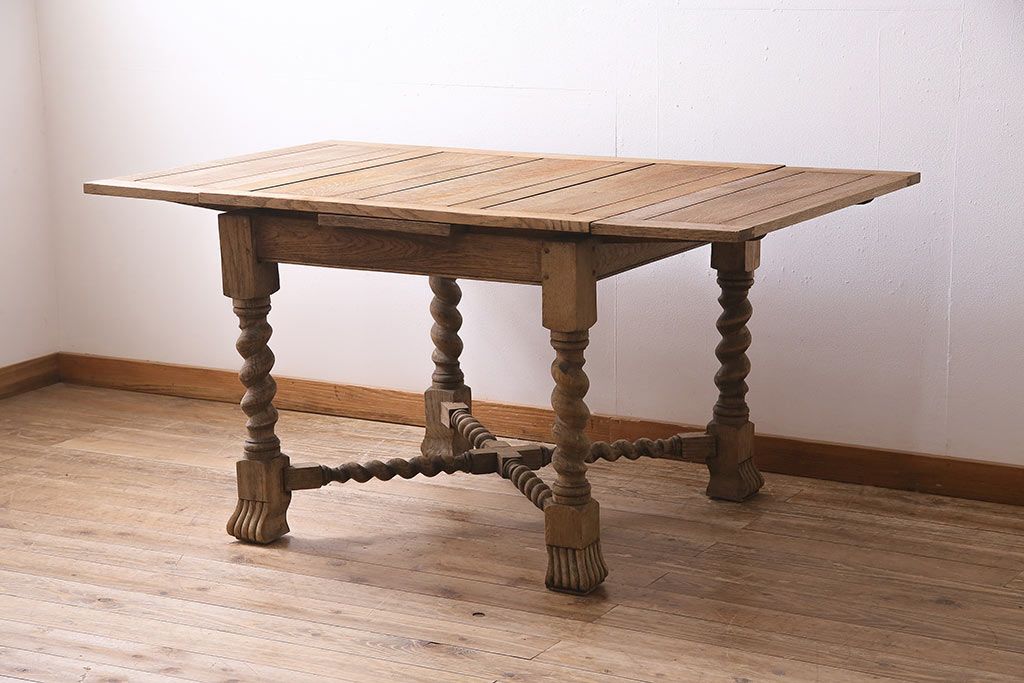 ラフジュ工房> テーブル> 4人用ダイニングテーブル > アンティーク家具 イギリス ストリップド(剥離) オーク材製のドローリーフテーブル(エクステンションテーブル)(R-045180)