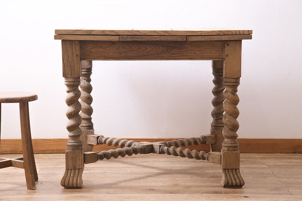 ラフジュ工房> テーブル> 2人用ダイニングテーブル > アンティーク家具 イギリス ストリップド(剥離) オーク材製のドローリーフテーブル(エクステンションテーブル)(R-045180)