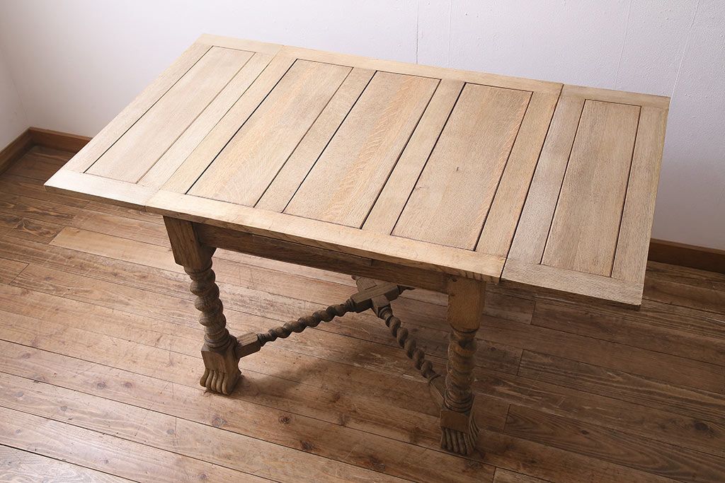 ラフジュ工房> ストリップド(剥離)家具 > アンティーク家具 イギリス ストリップド(剥離) オーク材製のドローリーフテーブル(エクステンションテーブル)(R-045180)