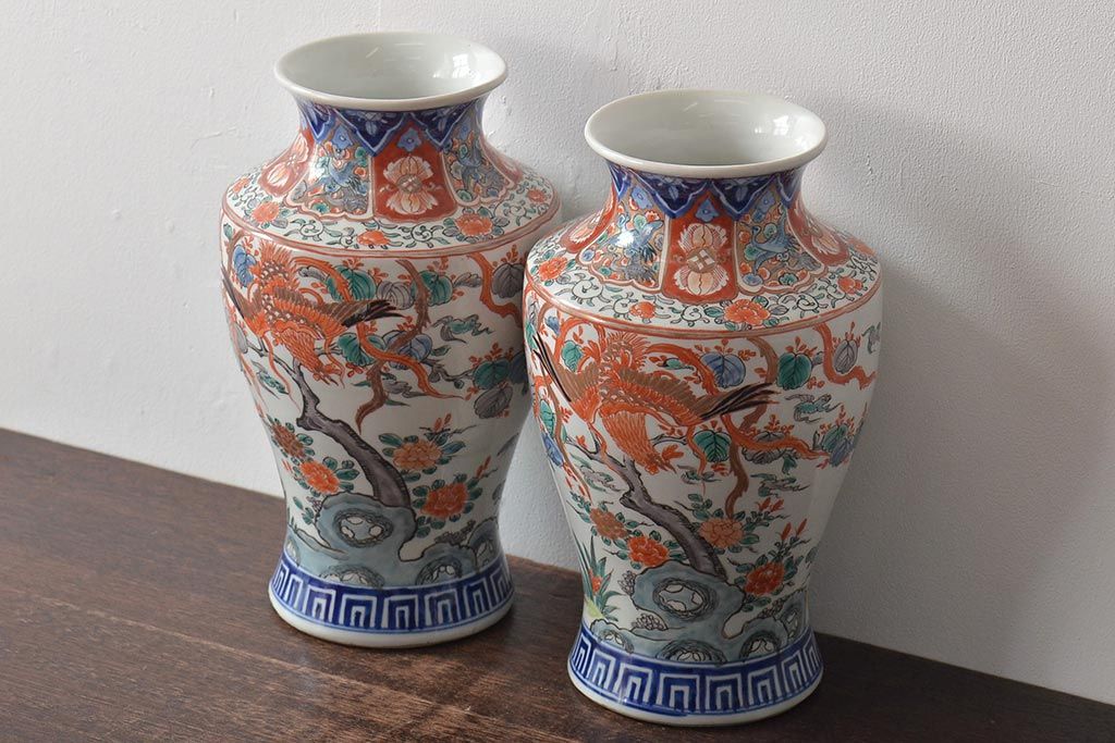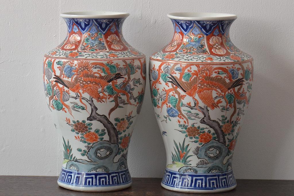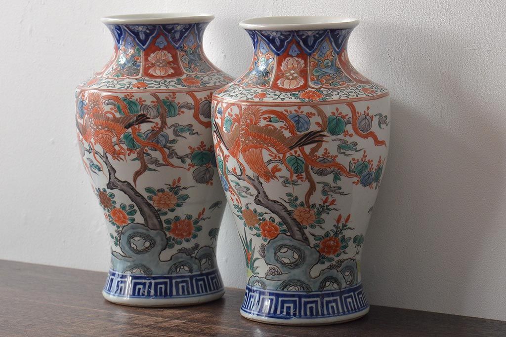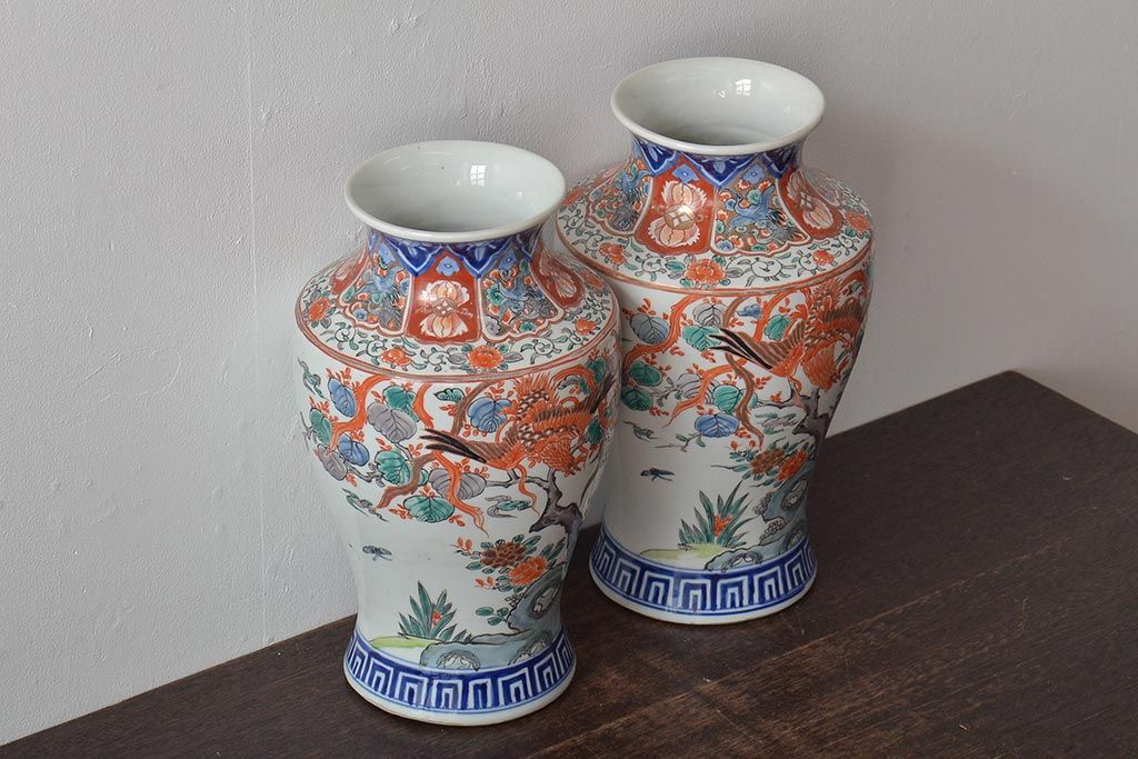 ラフジュ工房> 伝統工芸品 > 幕末〜明治 伊万里焼 花鳥図色絵花瓶一対(花器)(R-045304)