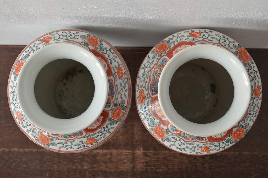 ラフジュ工房> 雑貨> ガラス瓶・花瓶 > 幕末〜明治 伊万里焼 花鳥図色絵花瓶一対(花器)(R-045304)