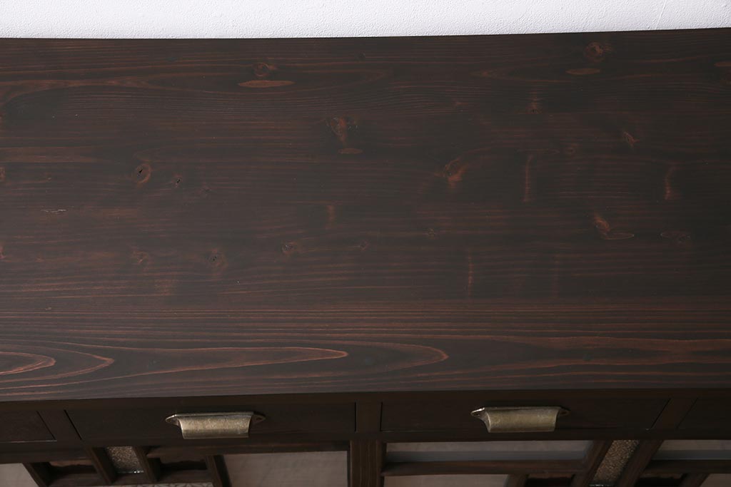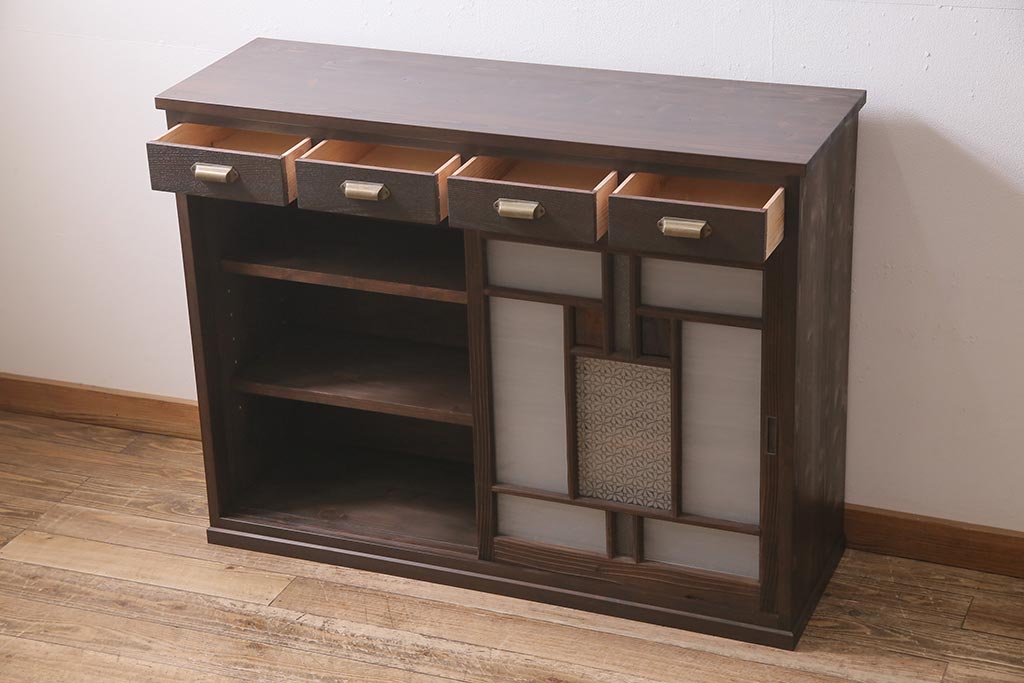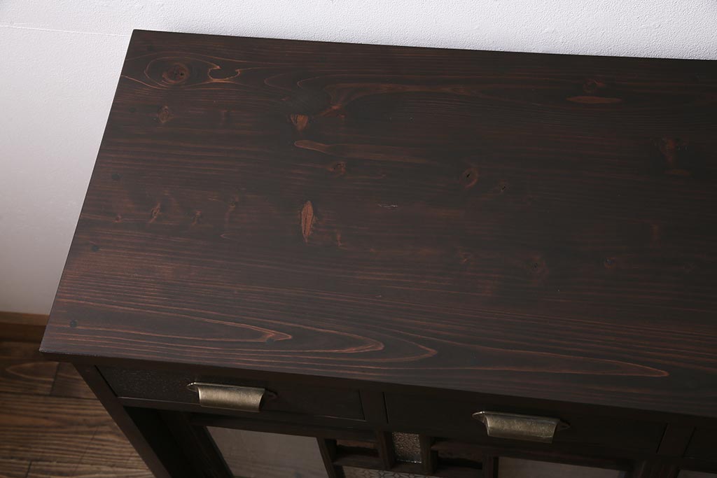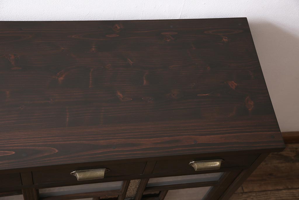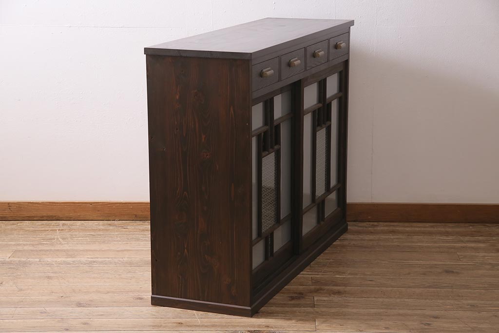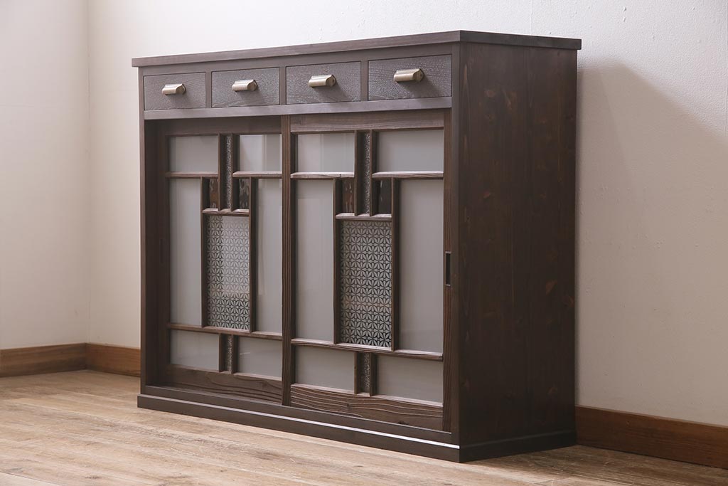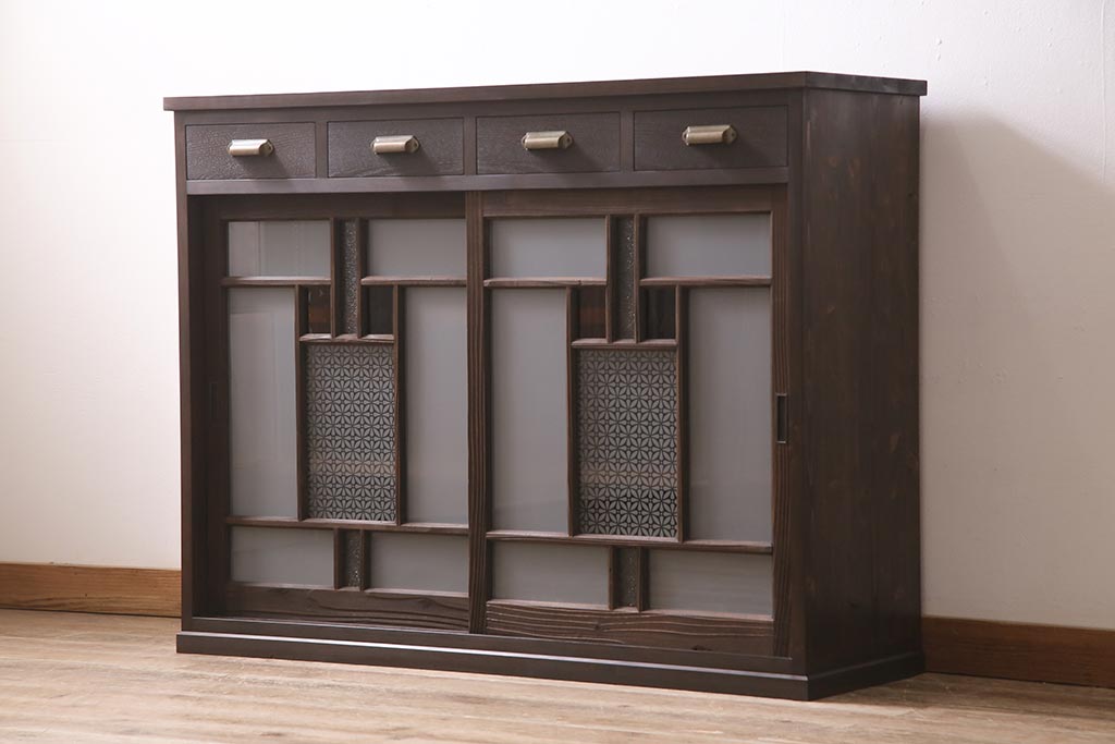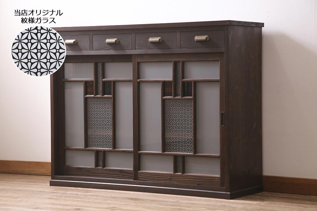 ラフジュ工房オリジナル 古建具リメイク ダイヤガラス・すりガラス・花菱文様ガラス 大正ロマン薫るキャビネット(ガラス戸棚、収納棚)(R-045559)
