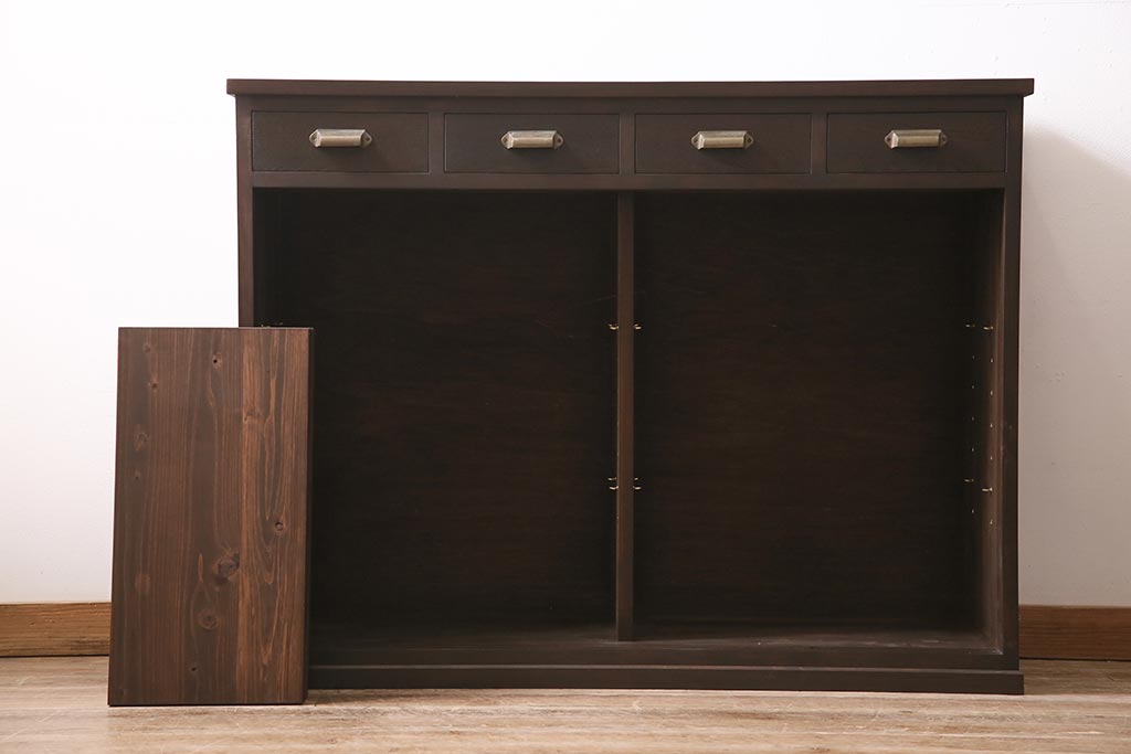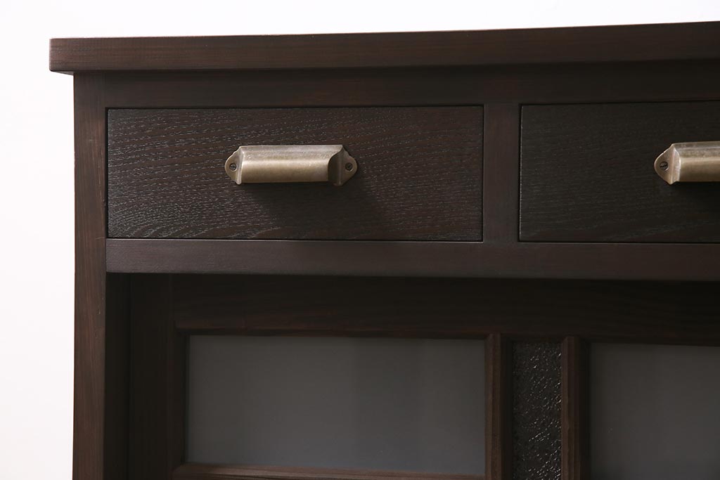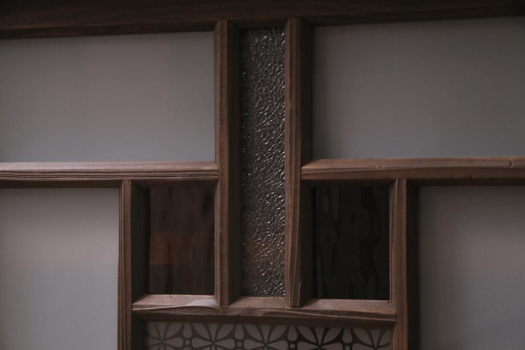 キャビネット・戸棚 > ラフジュ工房オリジナル 古建具リメイク ダイヤガラス・すりガラス・花菱文様ガラス 大正ロマン薫るキャビネット(ガラス戸棚、収納棚)(R-045559)