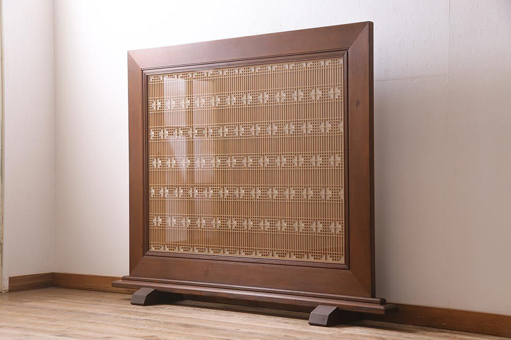 衝立・パーテーション> スタンド式衝立 > ビンテージ家具 昭和中期 両面ガラス 上手物!組子細工が目を惹くつい立て(衝立、仕切り、パーテーション、組子、ヴィンテージ)(R-045499)