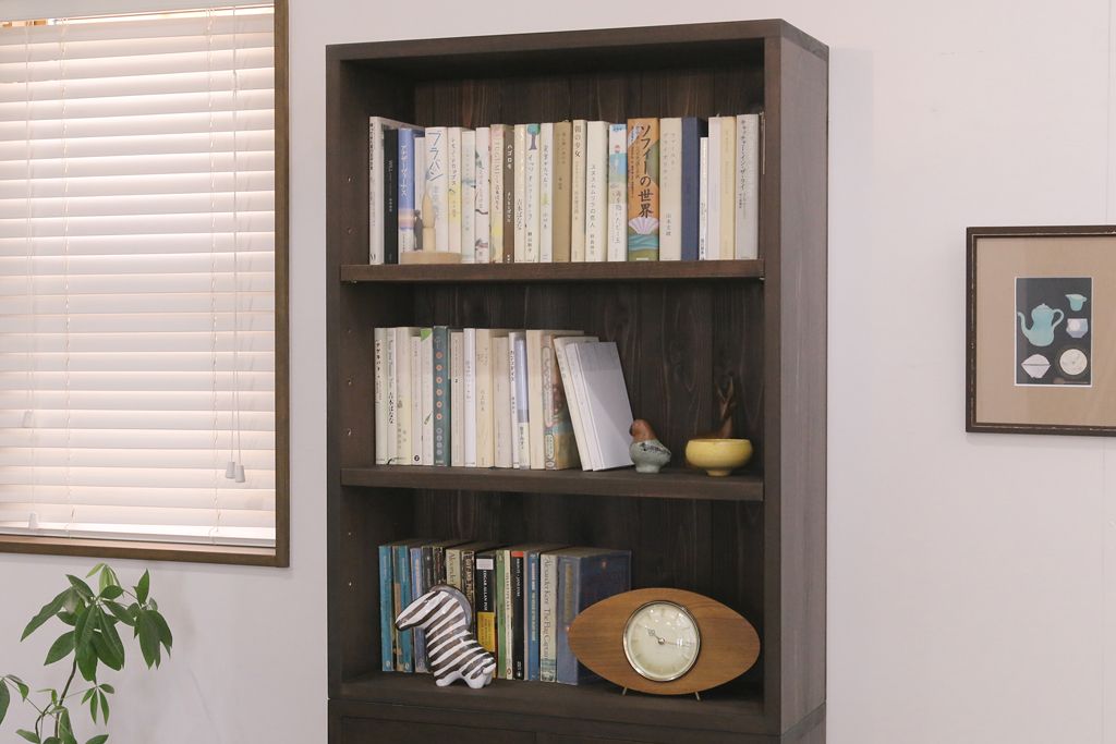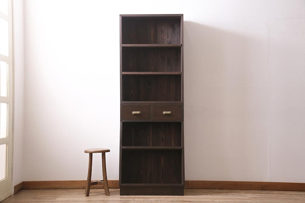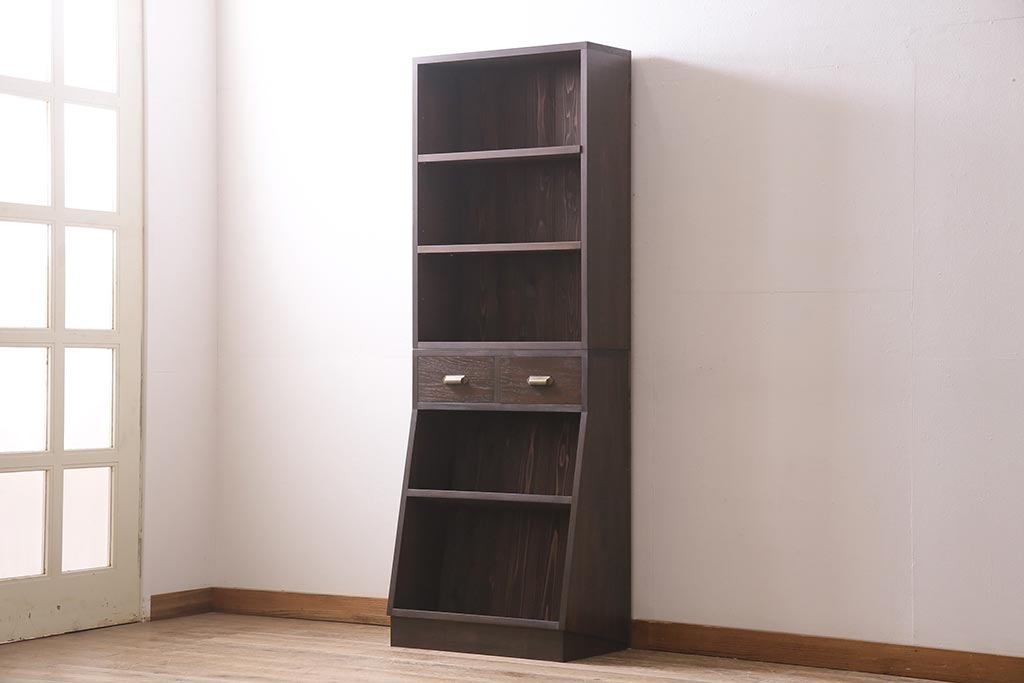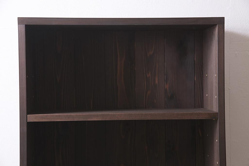 ラフジュ工房> オープンラック・シェルフ> 本棚 > カタログ掲載品 ラフジュ工房オリジナル 無垢材使用 シンプルで使い勝手の良いレトロな薄型ブックシェルフ(収納棚、本棚、ウッドシェルフ)(R-045533)