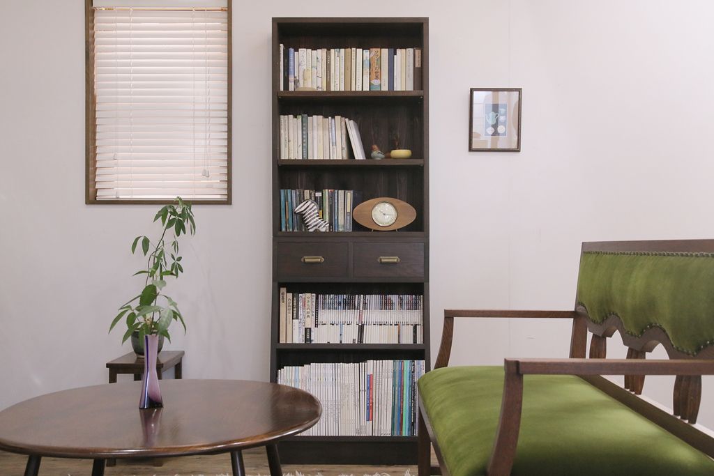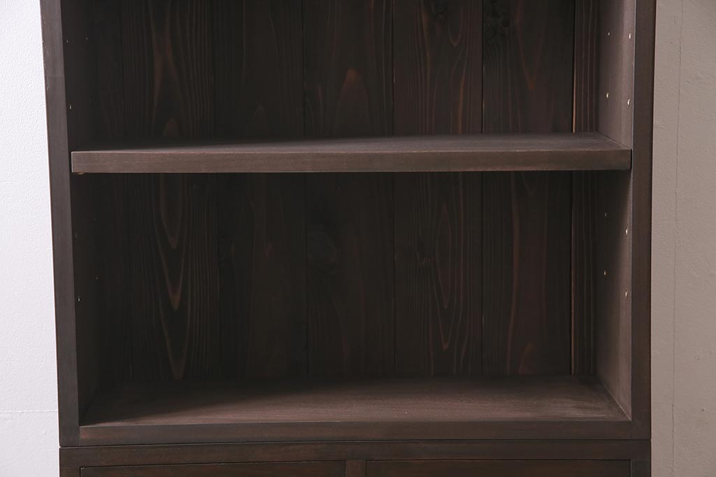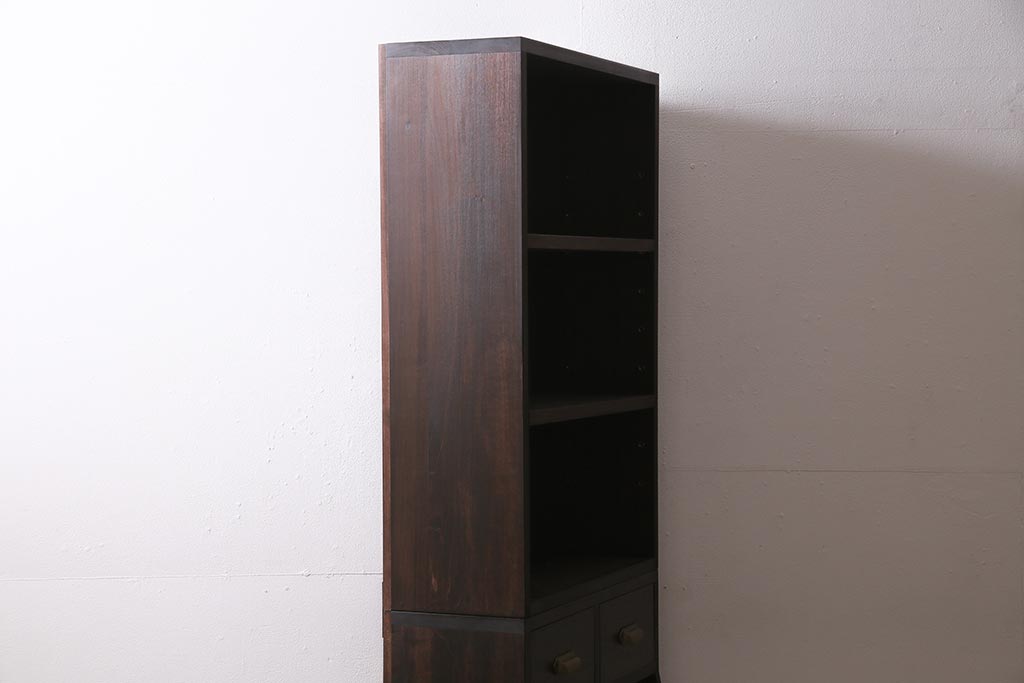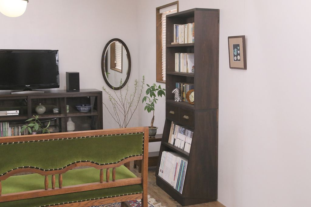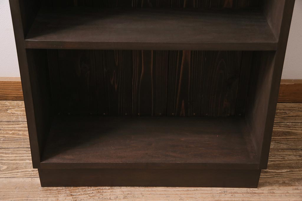 ラフジュ工房> オープンラック・シェルフ> 本棚 > カタログ掲載品 ラフジュ工房オリジナル 無垢材使用 シンプルで使い勝手の良いレトロな薄型ブックシェルフ(収納棚、本棚、ウッドシェルフ)(R-045533)