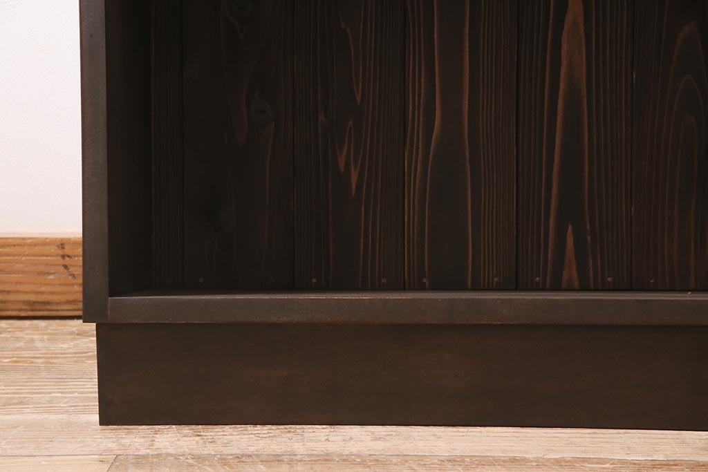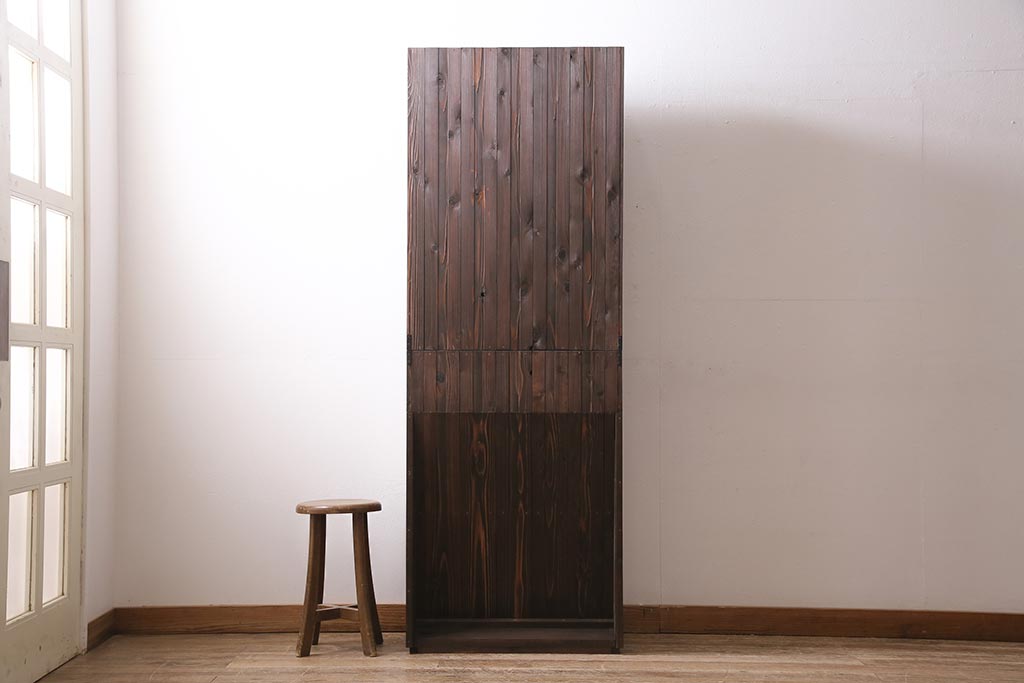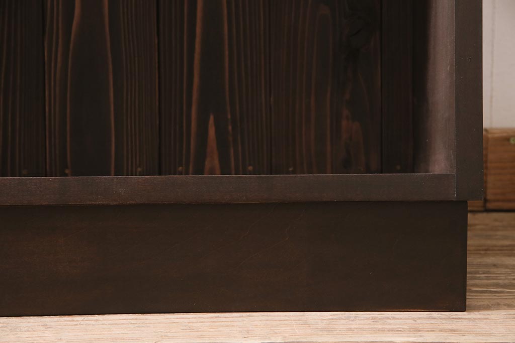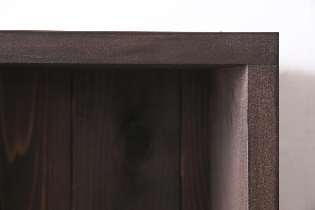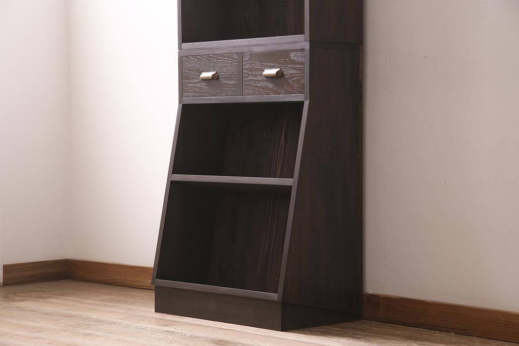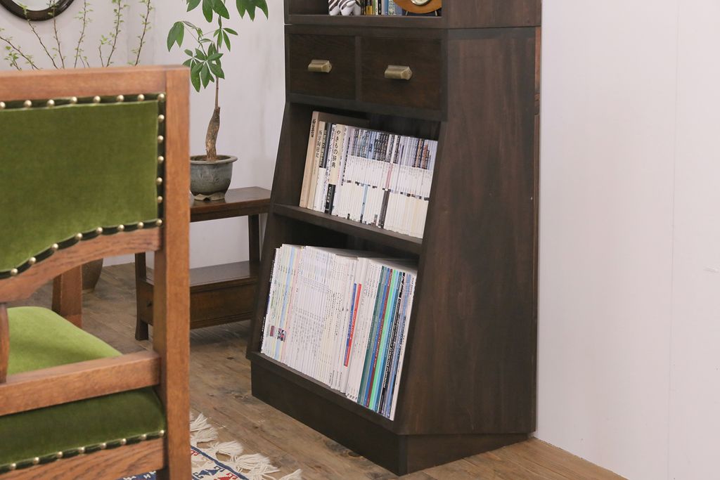 カタログ掲載品 ラフジュ工房オリジナル 無垢材使用 シンプルで使い勝手の良いレトロな薄型ブックシェルフ(収納棚、本棚、ウッドシェルフ)(R-045533)