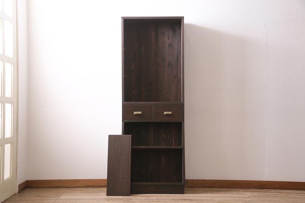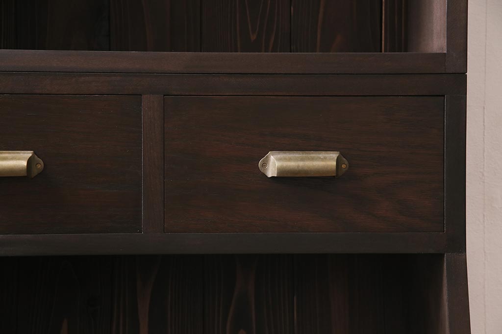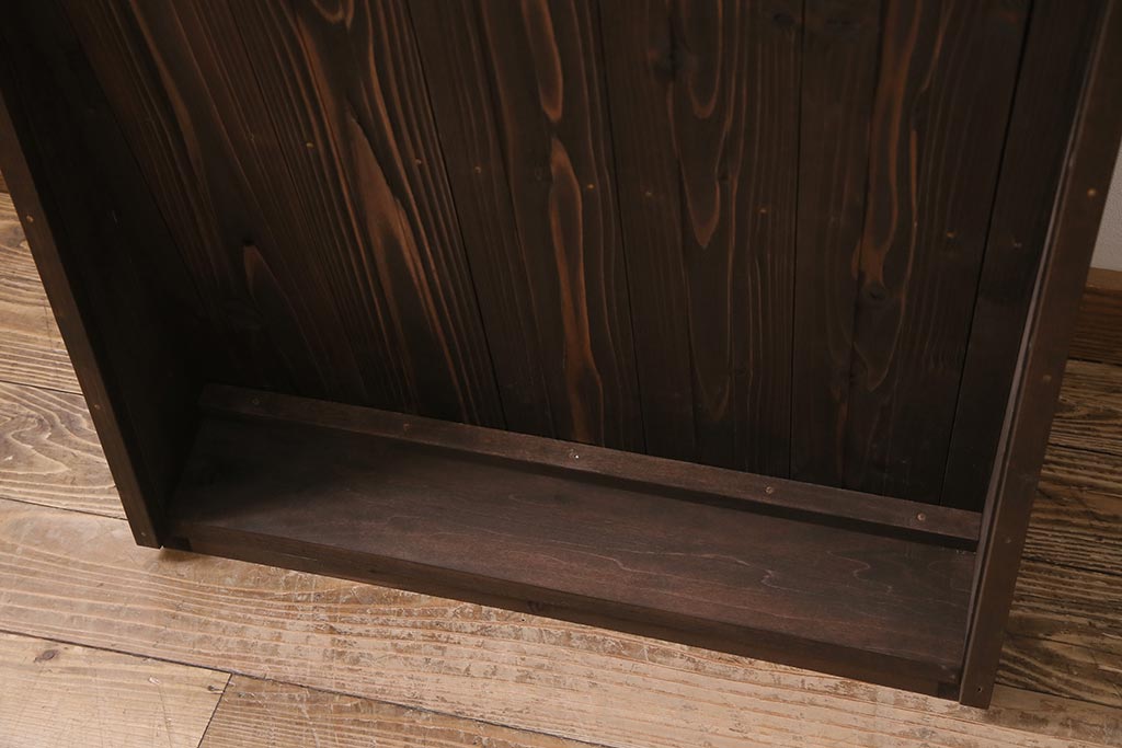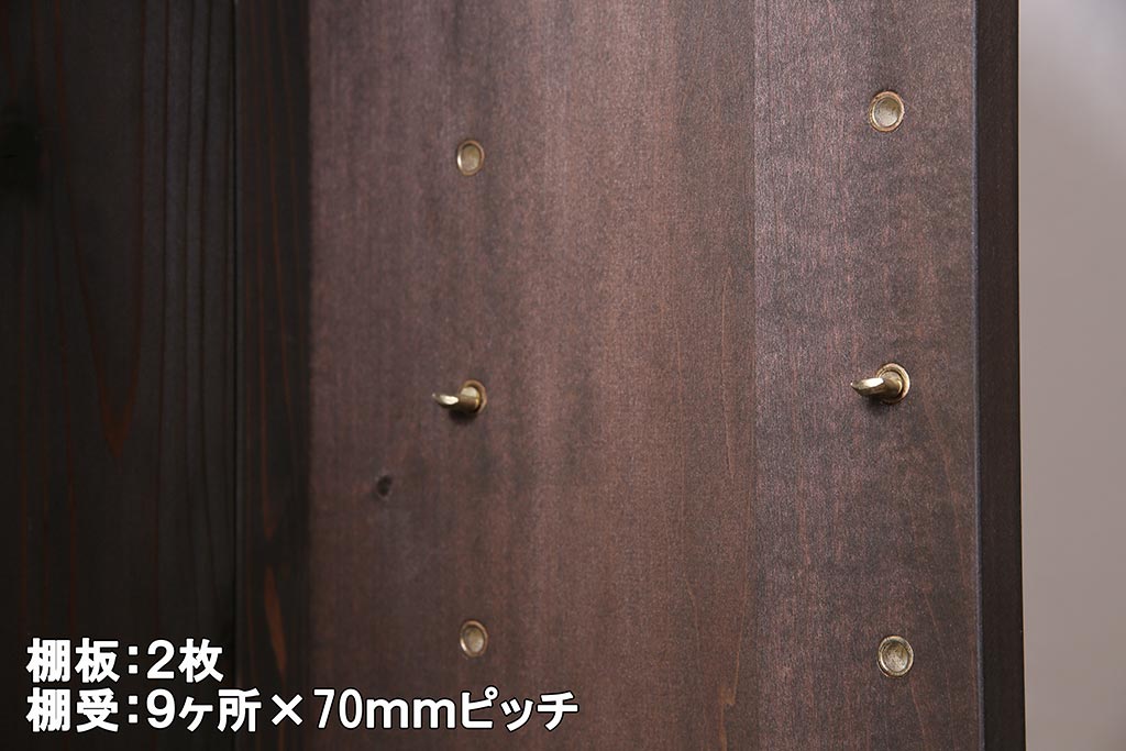 ラフジュ工房> オープンラック・シェルフ > カタログ掲載品 ラフジュ工房オリジナル 無垢材使用 シンプルで使い勝手の良いレトロな薄型ブックシェルフ(収納棚、本棚、ウッドシェルフ)(R-045533)