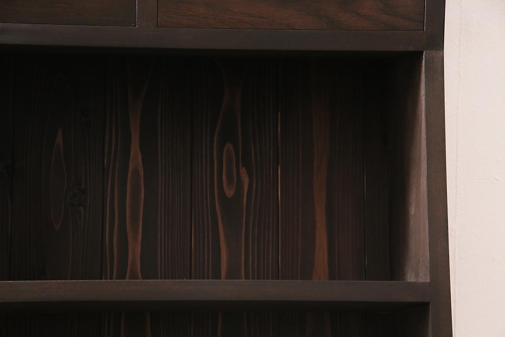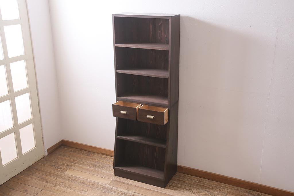 ラフジュ工房> オープンラック・シェルフ> ディスプレイラック > カタログ掲載品 ラフジュ工房オリジナル 無垢材使用 シンプルで使い勝手の良いレトロな薄型ブックシェルフ(収納棚、本棚、ウッドシェルフ)(R-045533)