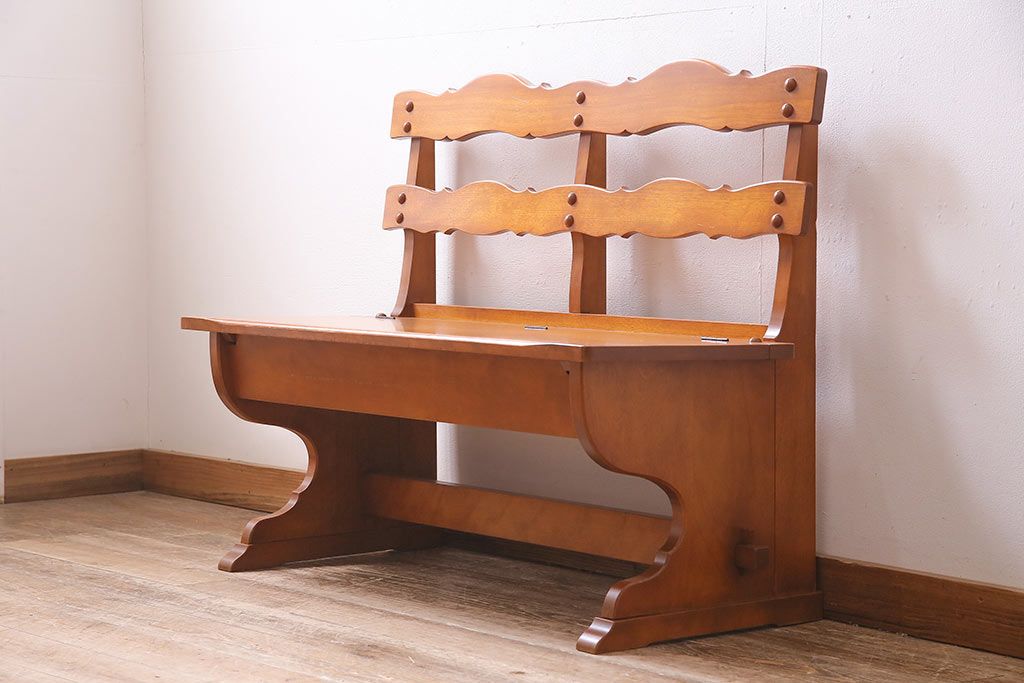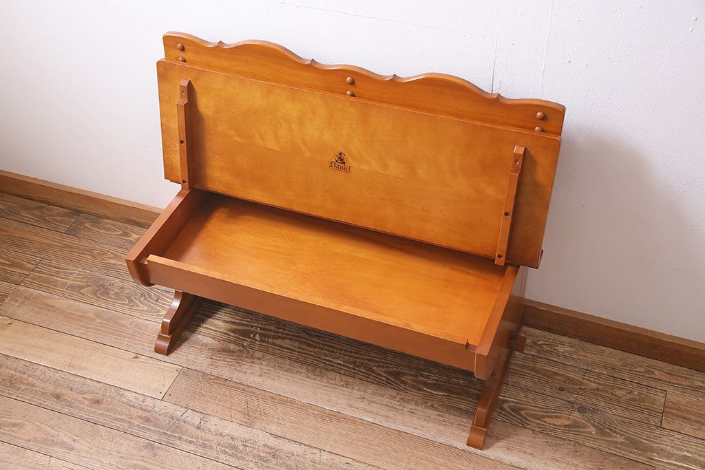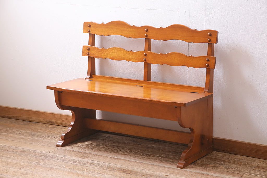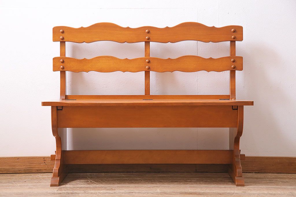 中古 横浜ダニエル(daniel) A-533 2人掛け 木の温もりを感じるベンチラブチェア(ベンチ、ダイニングチェア、板座、長椅子)(定価約38万円)(R-045178)
