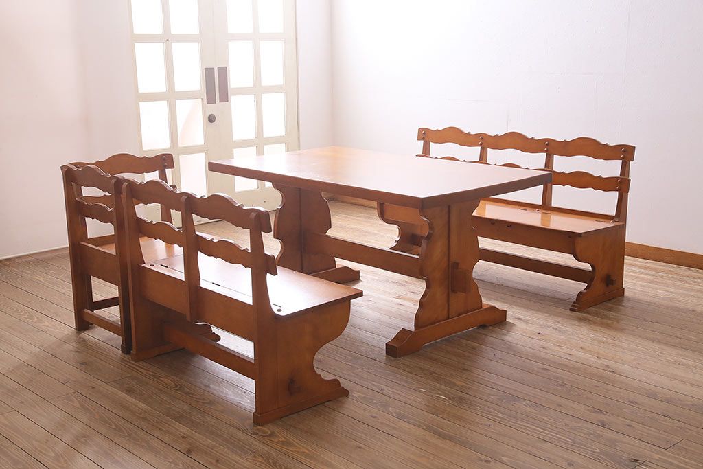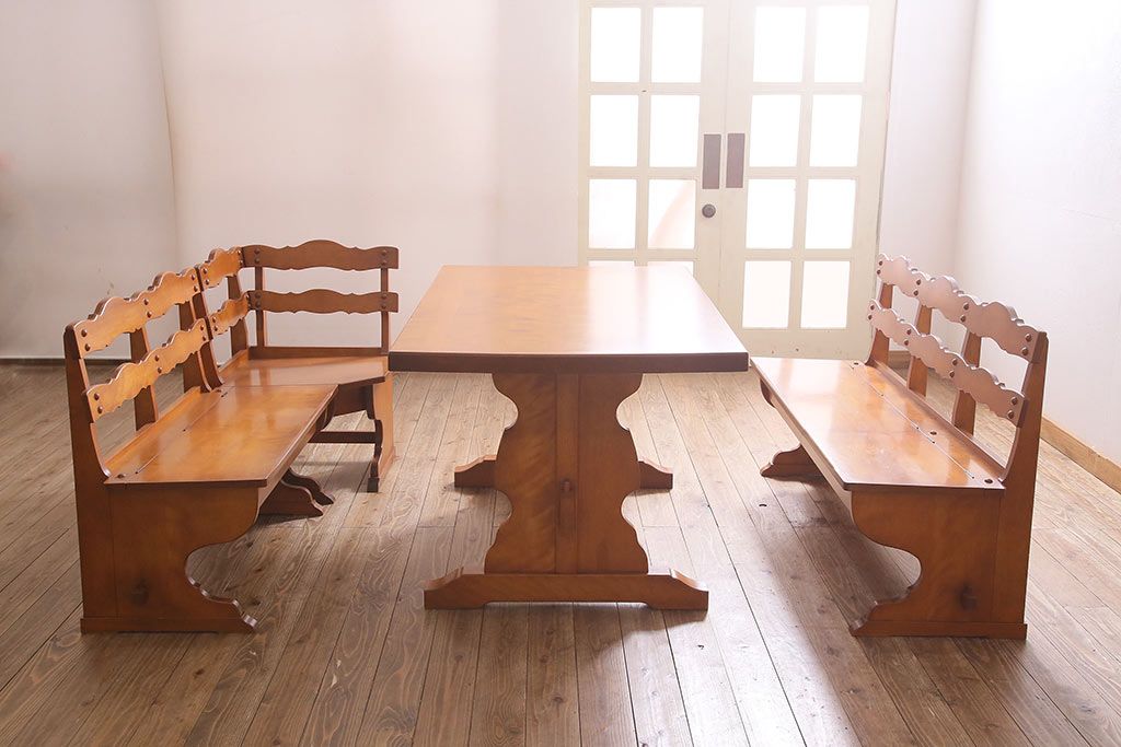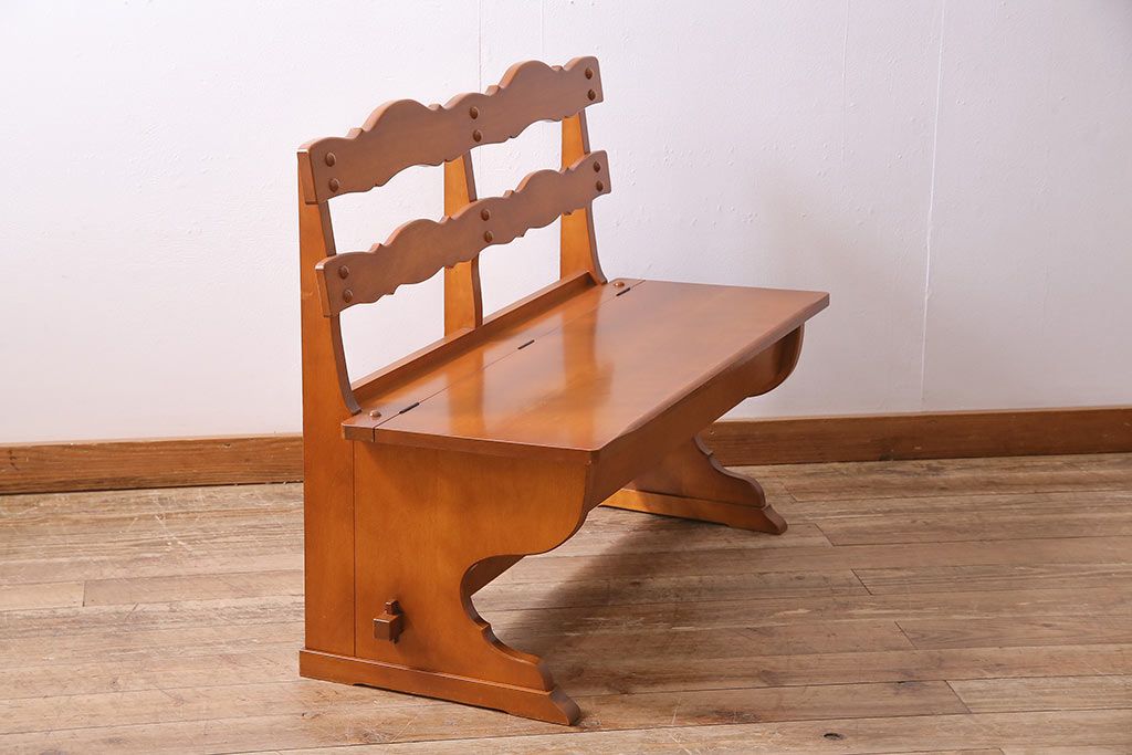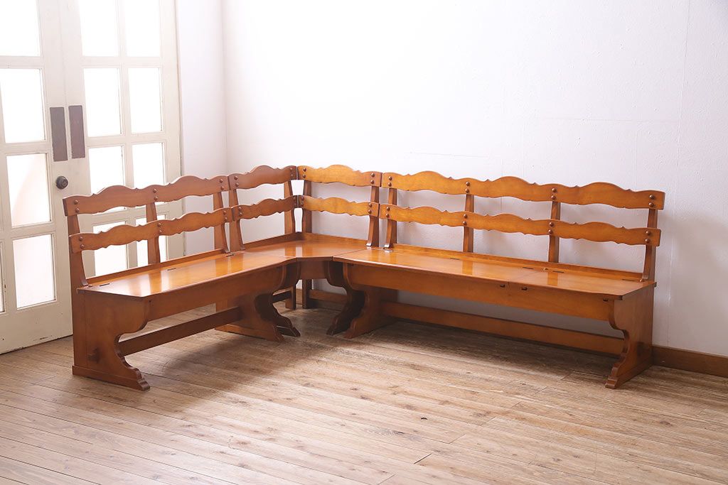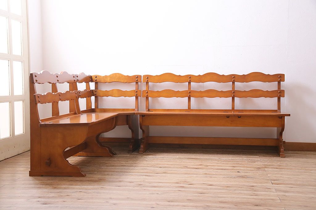 椅子・ベンチ> ダイニングチェア > 中古 横浜ダニエル(daniel) A-533 2人掛け 木の温もりを感じるベンチラブチェア(ベンチ、ダイニングチェア、板座、長椅子)(定価約38万円)(R-045178)