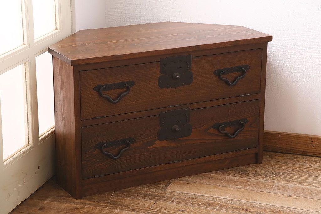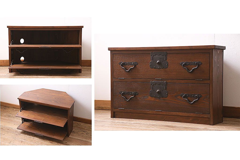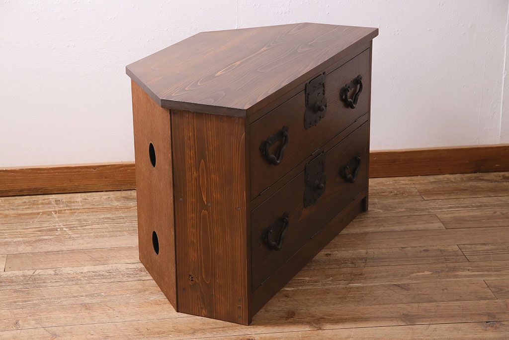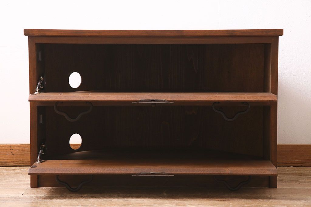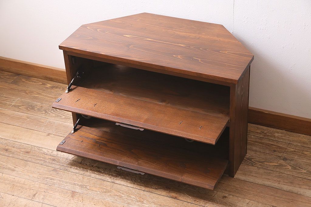 ラフジュ工房オリジナル 古金具リメイク フラップダウン扉 デッドスペースを有効に使えるコーナーテレビ台(キャビネット、テレビボード、収納棚)(R-045422)