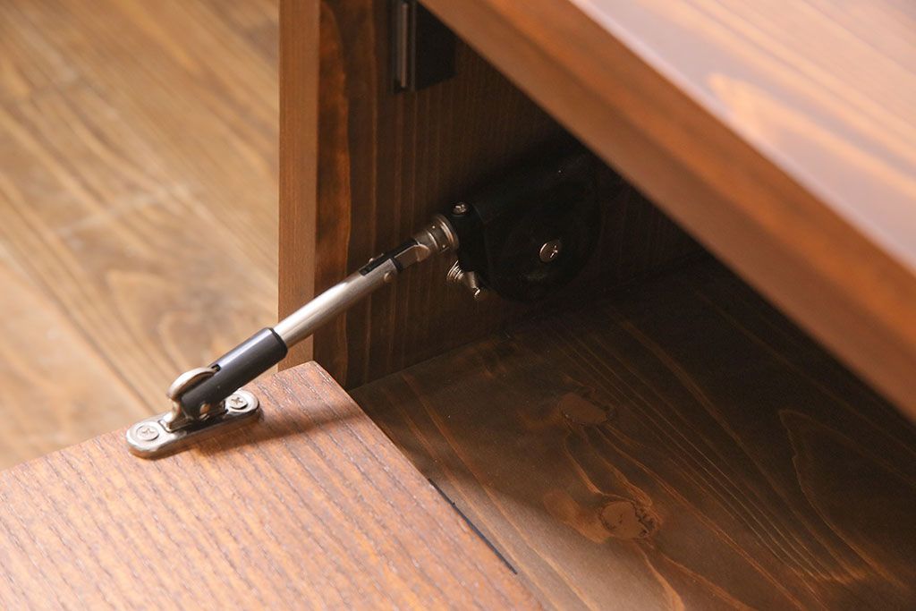 ラフジュ工房オリジナル 古金具リメイク フラップダウン扉 デッドスペースを有効に使えるコーナーテレビ台(キャビネット、テレビボード、収納棚)(R-045422)です。