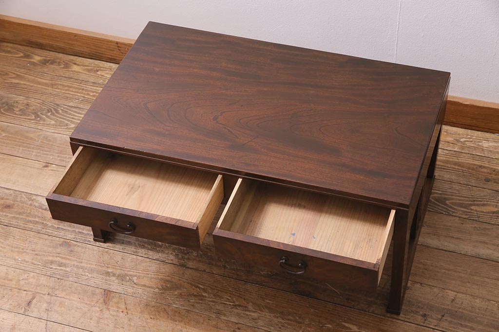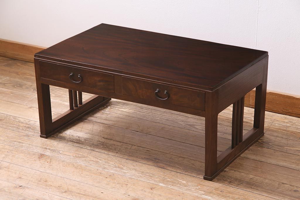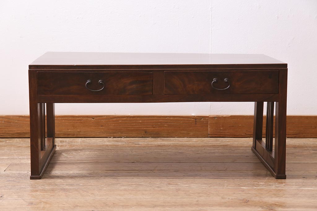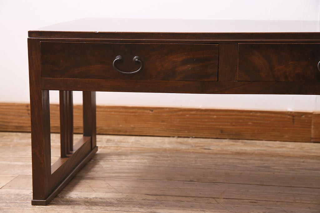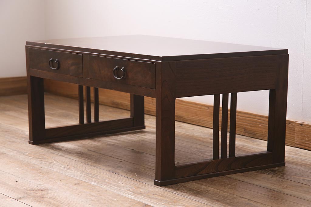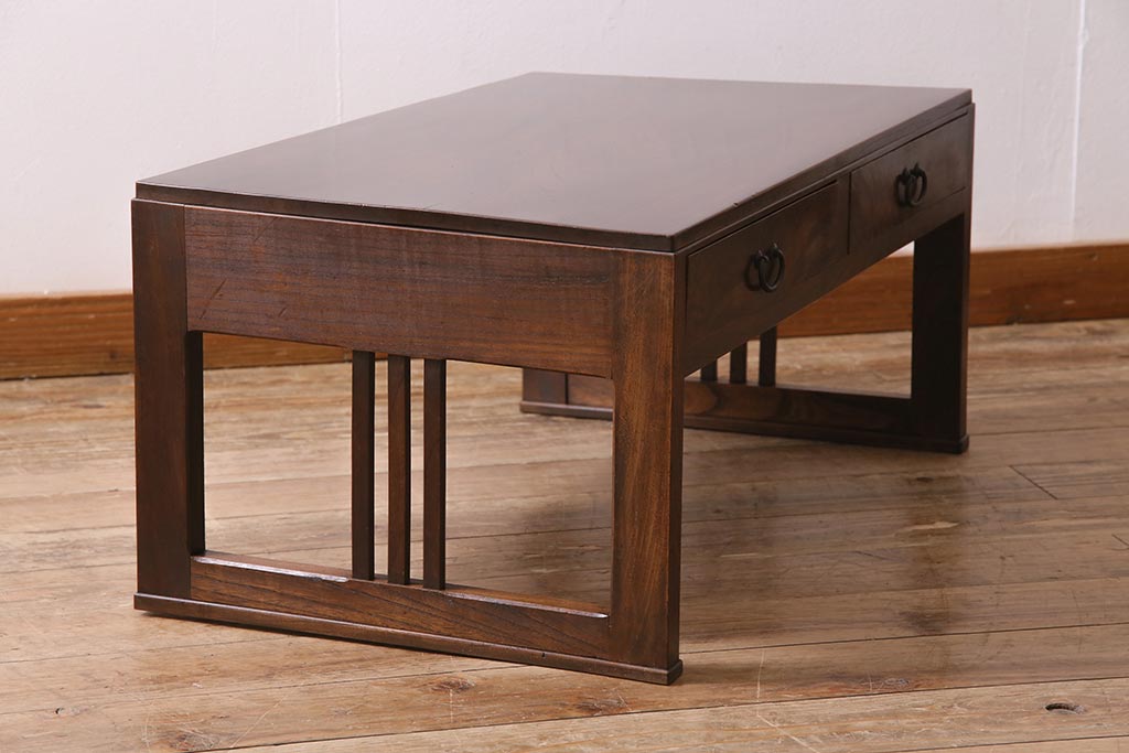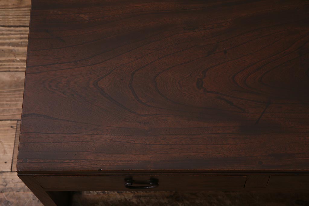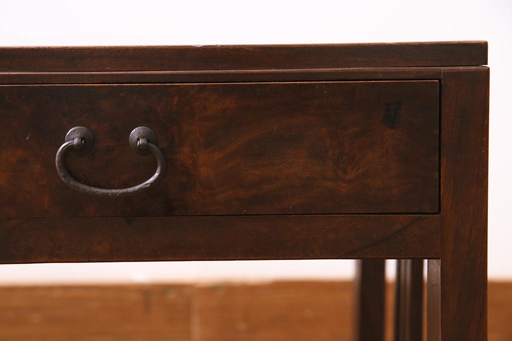 アンティーク家具 和製 大正昭和初期 総ケヤキ材 引き出し付き 品のある佇まいが魅力の文机(ローテーブル、座机)(R-045329)