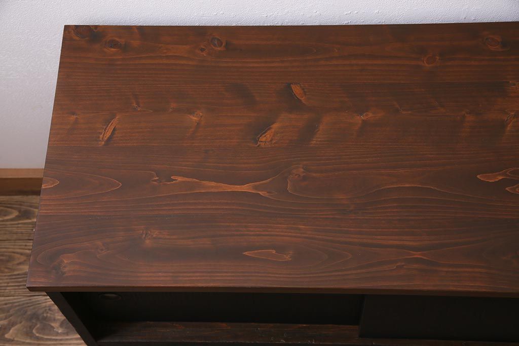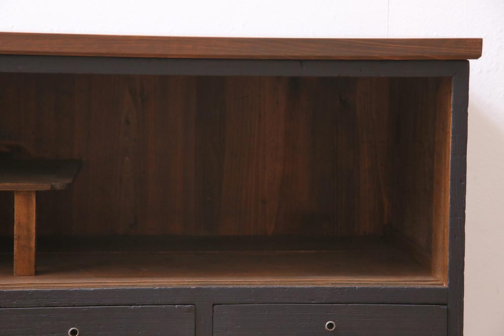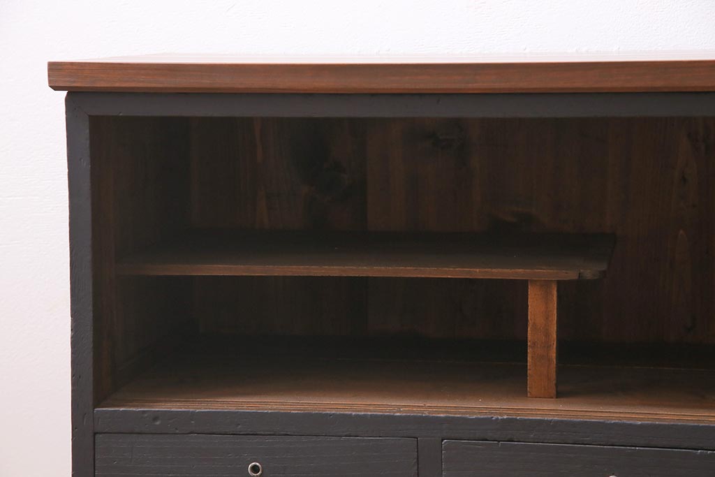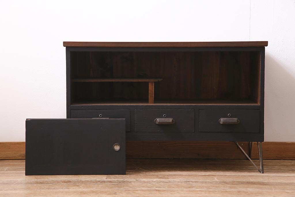 キャビネット・戸棚> テレビ台・ローボード > アンティーク家具 和製 昭和中期 天板リメイク 前面桐材 ツートンカラーがおしゃれな鉄脚付きローボード(戸棚、収納棚)(R-045302)